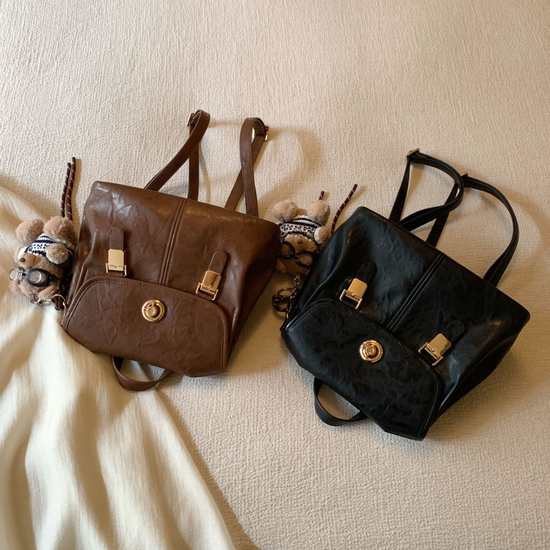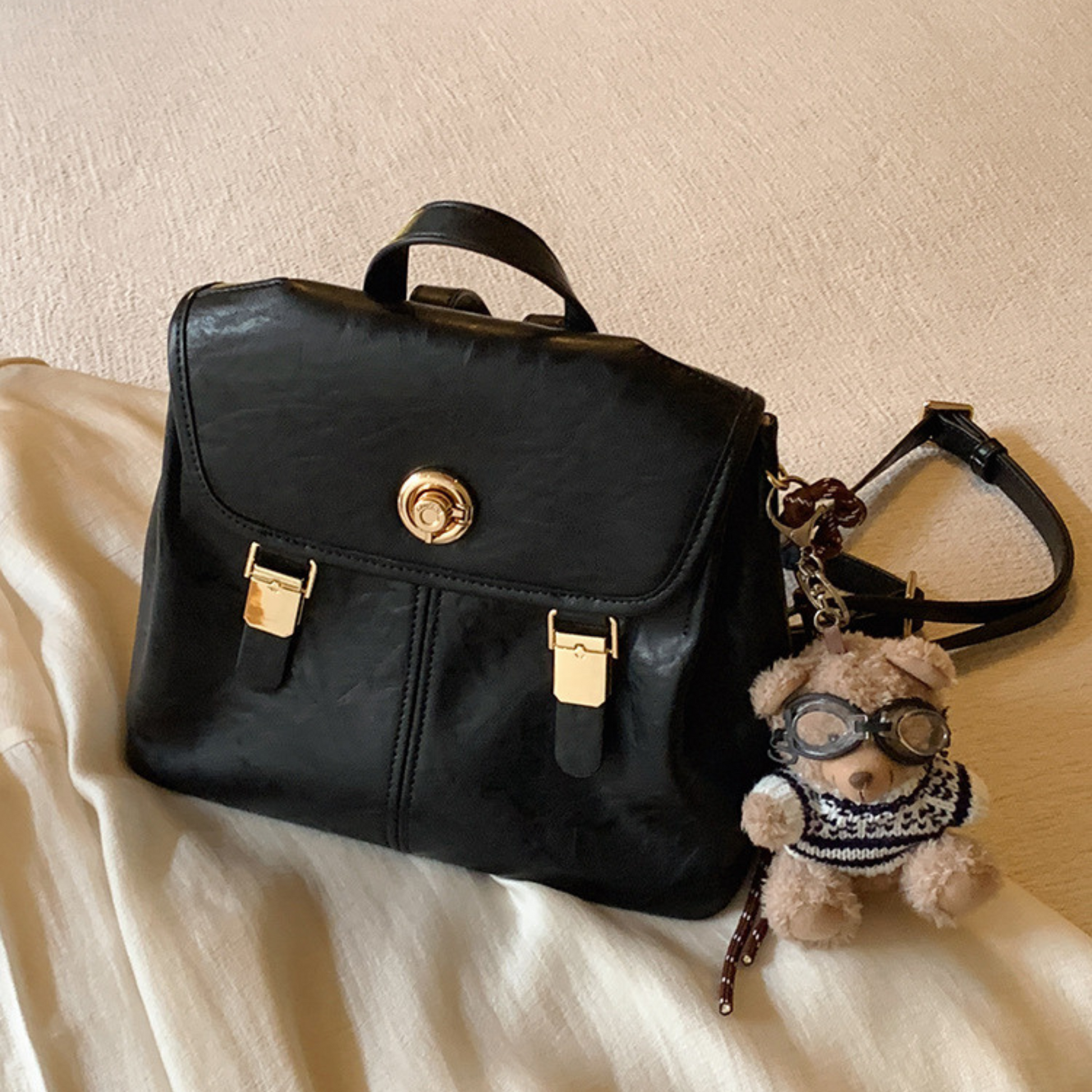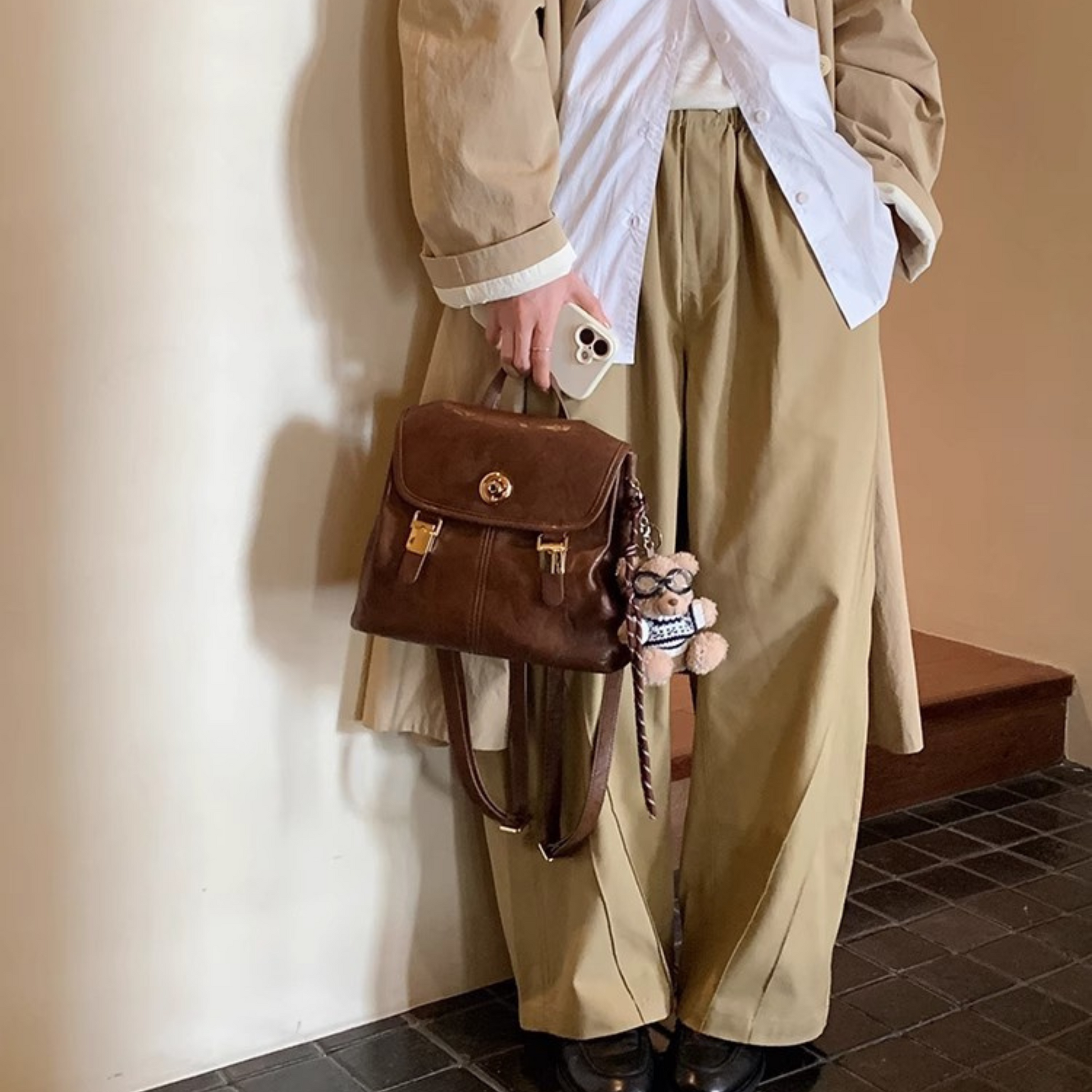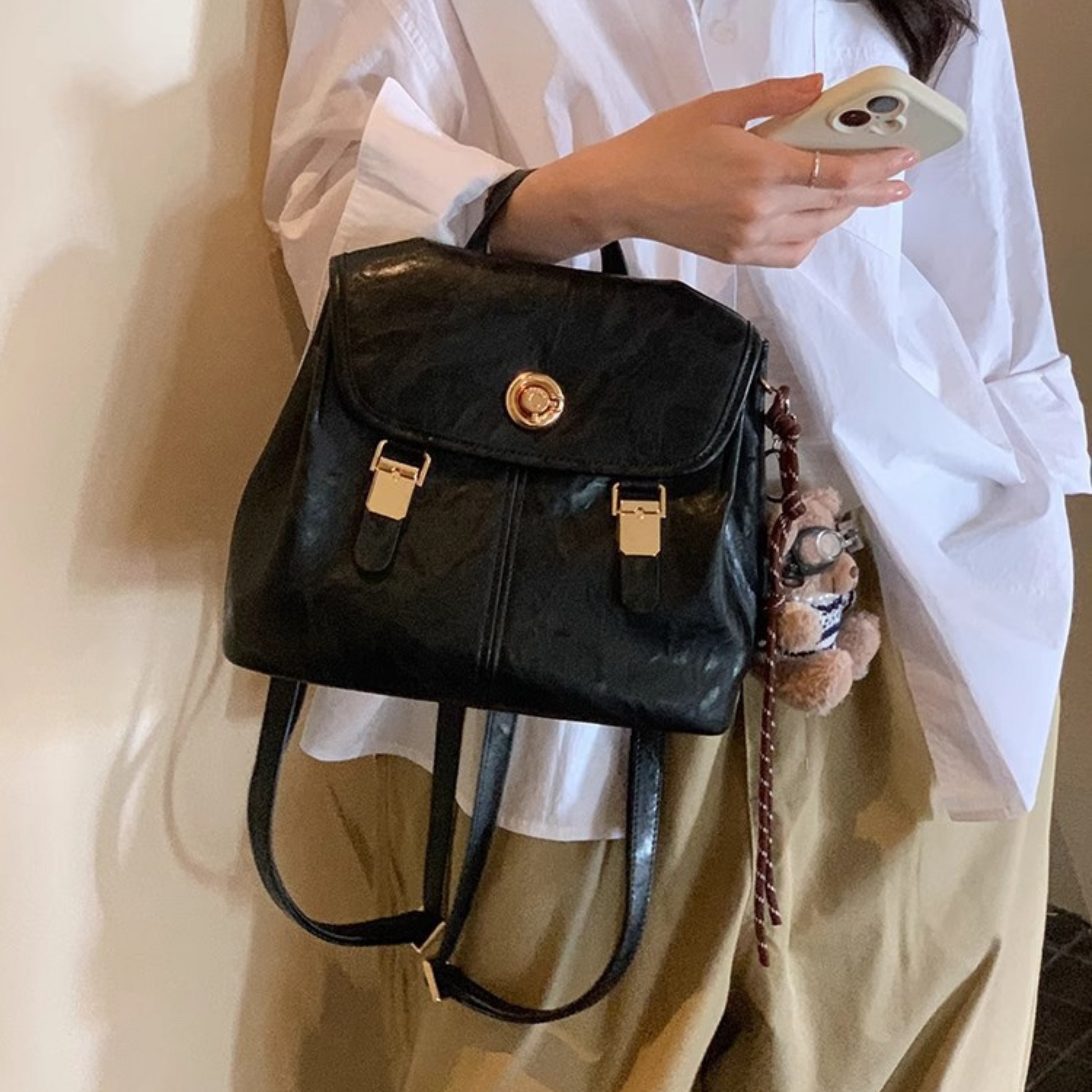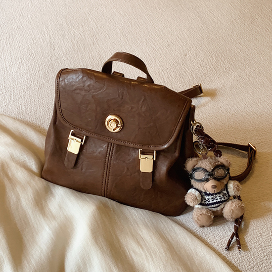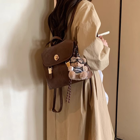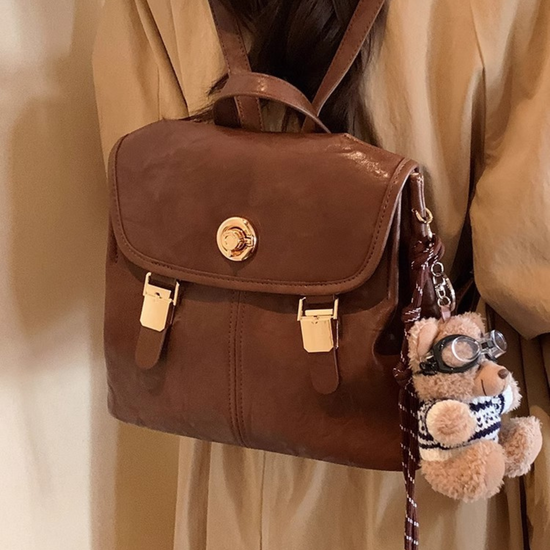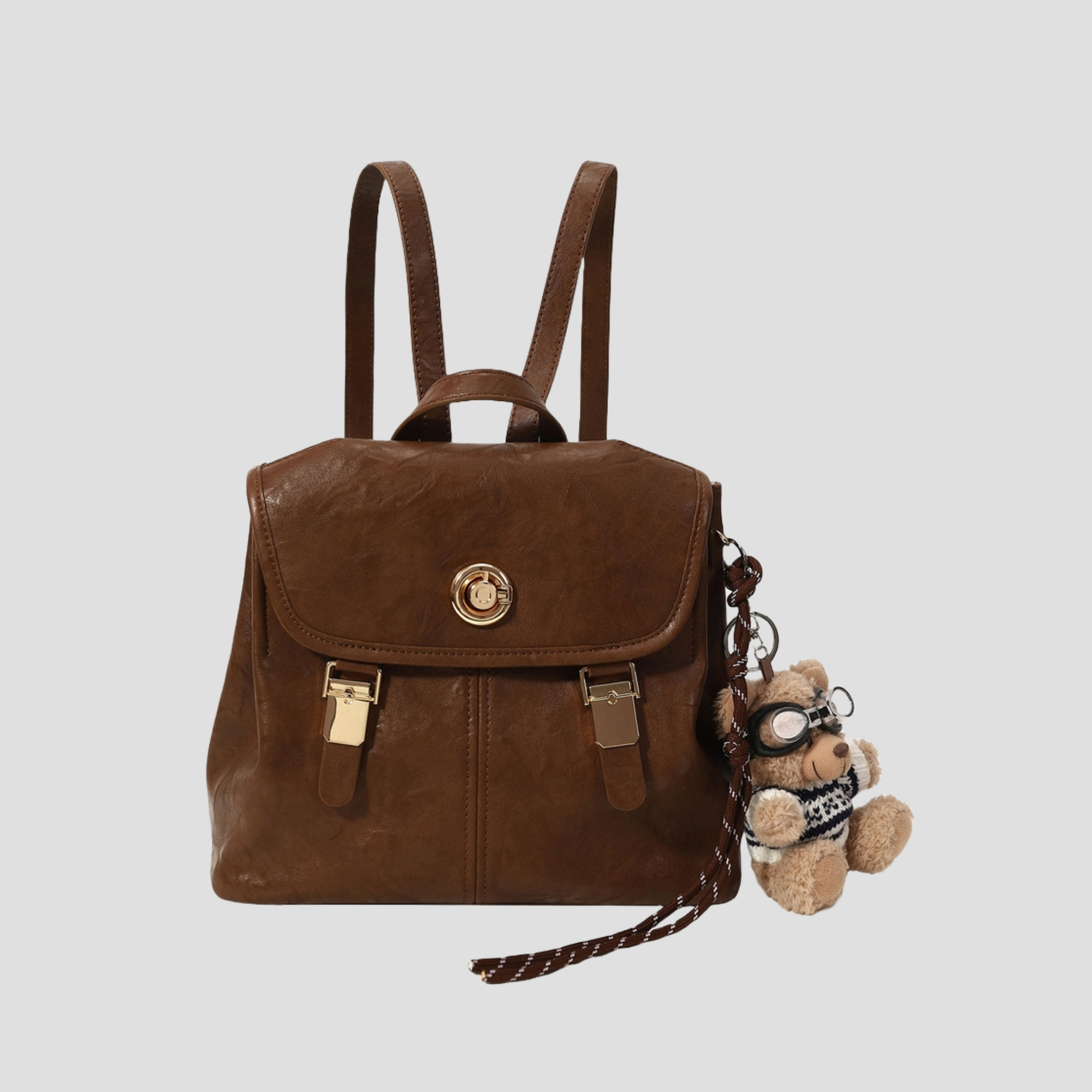 Balo Nữ Da Khoá Gài Phối Charm Gấu