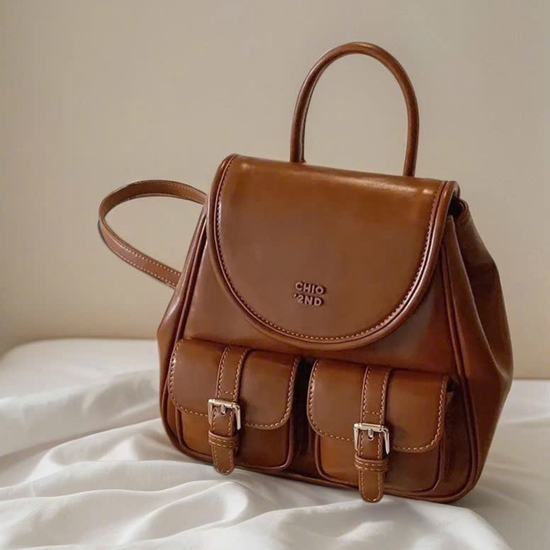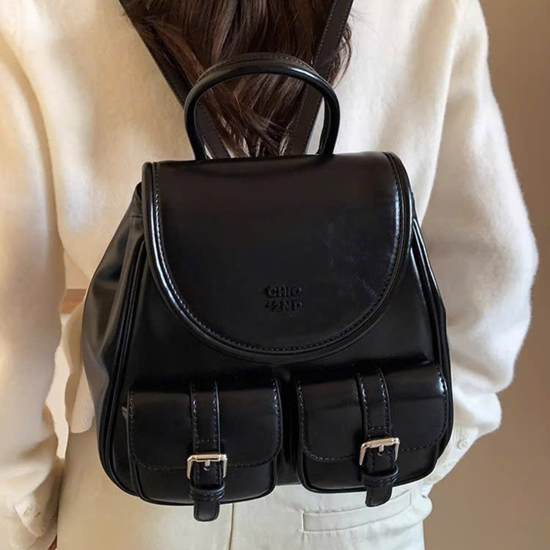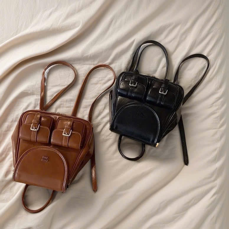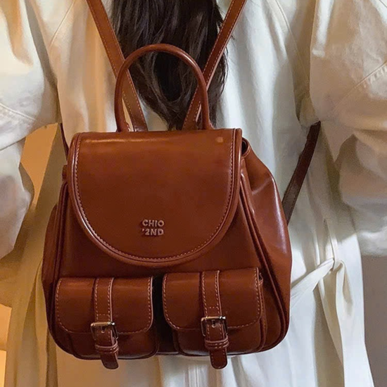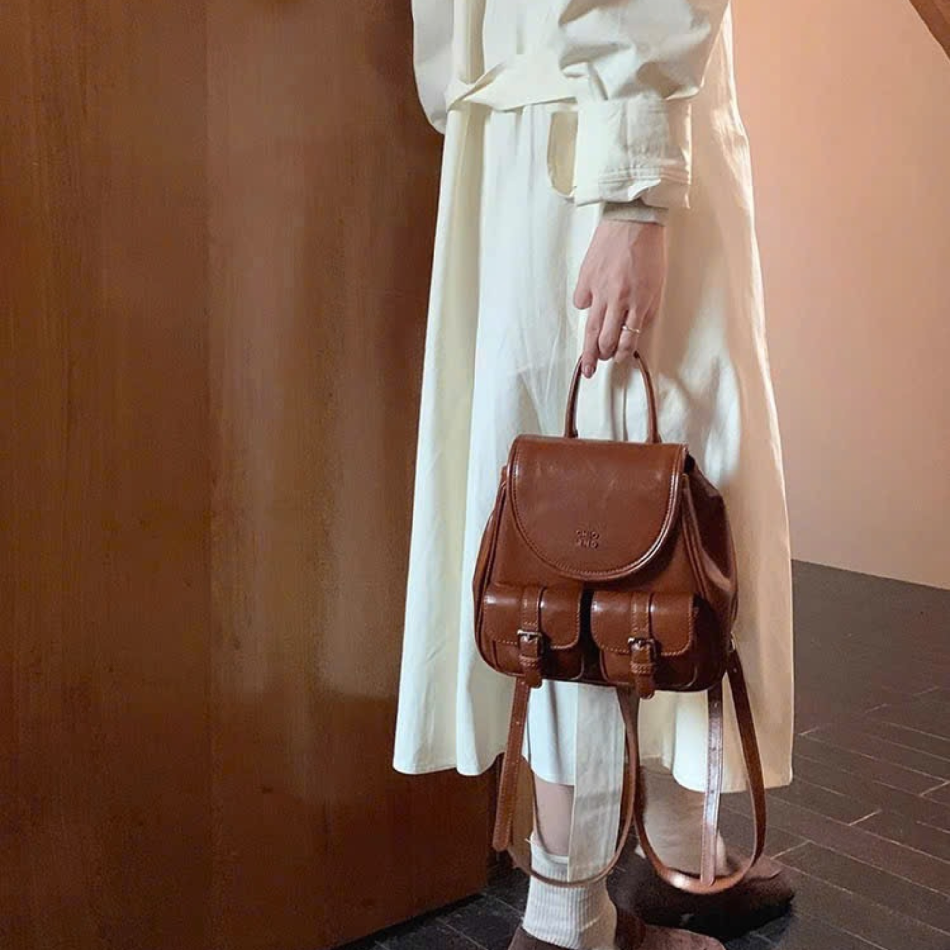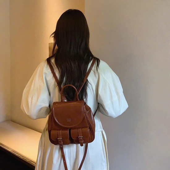 Một chiếc balo da trơn có thiết kế nắp gập phối hai ngăn hộp bên ngoài. Bên trong phối nhiều ngăn nhỏ đựng được điện thoại, sổ tay, đồ cá nhân... Kiểu dáng vintage dễ mix được với mọi set đồ dù là đi học, đi làm hay đi chơi. Chắc chắn đây sẽ là người bạn không thể thiếu đồng hành cùng bạn suốt 1 ngày dài đấy.