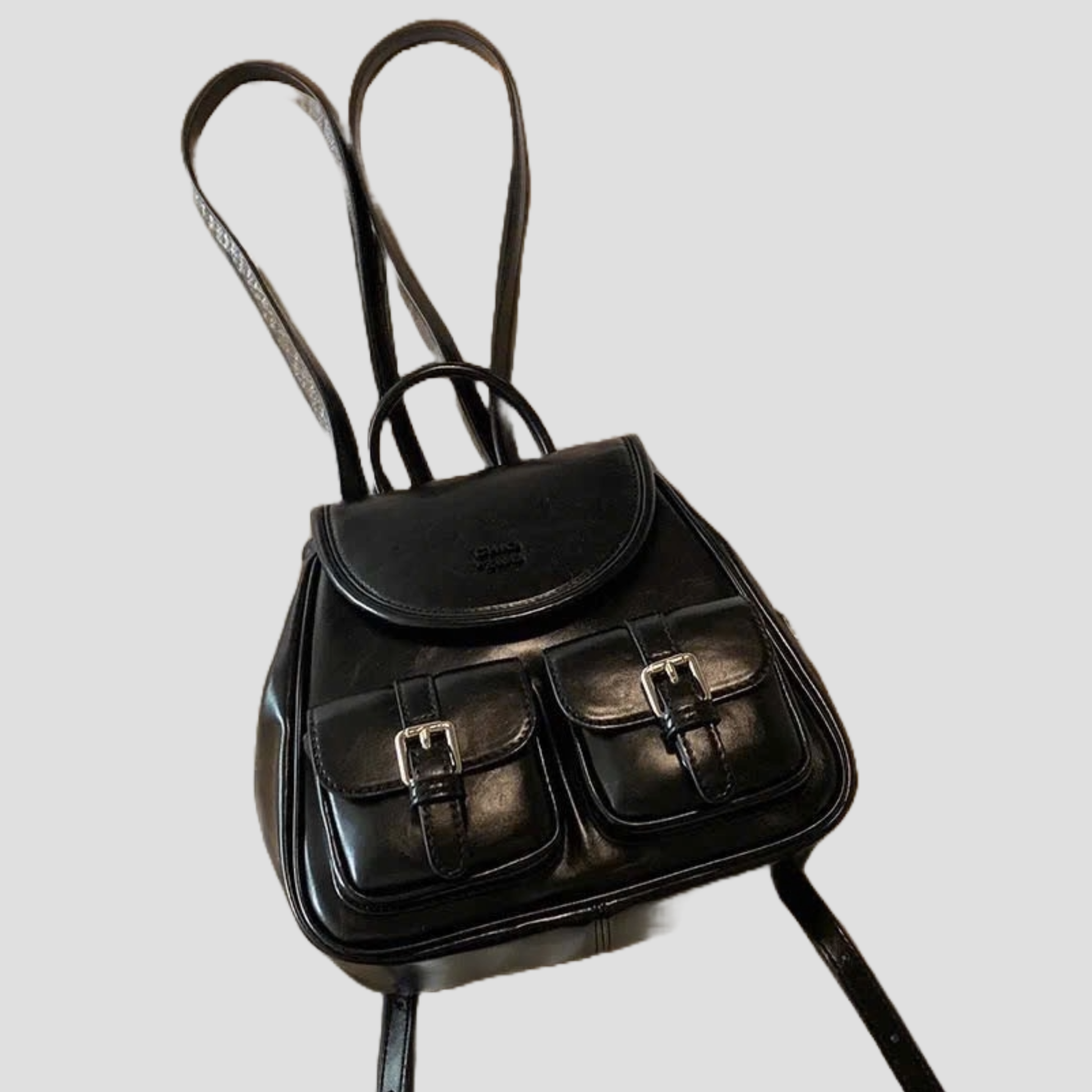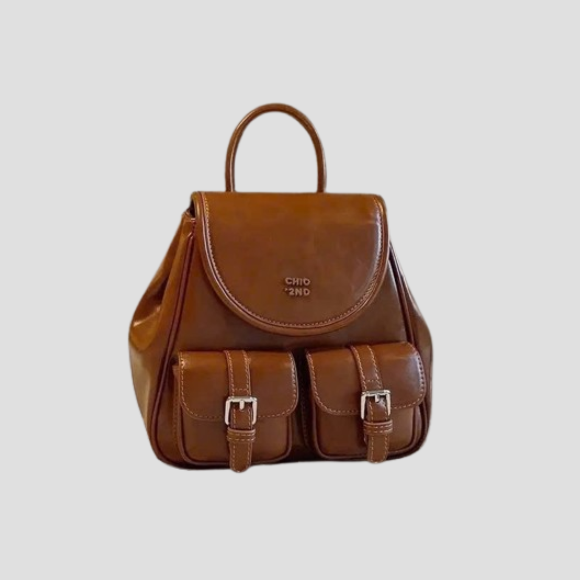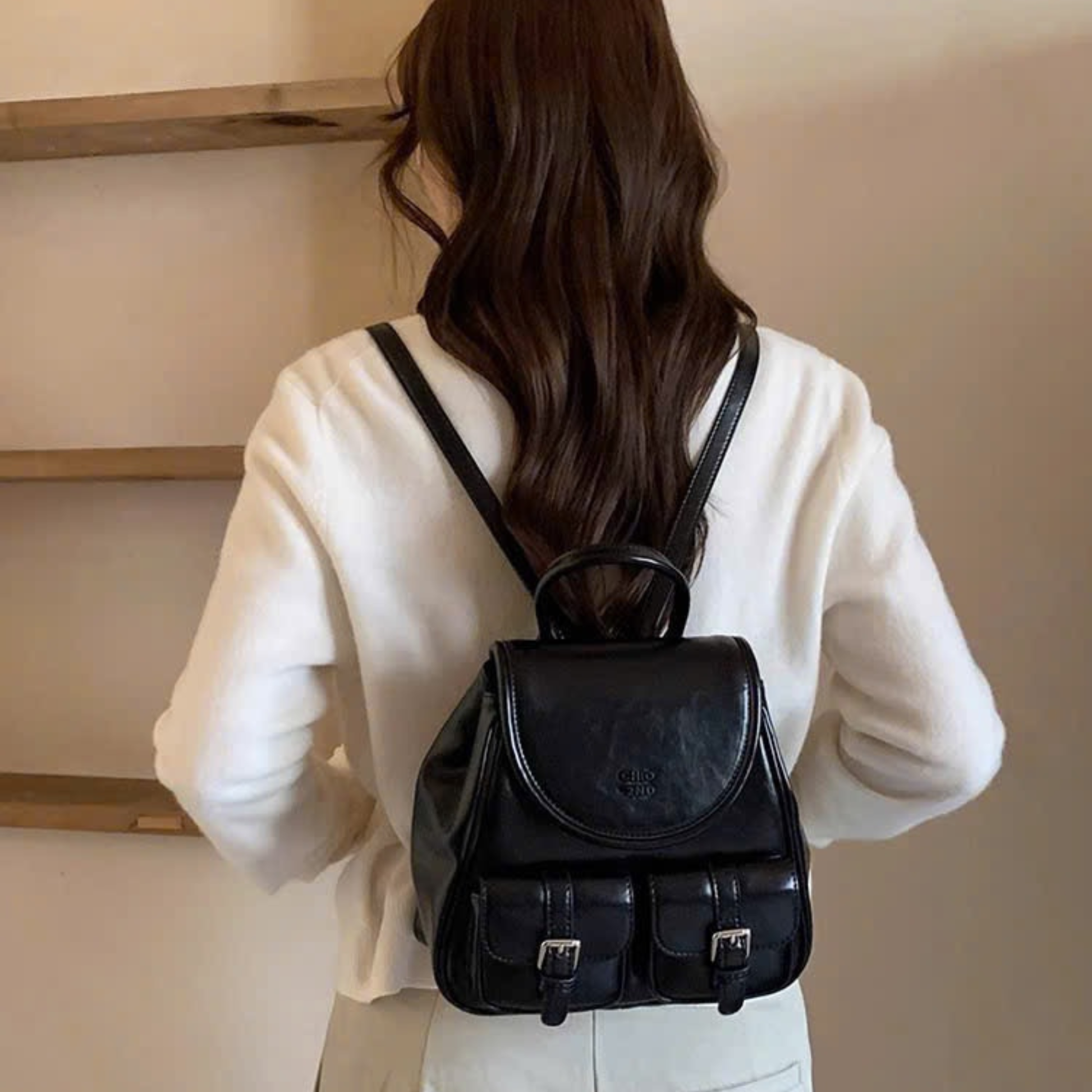 Một chiếc balo da trơn có thiết kế nắp gập phối hai ngăn hộp bên ngoài. Bên trong phối nhiều ngăn nhỏ đựng được điện thoại, sổ tay, đồ cá nhân... Kiểu dáng vintage dễ mix được với mọi set đồ dù là đi học, đi làm hay đi chơi. Chắc chắn đây sẽ là người bạn không thể thiếu đồng hành cùng bạn suốt 1 ngày dài đấy.