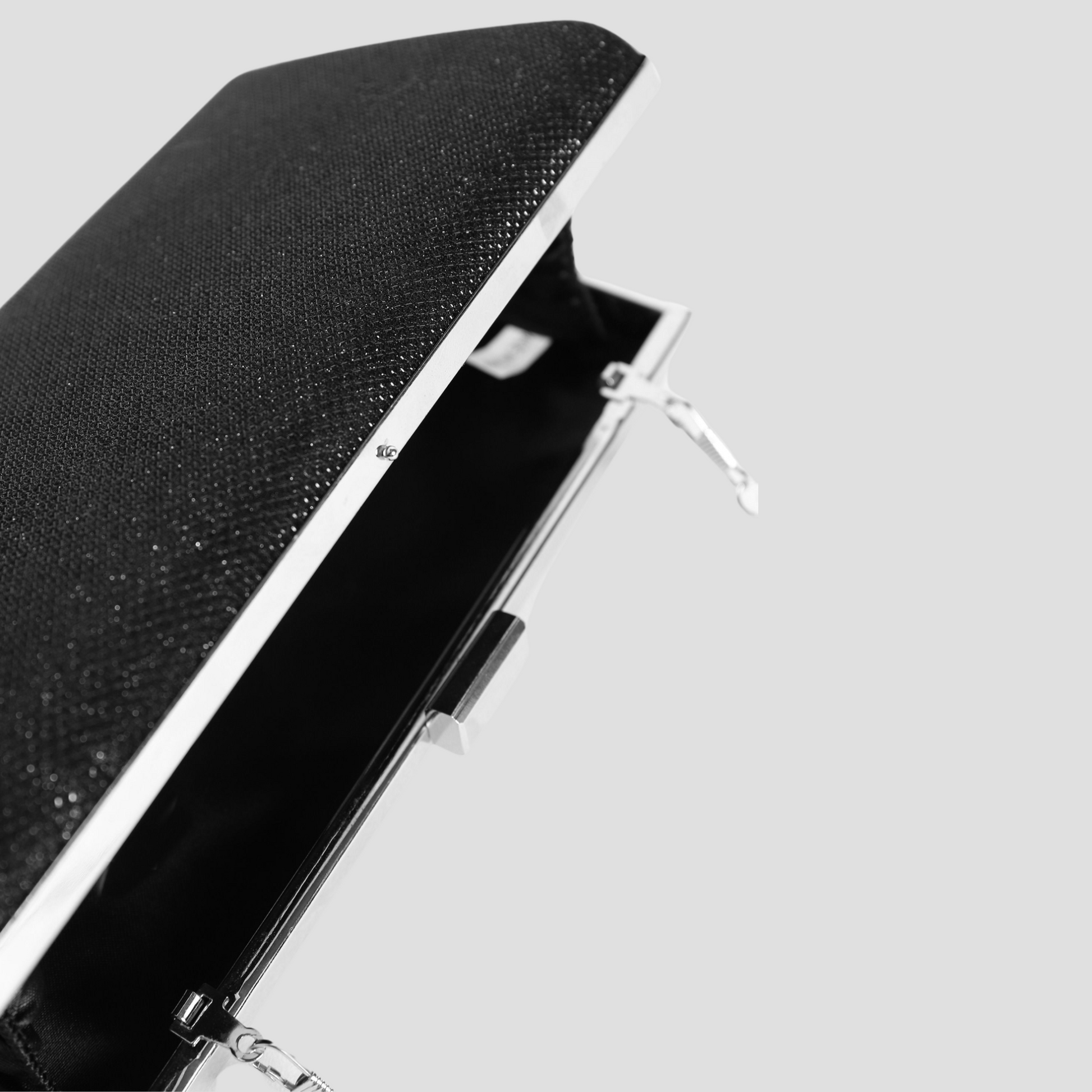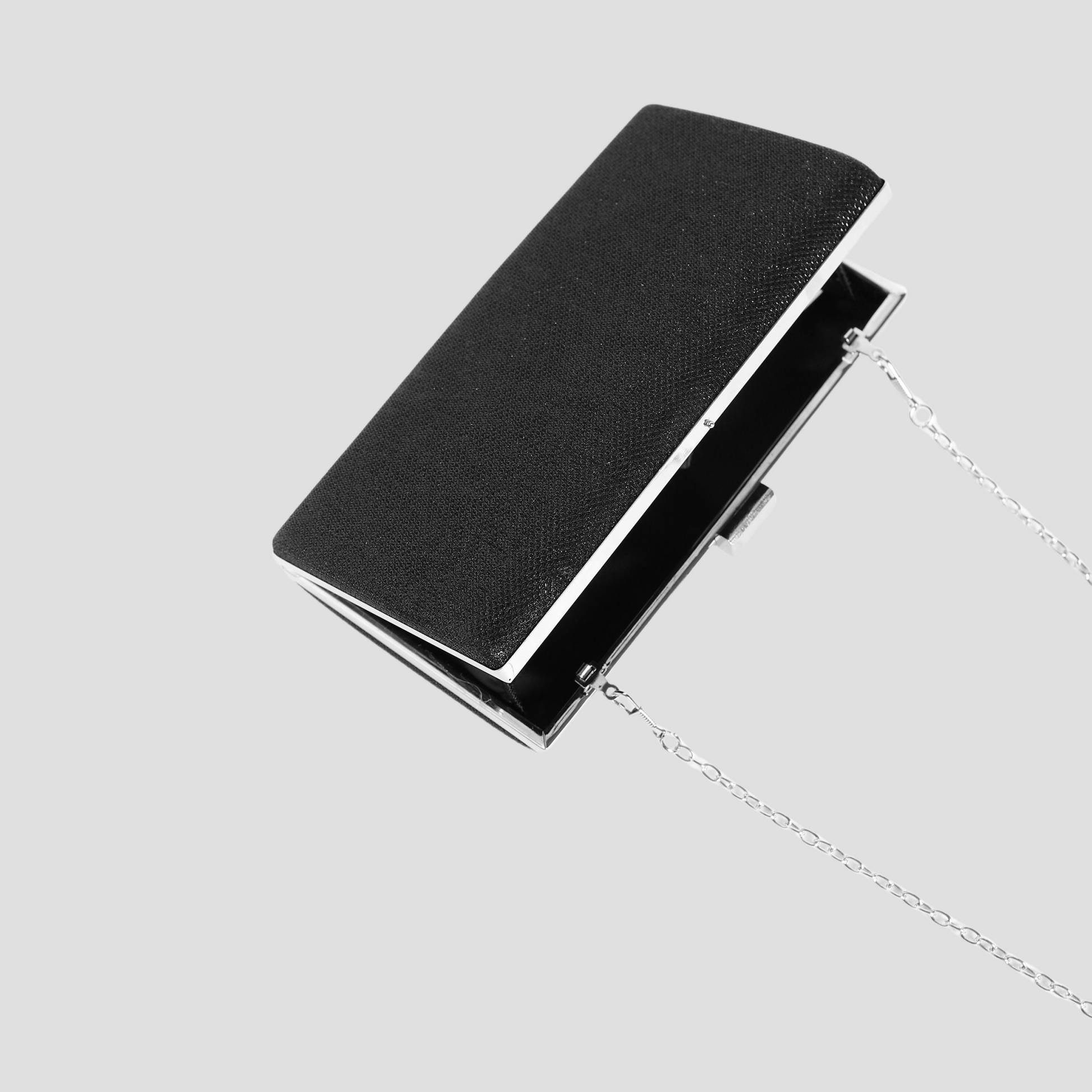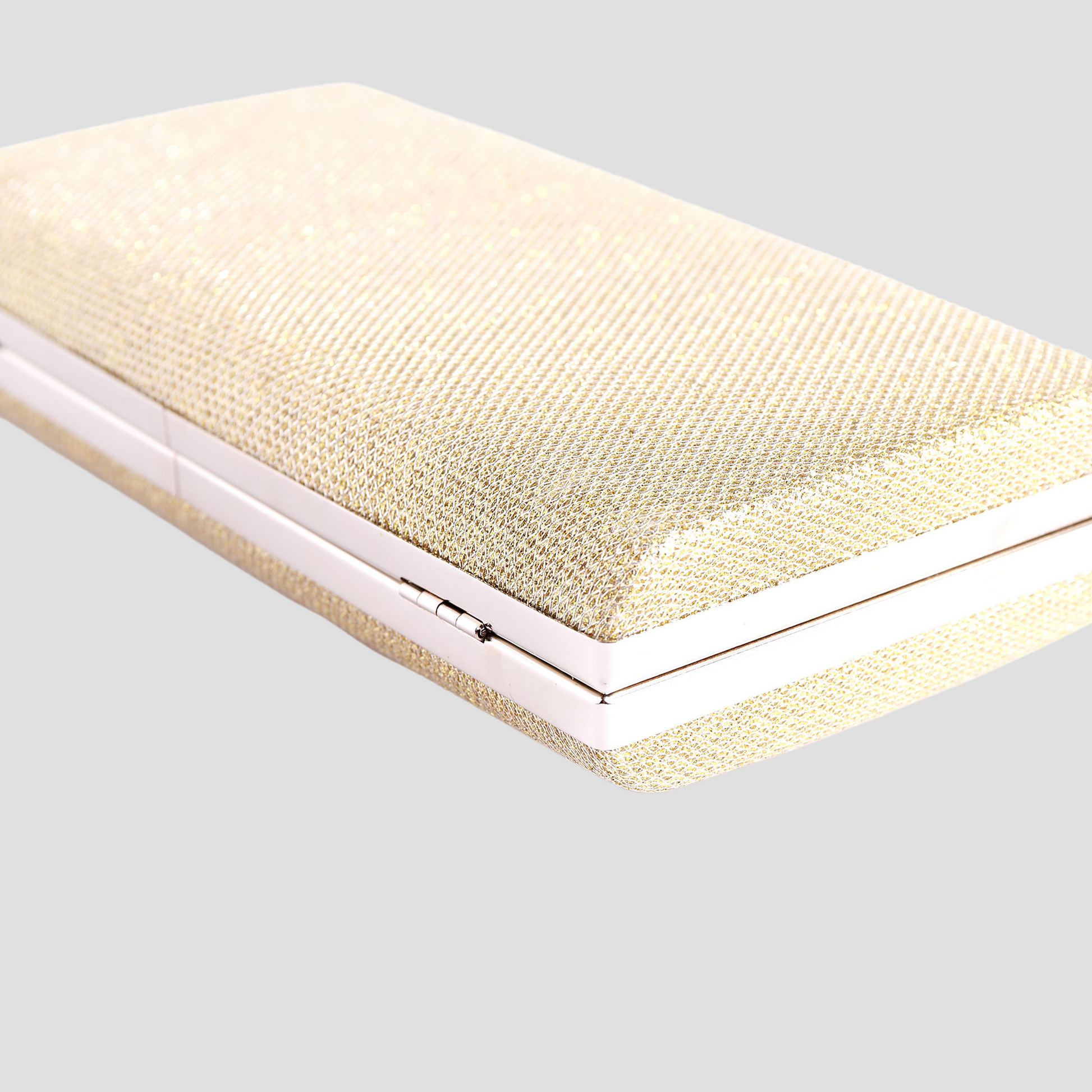 Một chiếc clutch cầm tay chắc chắn sẽ là phụ kiện không thể thiếu khi sánh đôi cùng nàng trong các bữa tiệc. Clutch có thiết kế form hộp chữ nhật kết hợp bên ngoài là lớp vải kim tuyến đơn giản mà vẫn tinh tế. Ngoài ra còn đi kèm dây xích tháo rời để xách tay tuỳ ý. Dễ dàng phối hợp với mọi trang phục từ nhẹ nhàng đến thanh lịch, giúp nàng nổi bật và ghi lại dấu ấn khó phai trong lòng người đối diện.