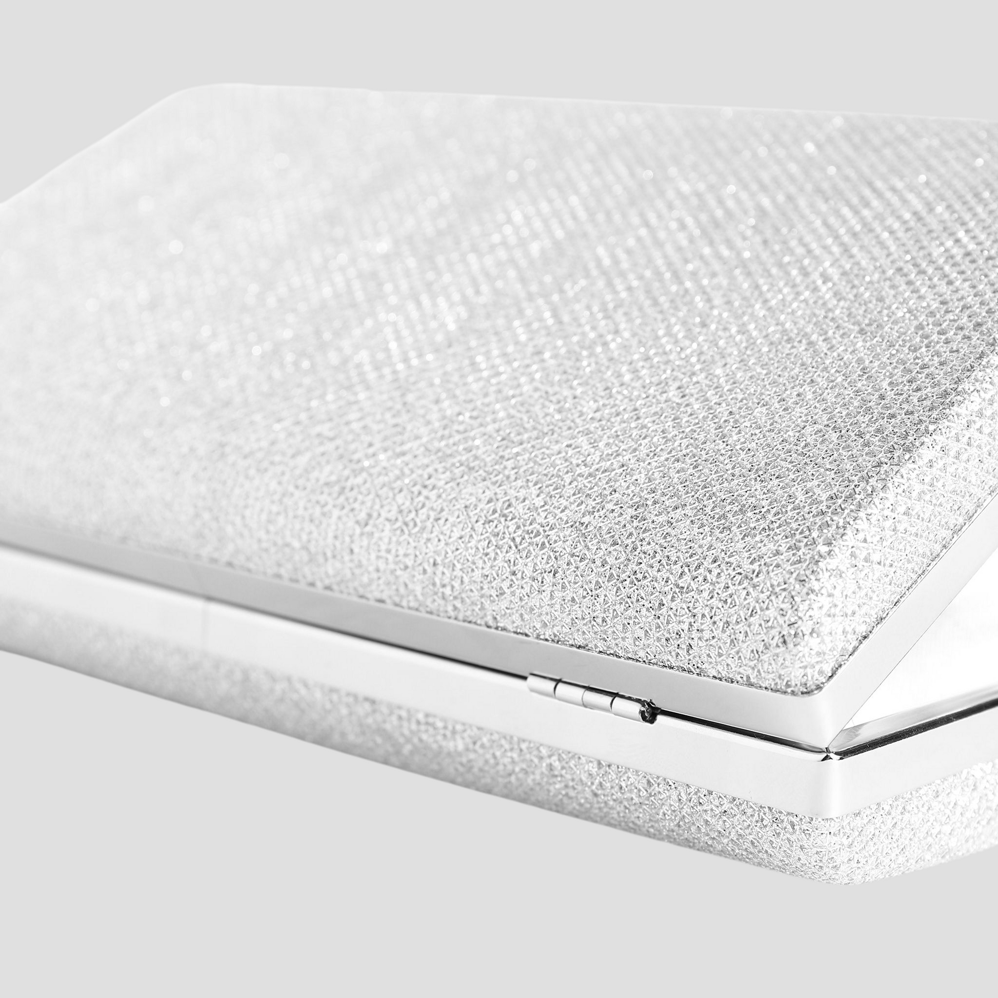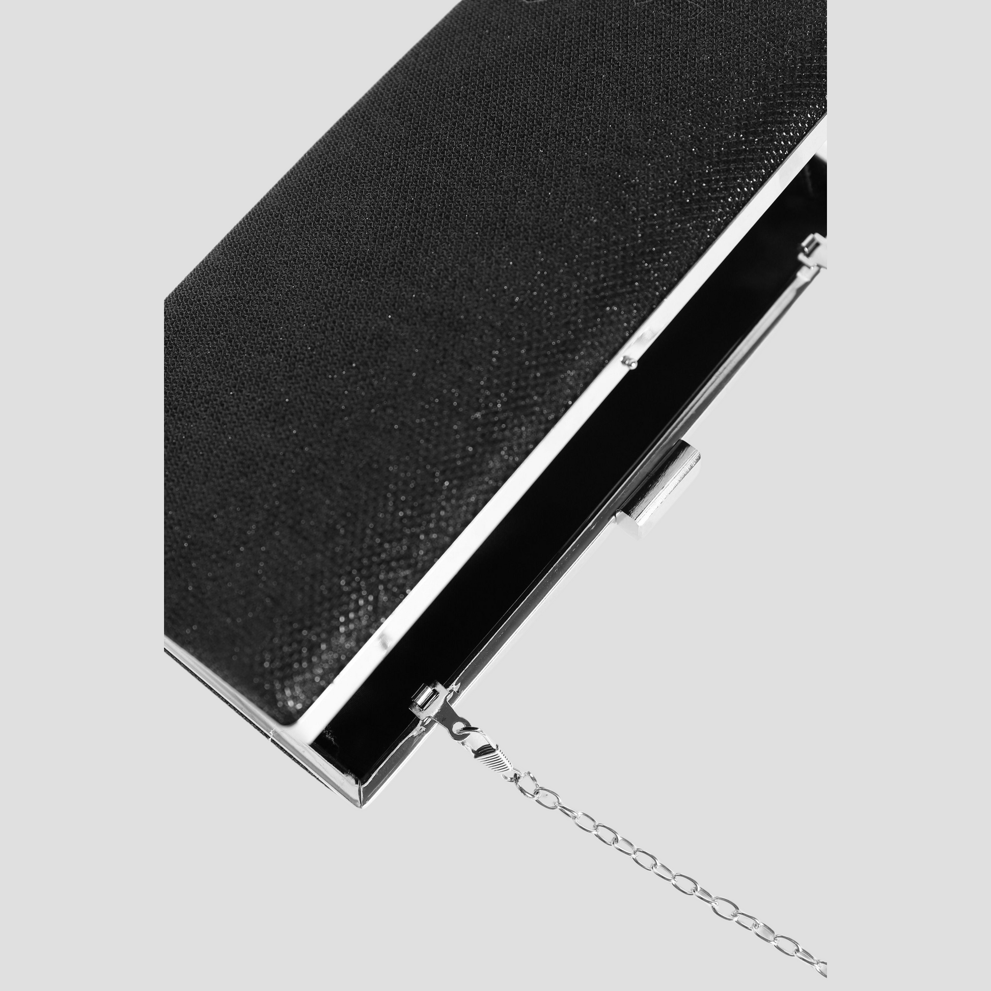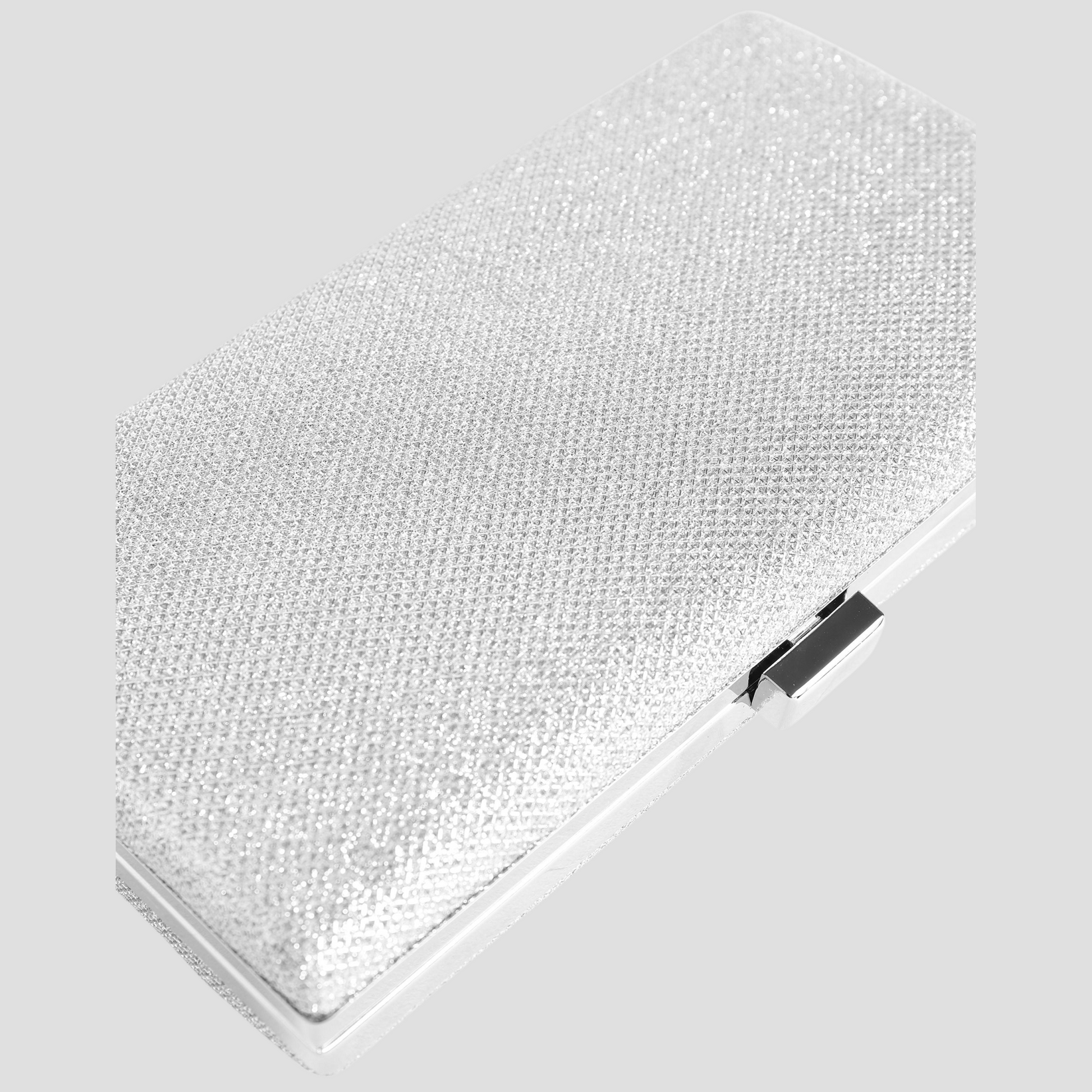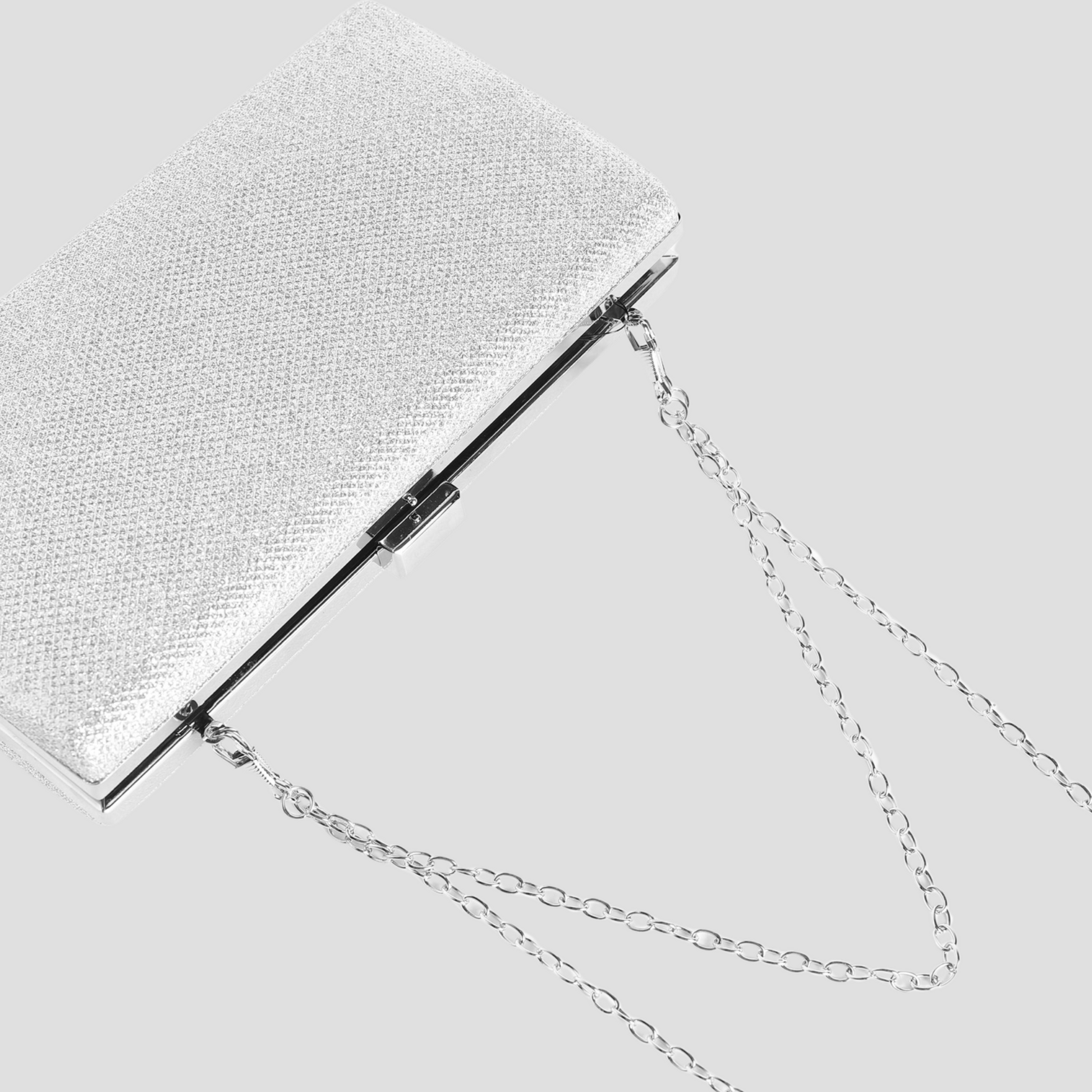 Một chiếc clutch cầm tay chắc chắn sẽ là phụ kiện không thể thiếu khi sánh đôi cùng nàng trong các bữa tiệc. Clutch có thiết kế form hộp chữ nhật kết hợp bên ngoài là lớp vải kim tuyến đơn giản mà vẫn tinh tế. Ngoài ra còn đi kèm dây xích tháo rời để xách tay tuỳ ý. Dễ dàng phối hợp với mọi trang phục từ nhẹ nhàng đến thanh lịch, giúp nàng nổi bật và ghi lại dấu ấn khó phai trong lòng người đối diện.