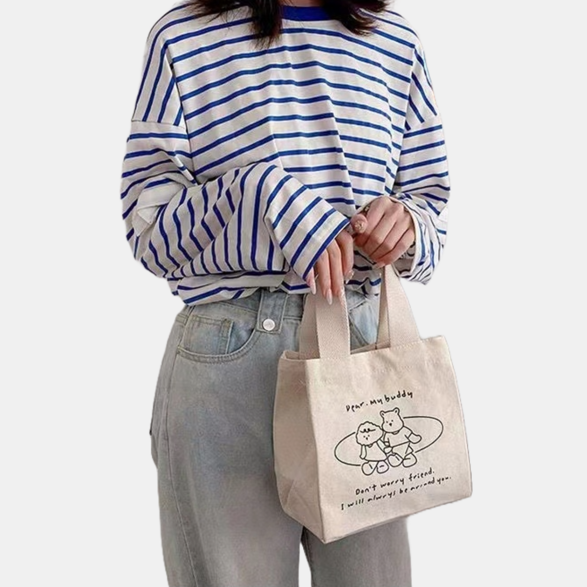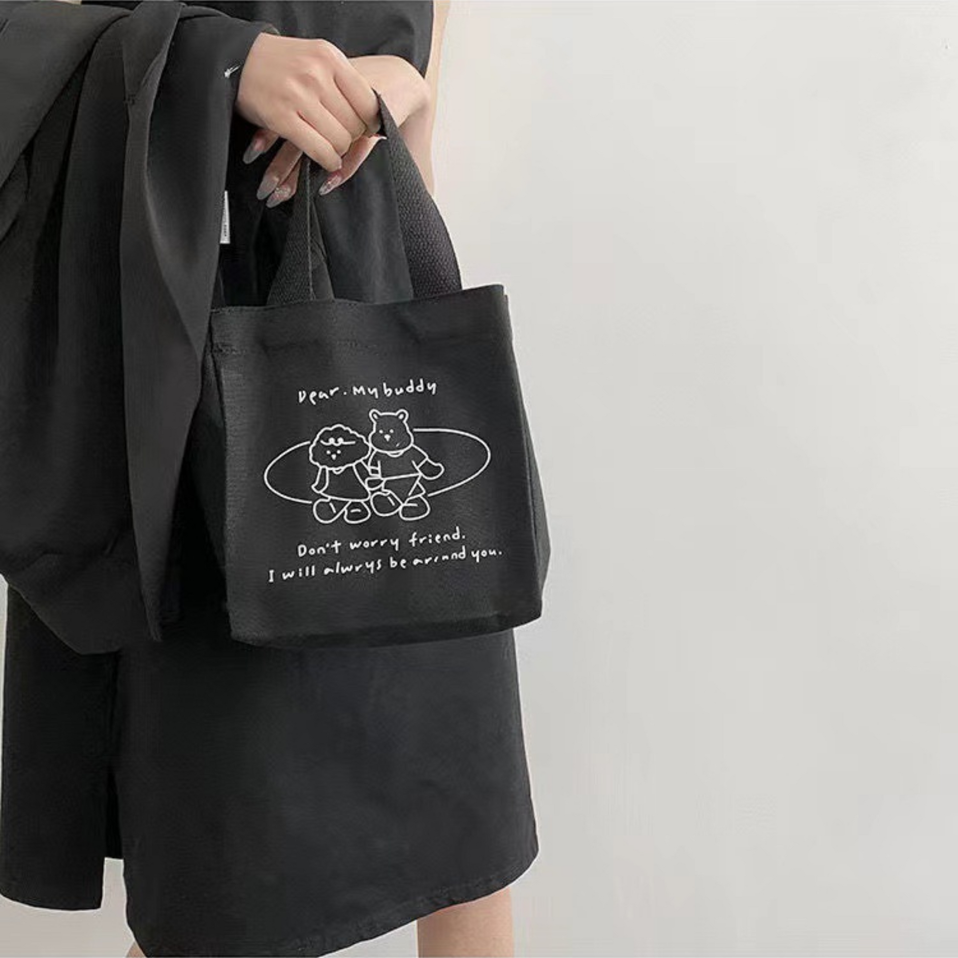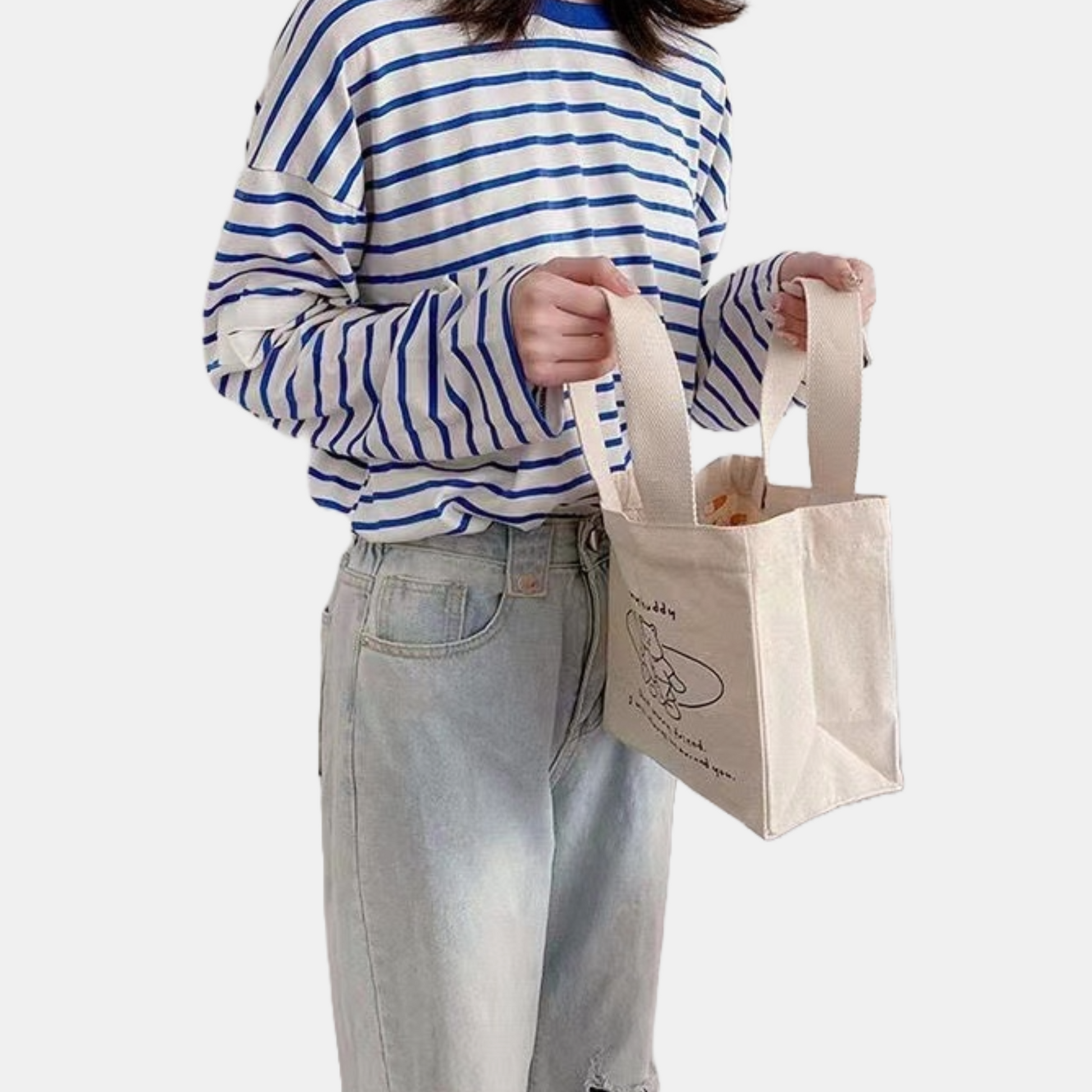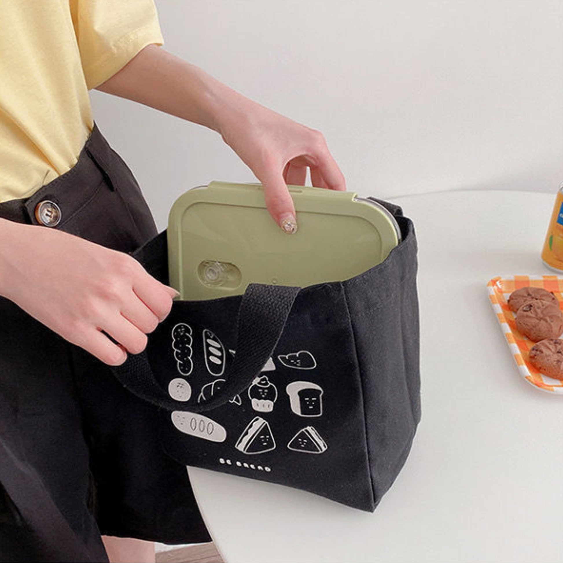 Chiếc túi xách vải với kiểu dáng xô vuông phối hoạ tiết basic nhưng không kém phần tinh tế. Túi có quai cầm tay gọn nhẹ nên rất thuận tiện khi mang theo, không gian bên trong đựng được nhiều đồ dùng cá nhân như điện thoại, bóp ví, mắt kính, hộp cơm, chai nước,...