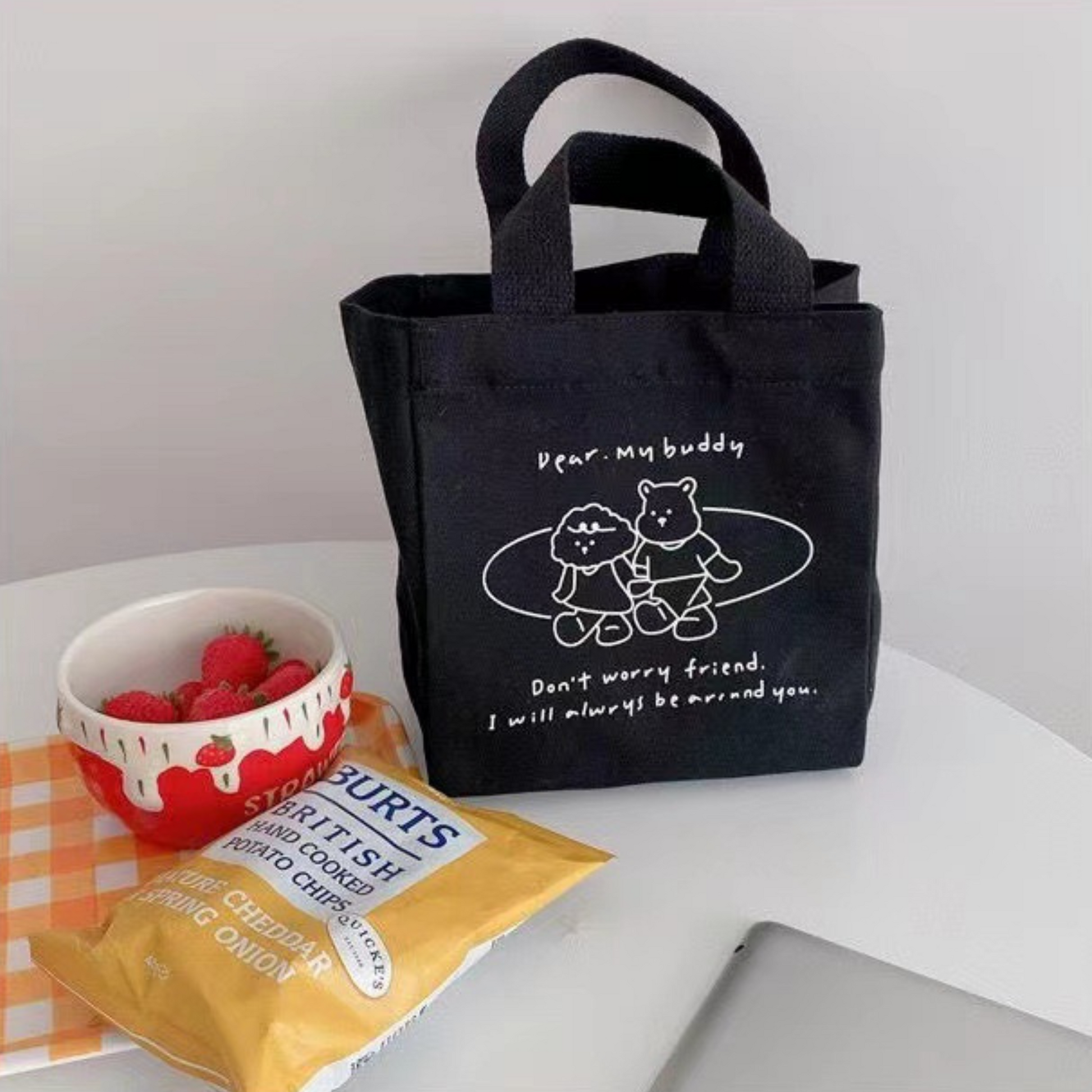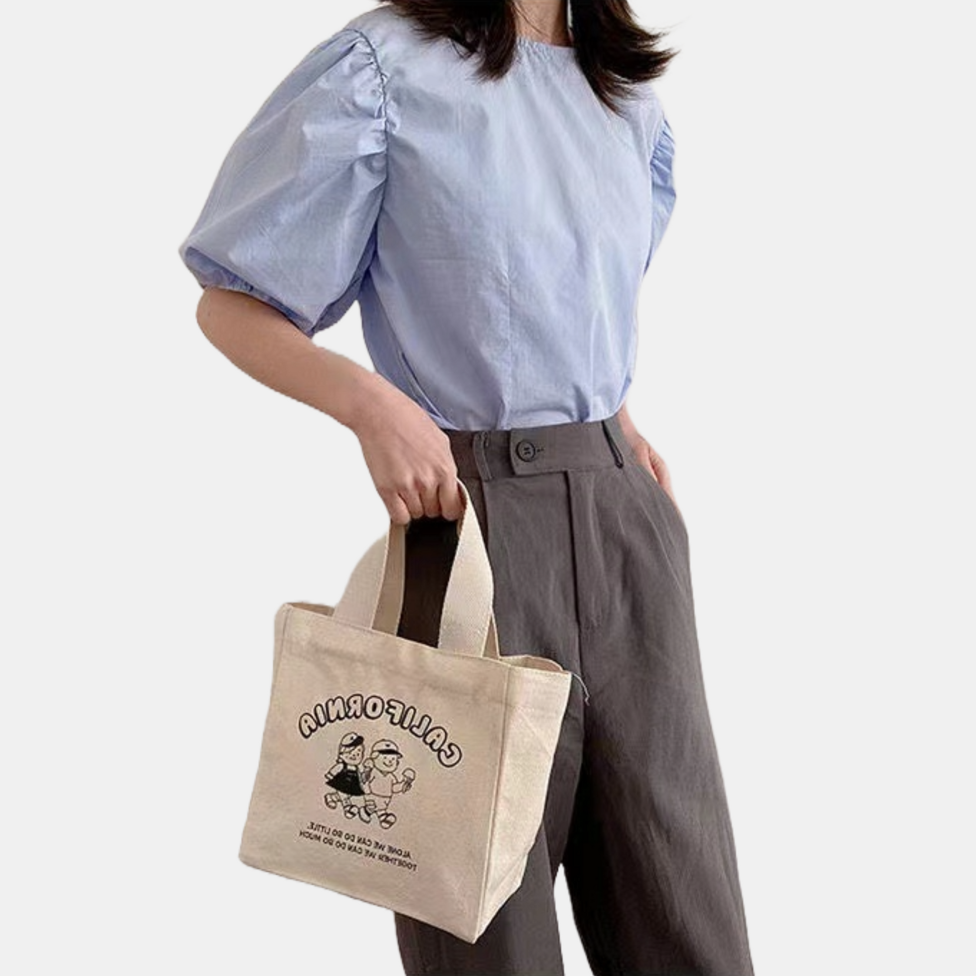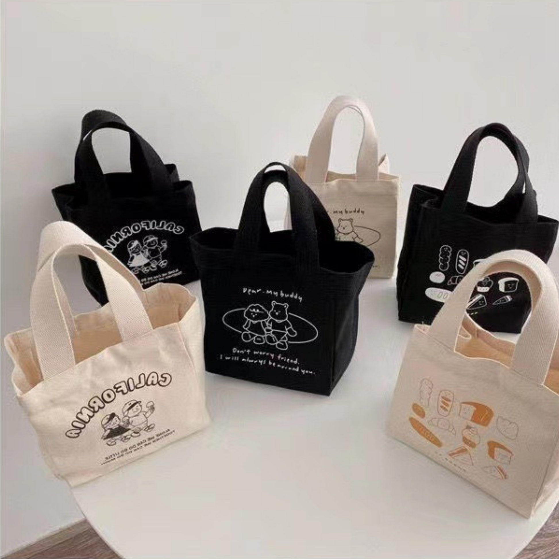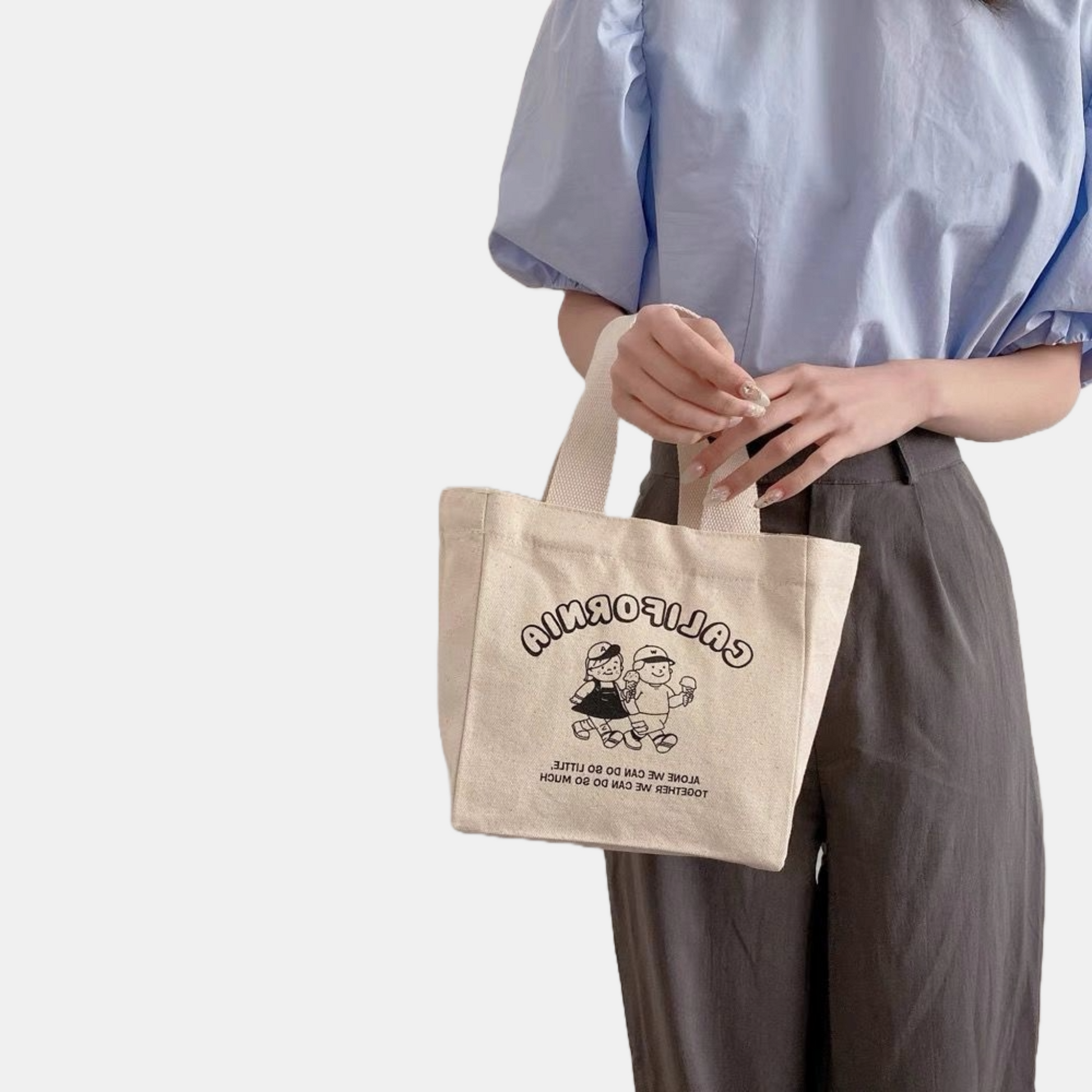 Chiếc túi xách vải với kiểu dáng xô vuông phối hoạ tiết basic nhưng không kém phần tinh tế. Túi có quai cầm tay gọn nhẹ nên rất thuận tiện khi mang theo, không gian bên trong đựng được nhiều đồ dùng cá nhân như điện thoại, bóp ví, mắt kính, hộp cơm, chai nước,...
