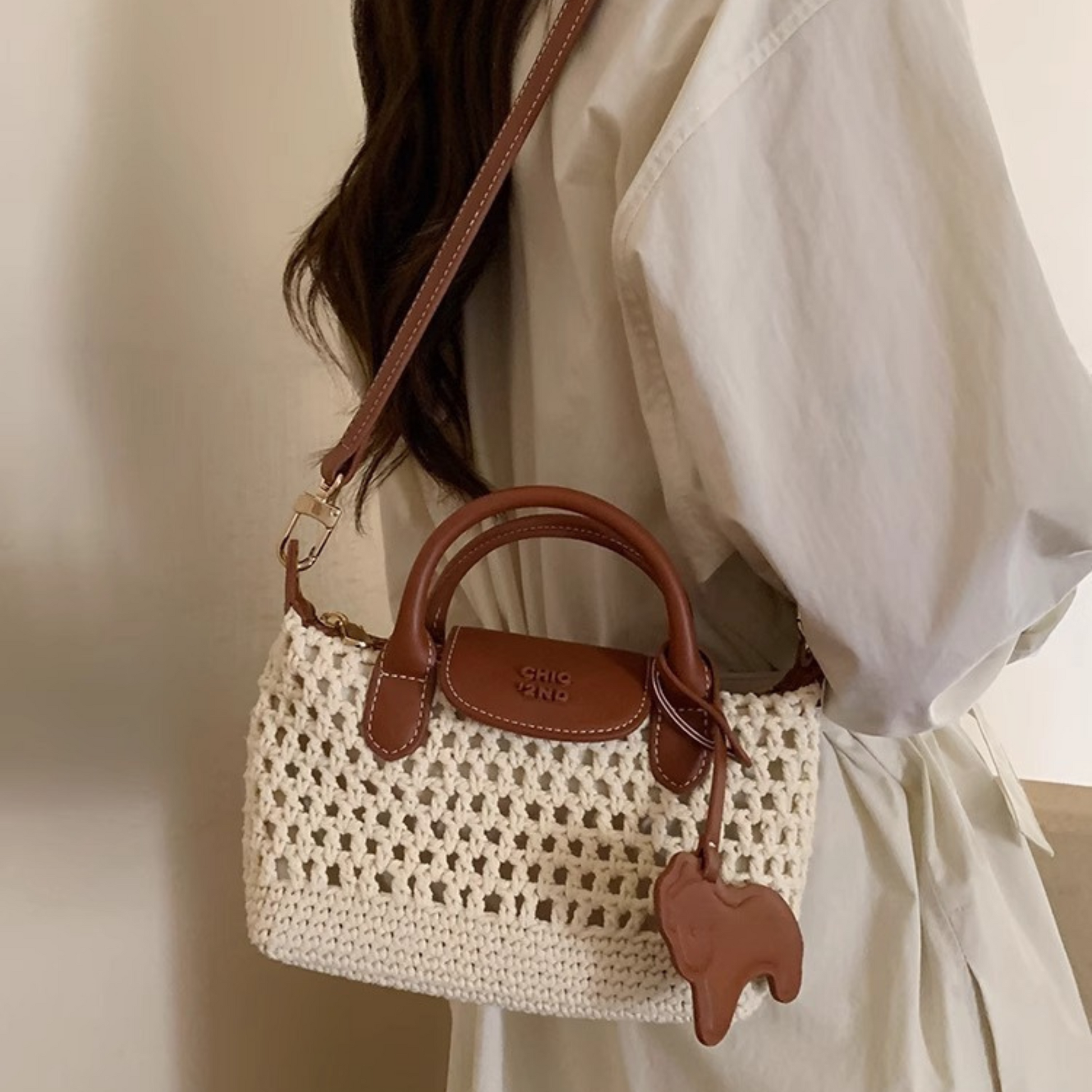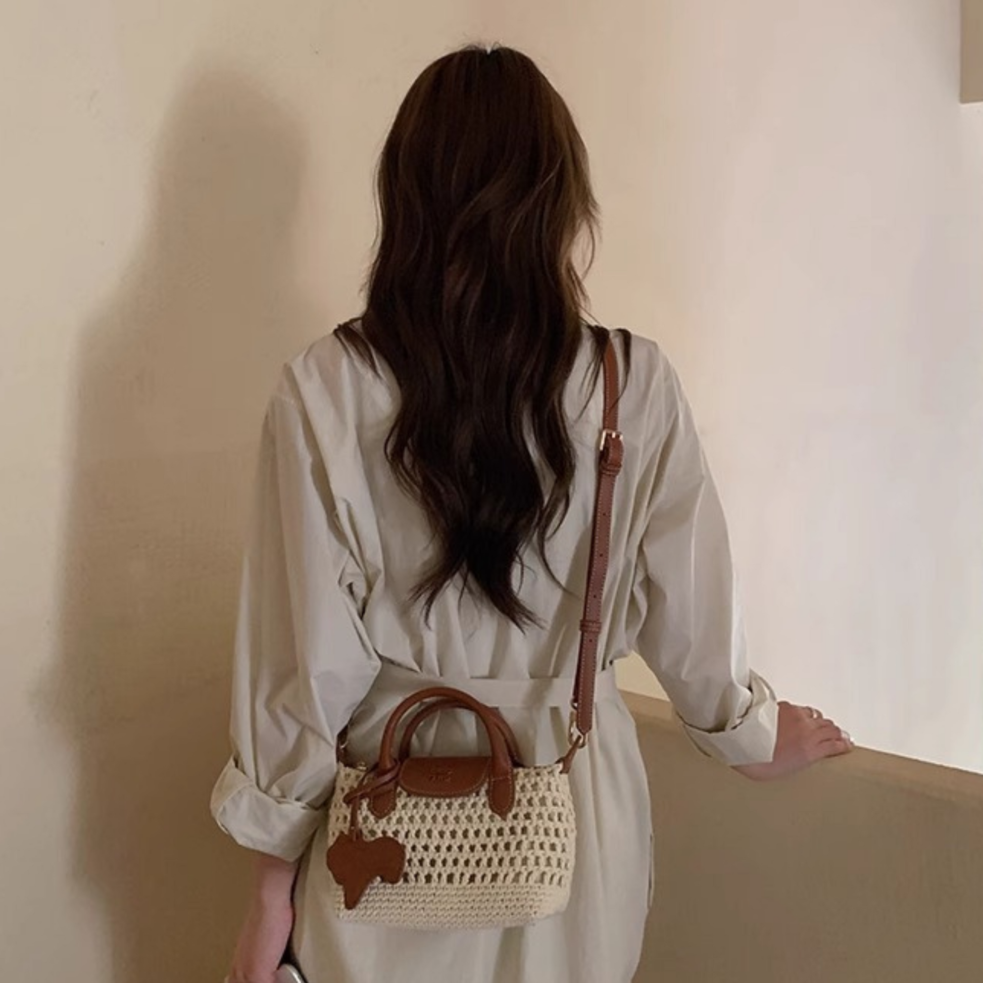 Chiếc túi xách lưới vải với thiết kế form thuyền lạ mắt, mang lại phong cách vintage. Điểm nổi bật của túi là dây đeo linh hoạt, bạn có thể sử dụng theo ba kiểu: cầm tay, đeo vai hoặc đeo chéo tuỳ thích.