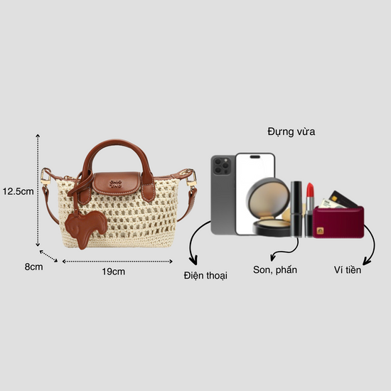 Không gian bên trong túi đựng được những đồ dùng cá nhân như điện thoại, ví tiền, mắt kính, đồ trang điểm... Điều này giúp bạn luôn tự tin khi ra ngoài, phù hợp cho những dịp đi biển, picnic hay dạo phố. Màu sắc trẻ trung và dễ dàng phối cùng mọi set đồ. Đây sẽ là một item không thể thiếu trong bộ sưu tập phụ kiện của những ai yêu thích thời trang.