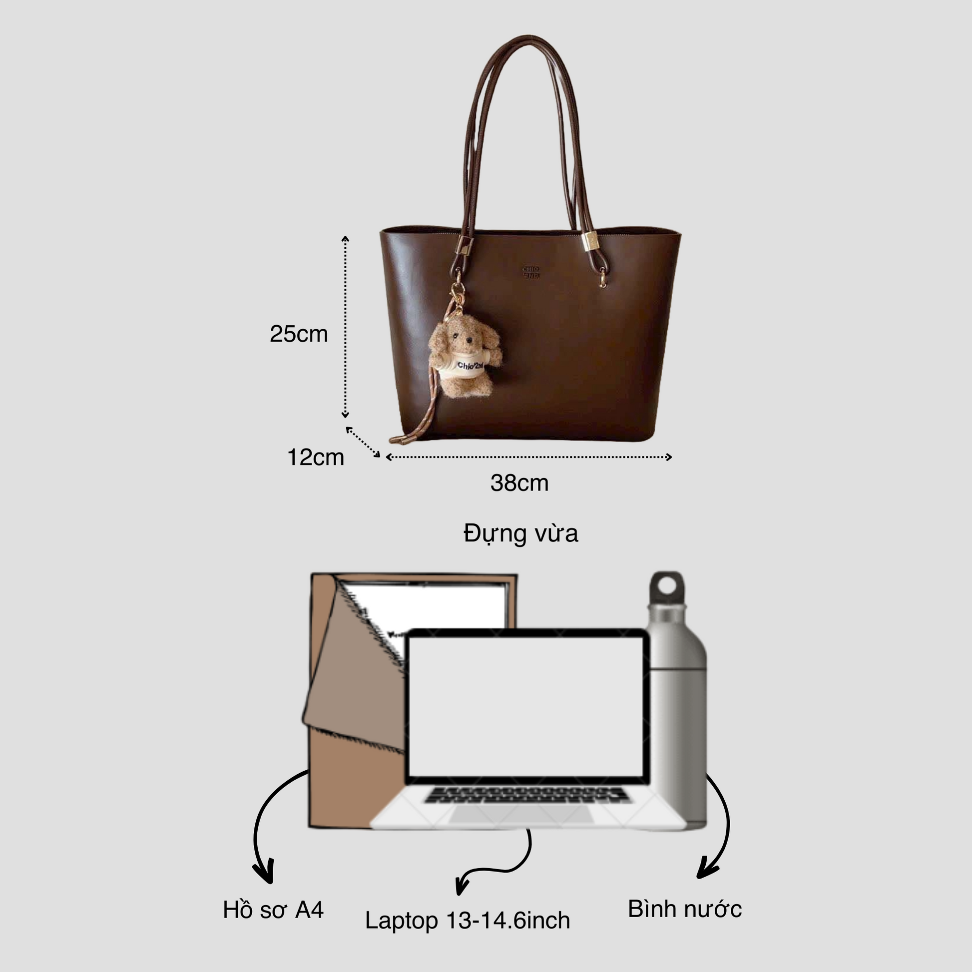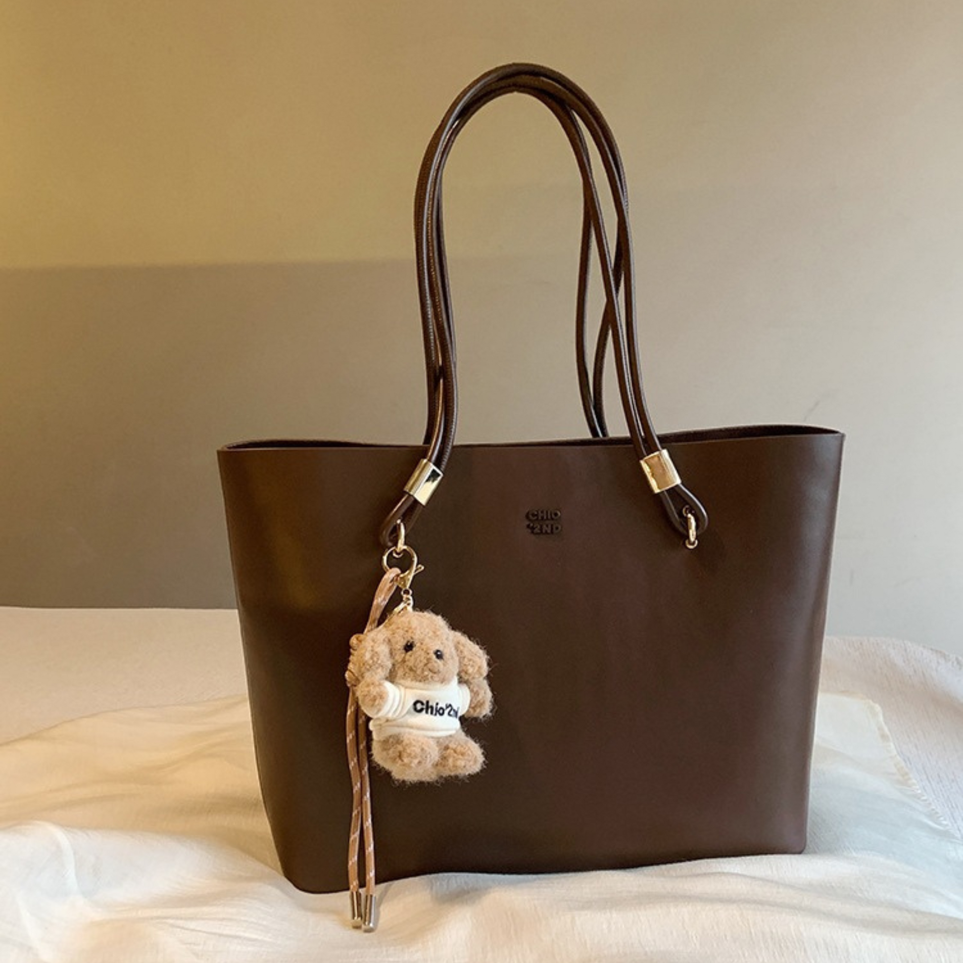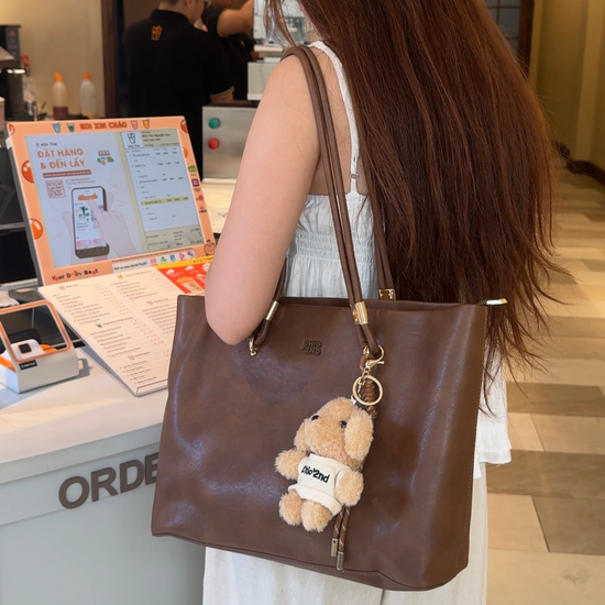 Túi Xách Nữ Bigsize Da Trơn Phối Charm Gấu