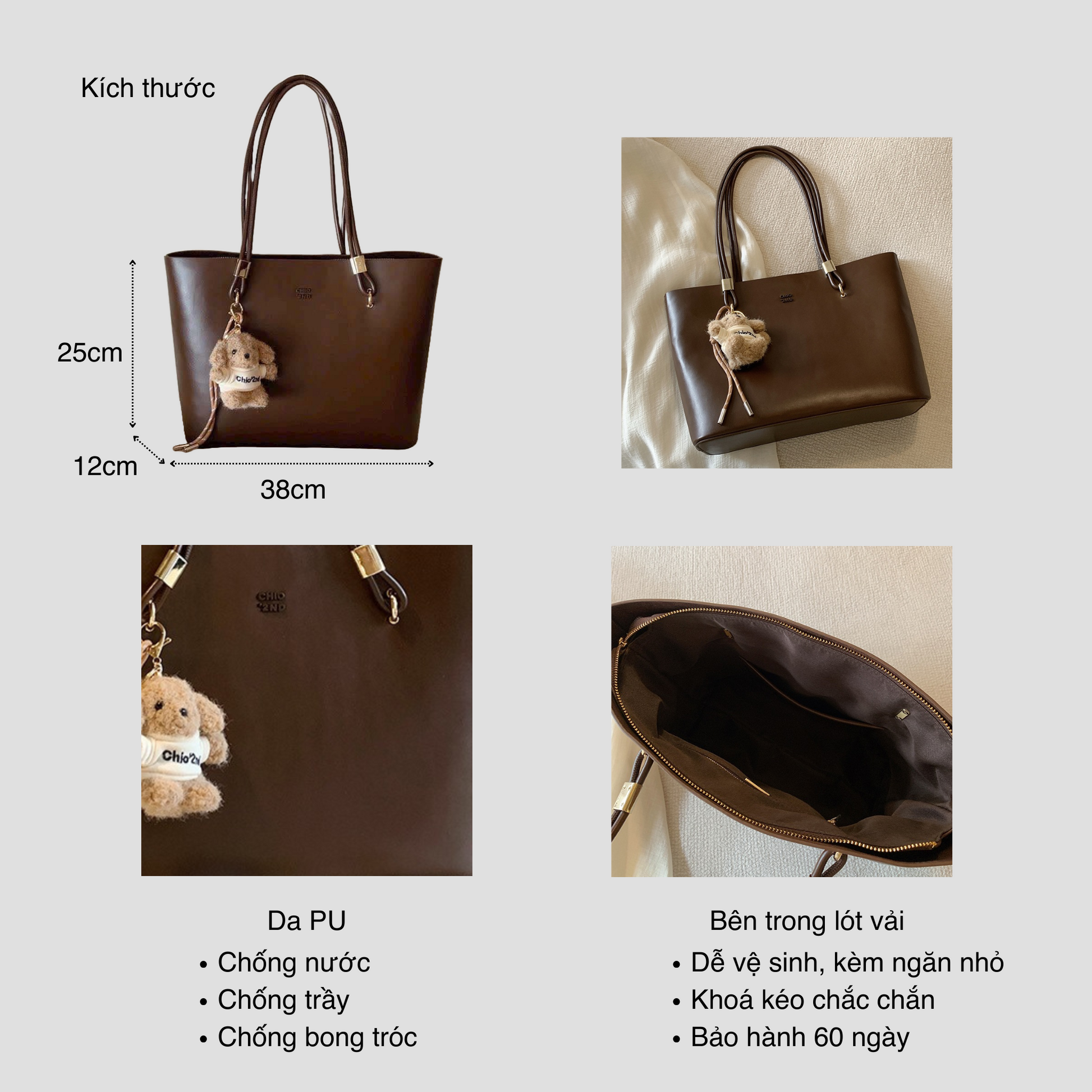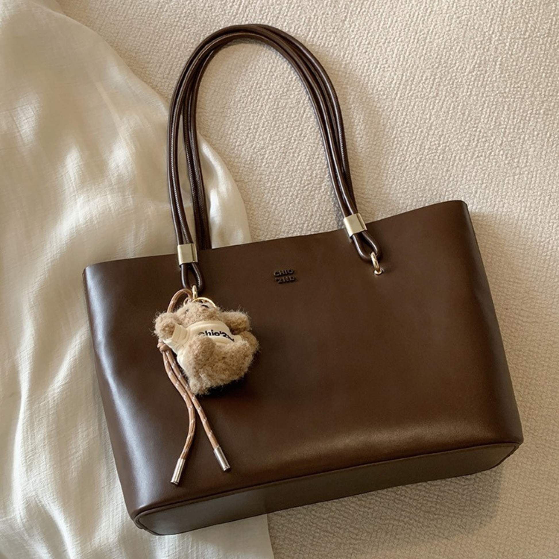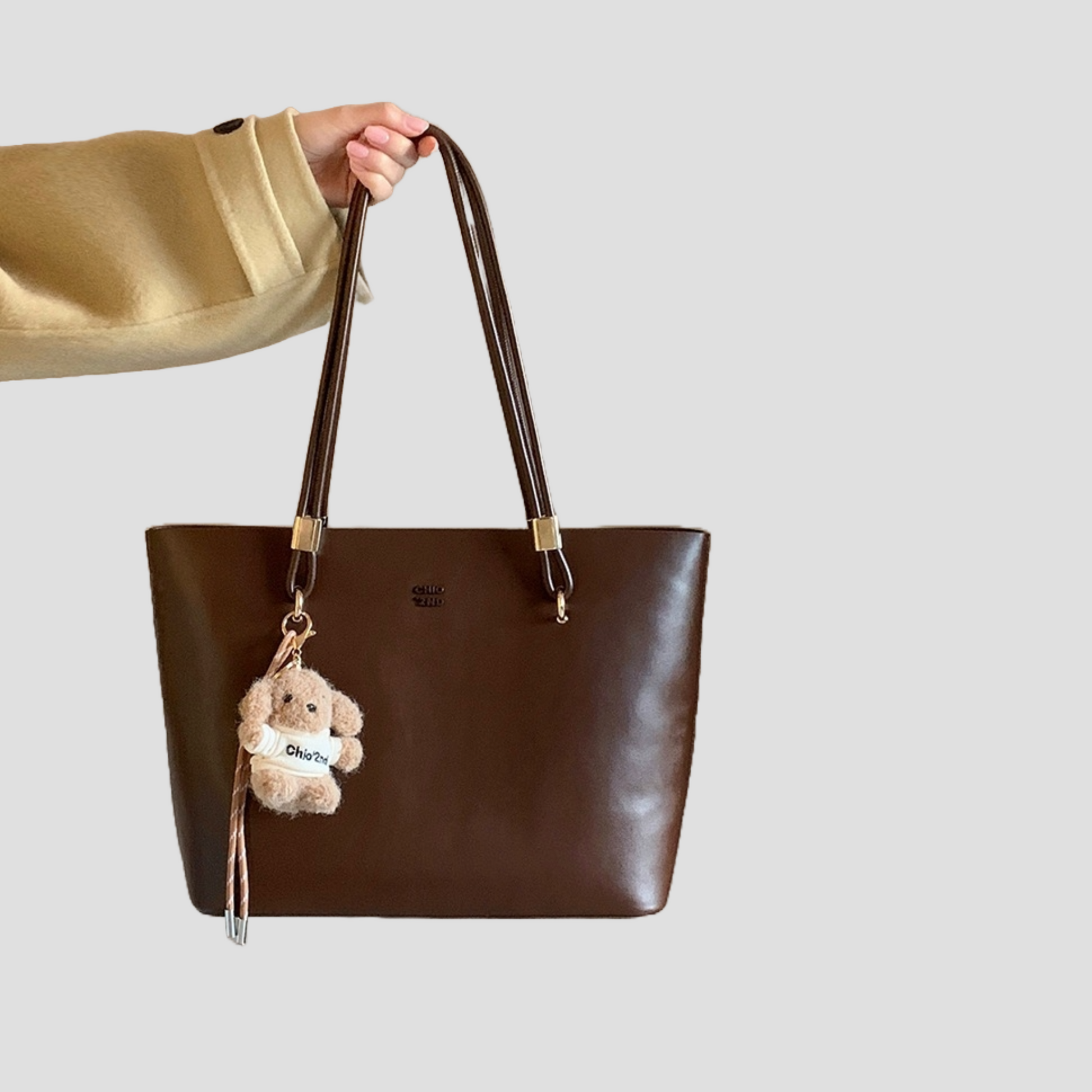 Túi Xách Nữ Bigsize Da Trơn Phối Charm Gấu