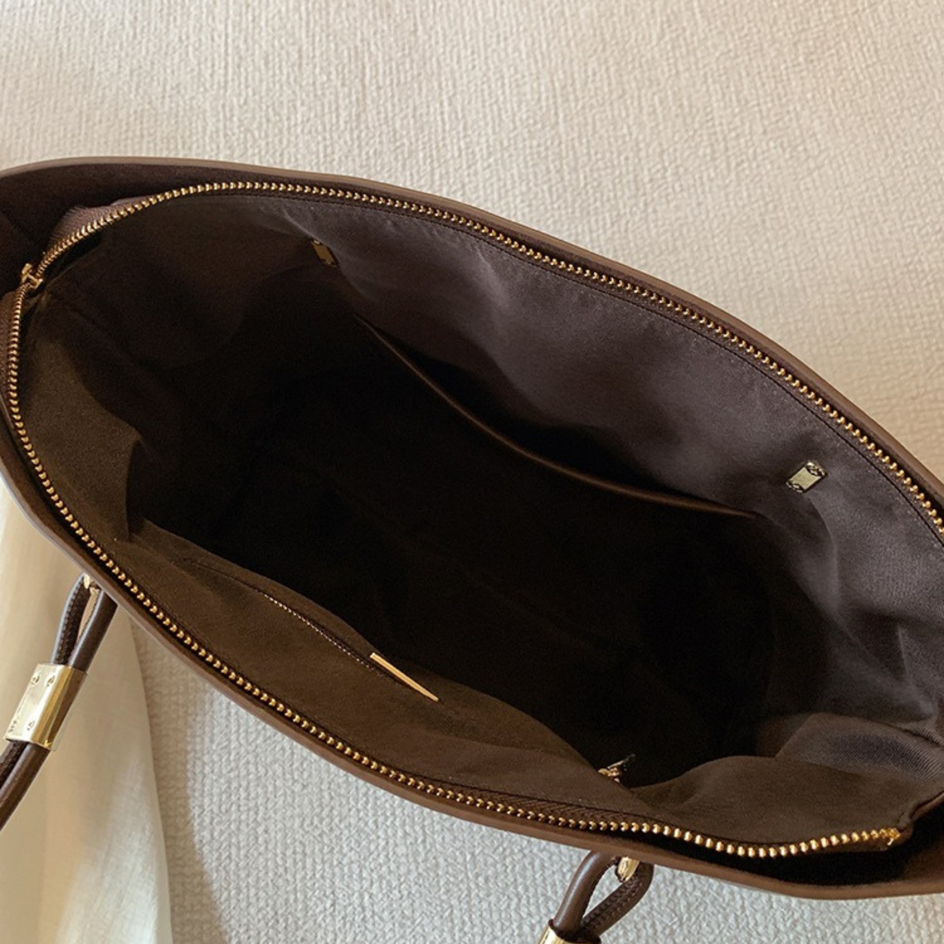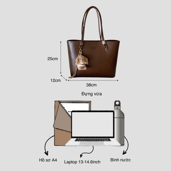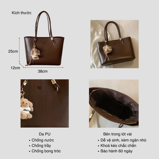Chiếc túi xách bigsize với thiết kế đứng form, màu nâu trơn mang phong cách vintage đơn giản. Quai đeo linh hoạt bạn có thể đeo theo hai kiểu: đeo vai hoặc cầm tay tuỳ thích.