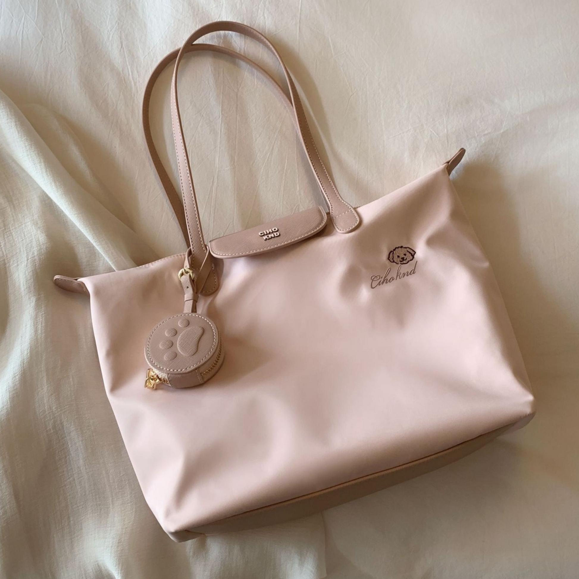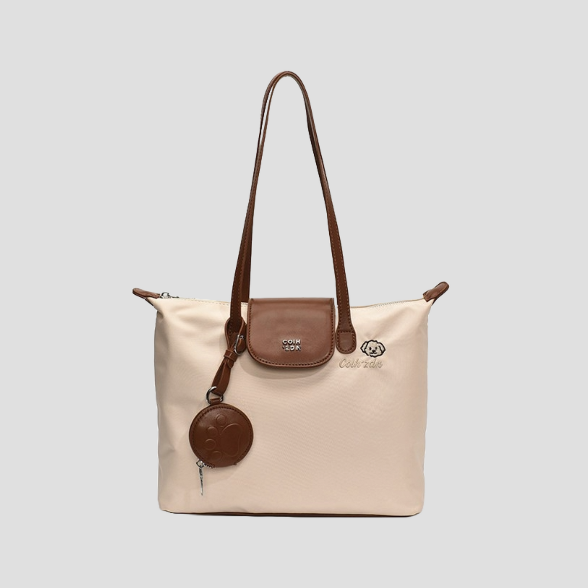 Chiếc túi xách vải dù kiểu dáng bigsize phối nắp gập da đơn giản mà vẫn thanh lịch. Có thể tùy ý sử dụng theo hai cách: đeo vai hoặc xách tay tuỳ ý. Túi có khoá kéo chắc chắn, đi kèm thêm một chiếc ví tròn tiện lợi. Không gian rộng rãi đủ để chứa nhiều đồ dùng cần thiết hàng ngày như tập hồ sơ A4, iPad, sổ tay, điện thoại, bóp ví, đồ trang điểm...