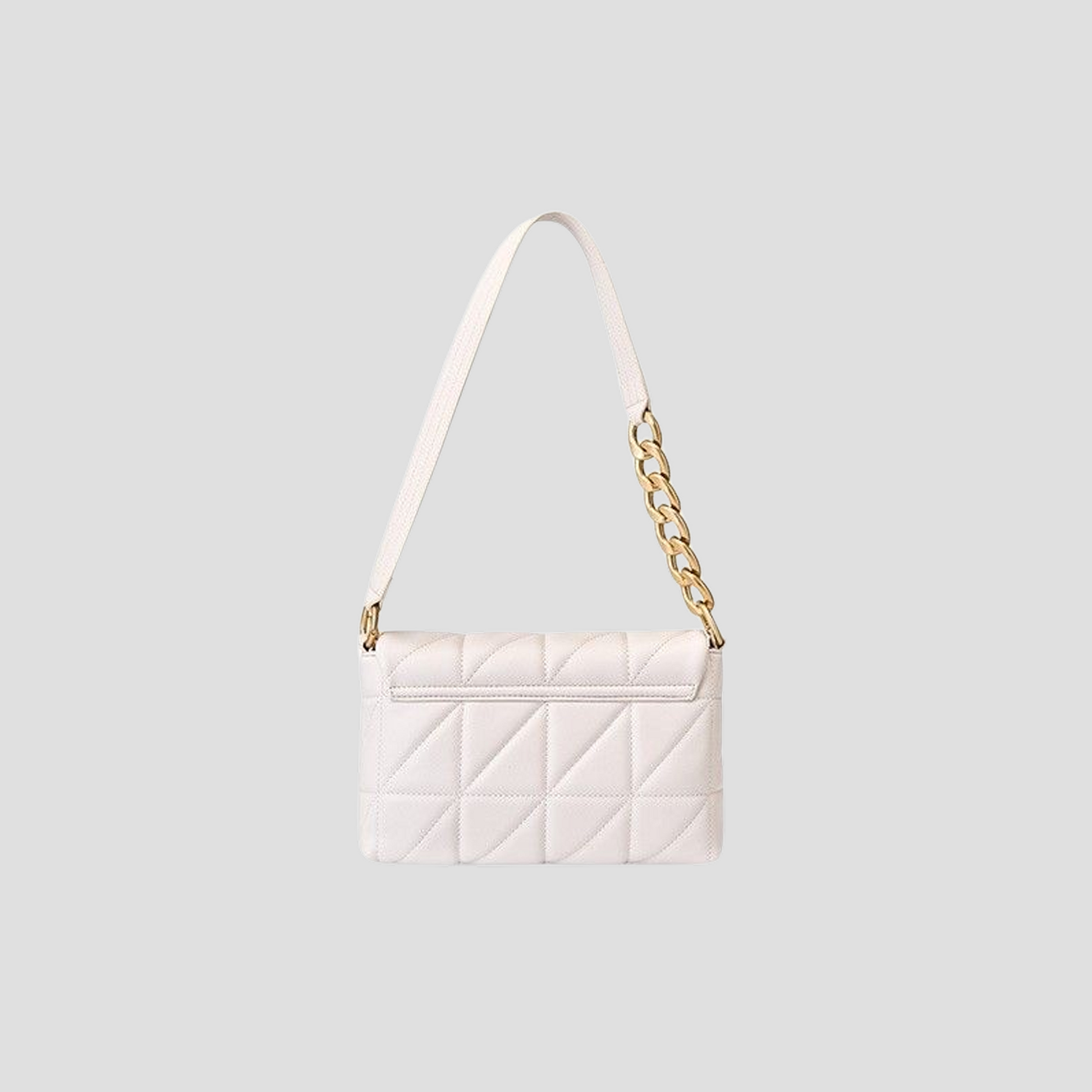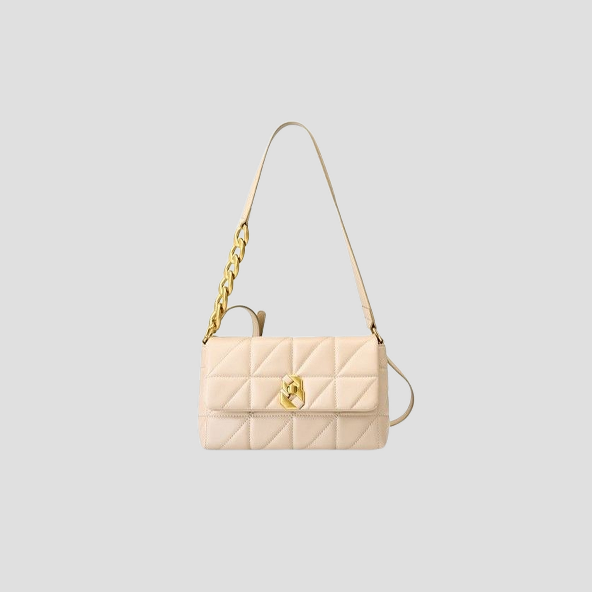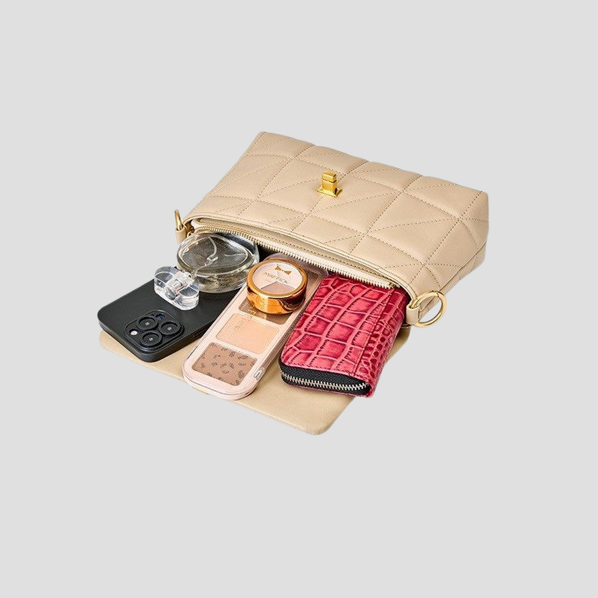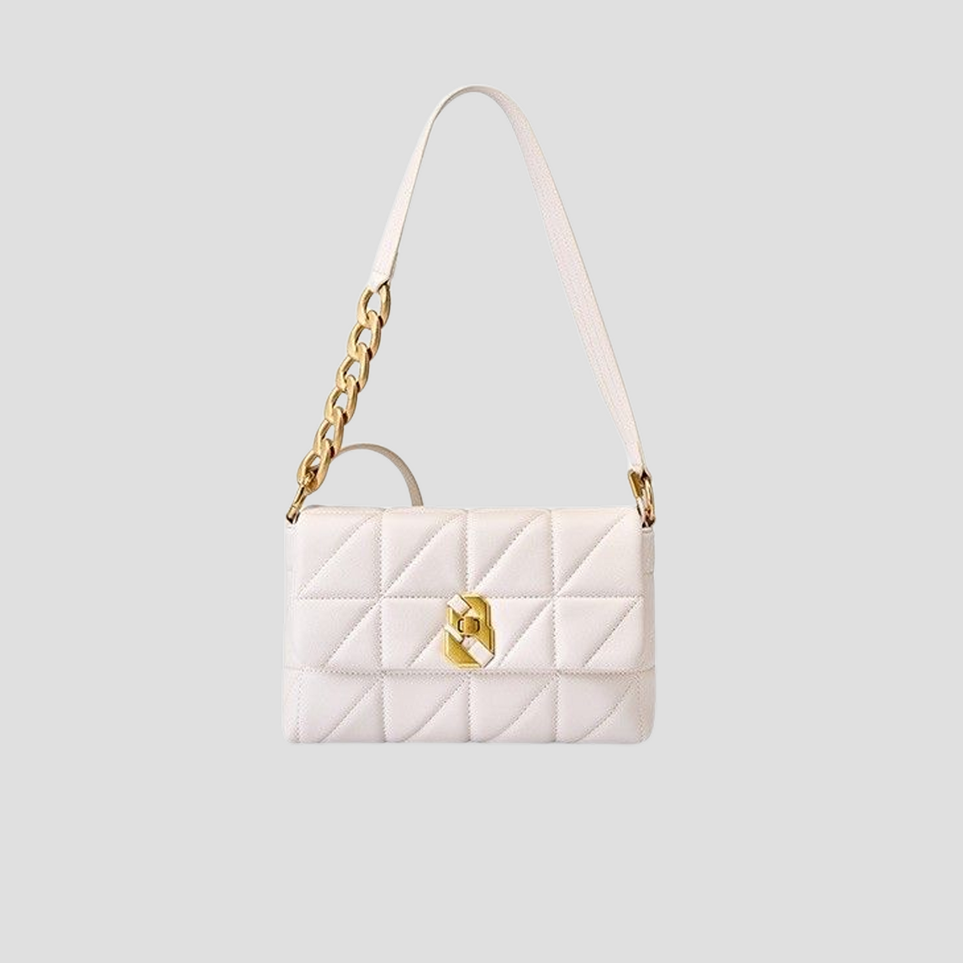 Chiếc túi xách da kiểu vân chéo kết hợp mặt khoá kim loại sang trọng và không kém phần tinh tế. Dây đeo có thể thay đổi độ dài để dùng được ba kiểu: xách tay, đeo vai hoặc đeo chéo tuỳ ý. Không gian bên trong túi đựng được những đồ dùng cá nhân như điện thoại, bóp ví, mắt kính, đồ trang điểm,... Màu sắc trẻ trung dễ mix với mọi set đồ mỗi khi đi làm hay dạo phố.