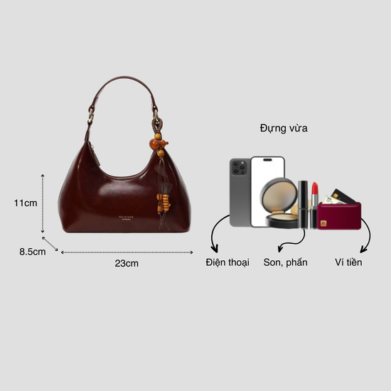 Túi Xách Nữ Da Bóng Retro Phối Charm Hạt