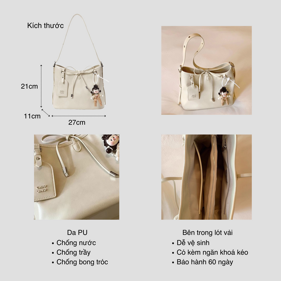 Không gian bên trong túi đựng được những đồ dùng cá nhân như sổ tay, điện thoại, ví tiền, đồ trang điểm...Túi có kèm ngăn khoá kéo riêng. Giúp bạn luôn tự tin khi ra ngoài, phù hợp cho những dịp đi cà phê hay dạo phố. Màu sắc trẻ trung và dễ dàng phối cùng mọi set đồ. Đây sẽ là một item không thể thiếu trong bộ sưu tập phụ kiện của những ai yêu thích thời trang.