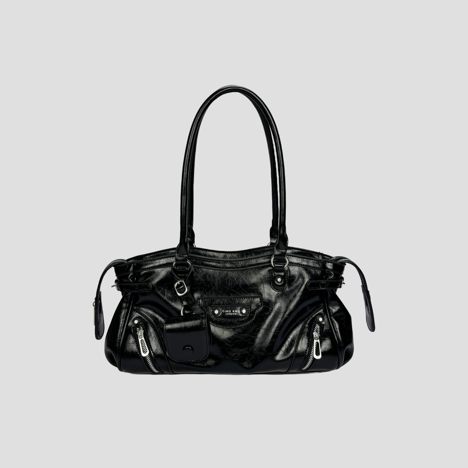 Chiếc túi xách da trơn bóng form hình chữ nhật đem đến nét thời trang cá tính, phối thêm charm hình chiếc túi nhỏ mini lạ mắt. Quai đeo bạn có thể sử dụng hai kiểu: cầm tay hoặc đeo vai tuỳ thích.