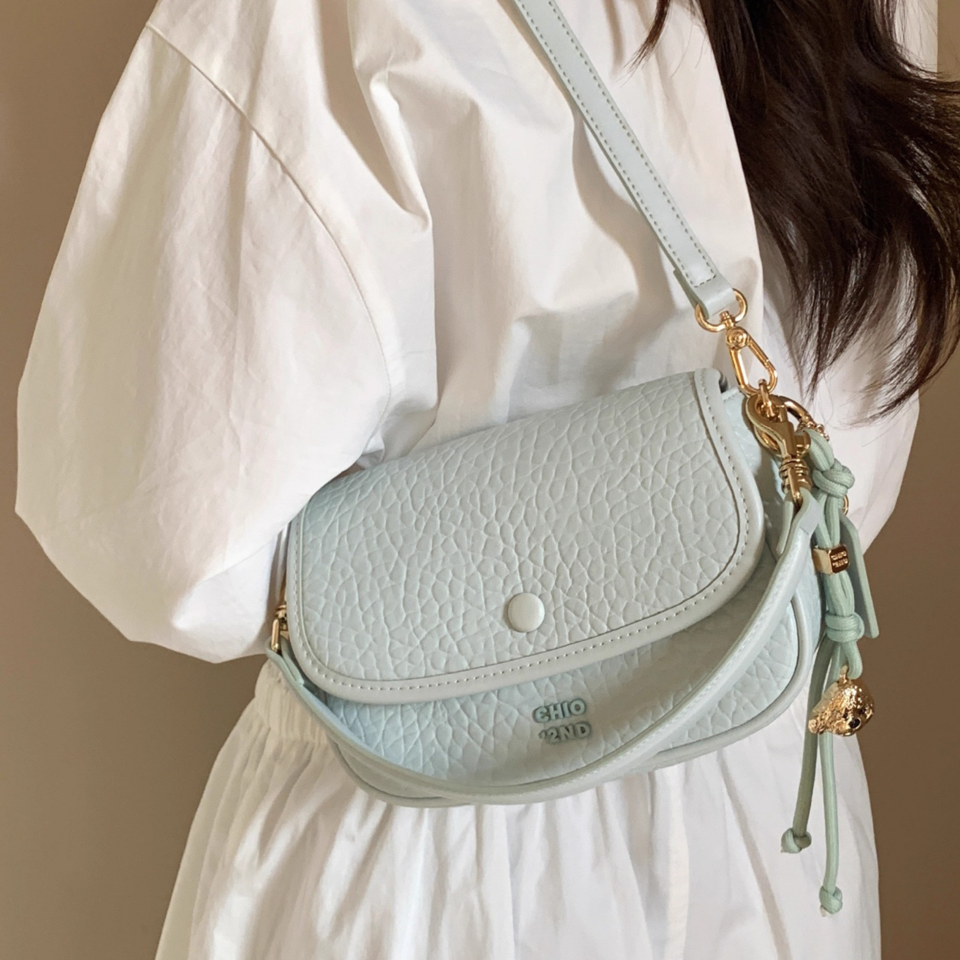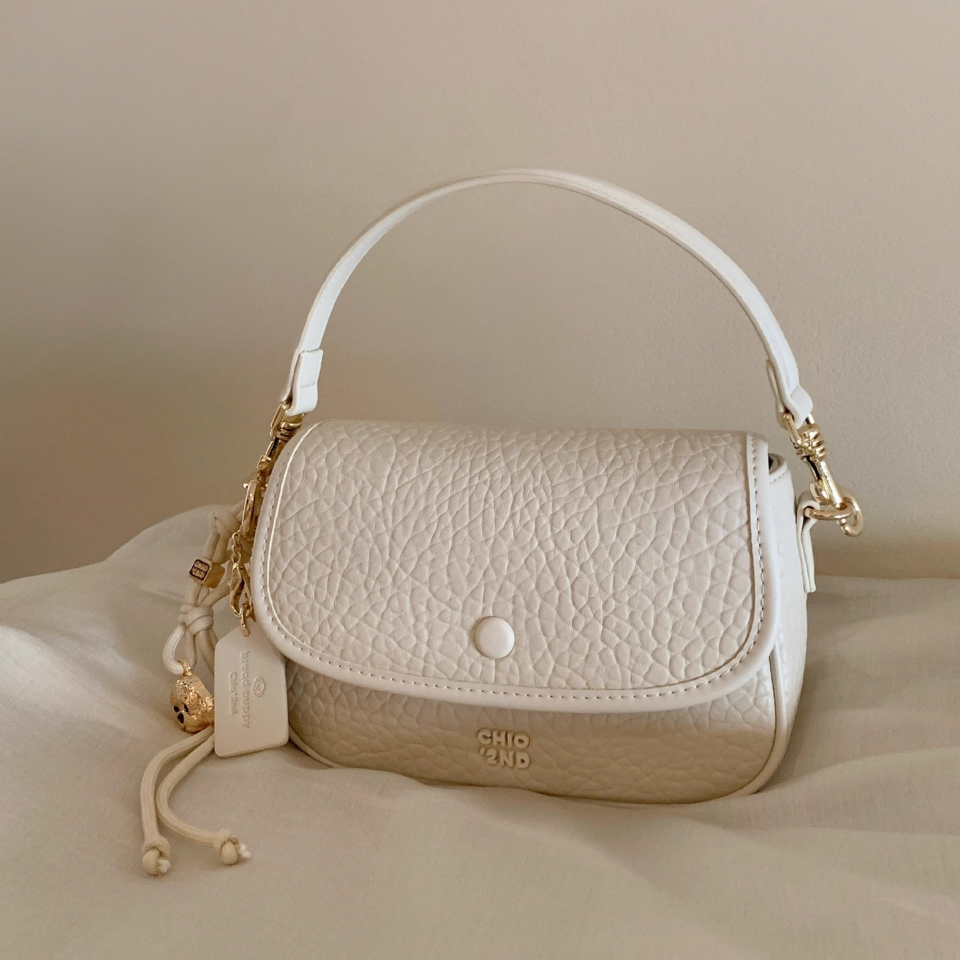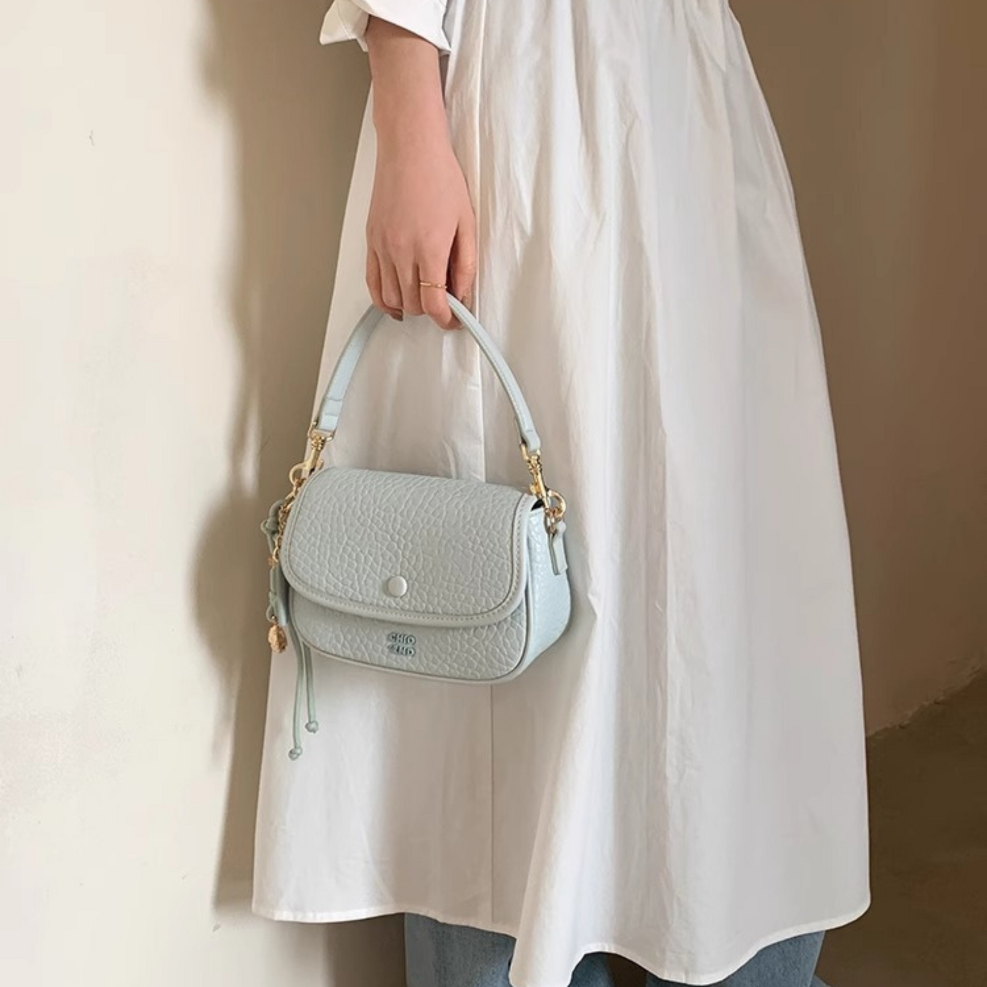 Chiếc túi xách kiểu da hạt phối charm đơn giản nhưng cũng không kém phần thanh lịch. Điểm nổi bật của túi là dây đeo linh hoạt, bạn có thể sử dụng ba kiểu: cầm tay, đeo vai hoặc đeo chéo tuỳ thích.