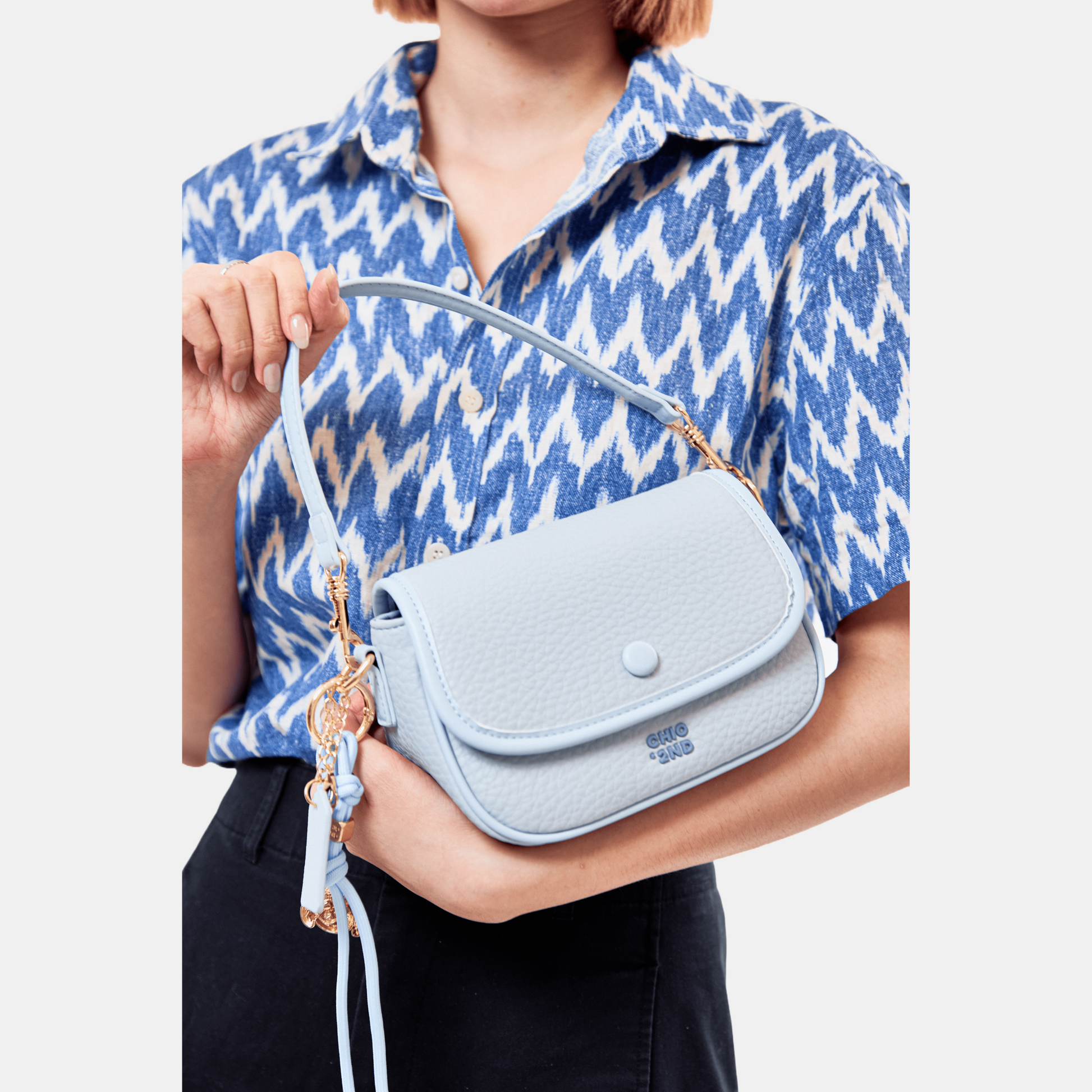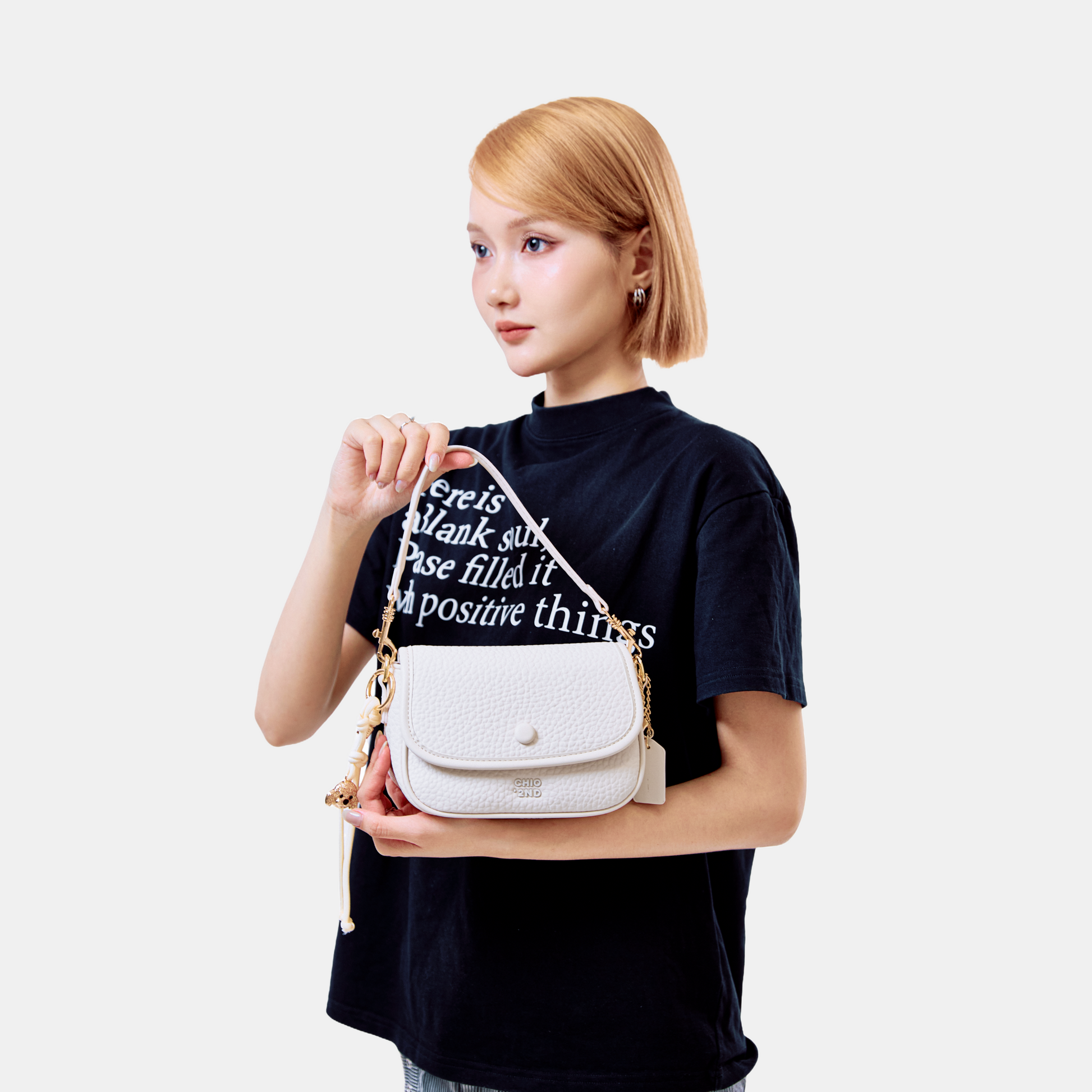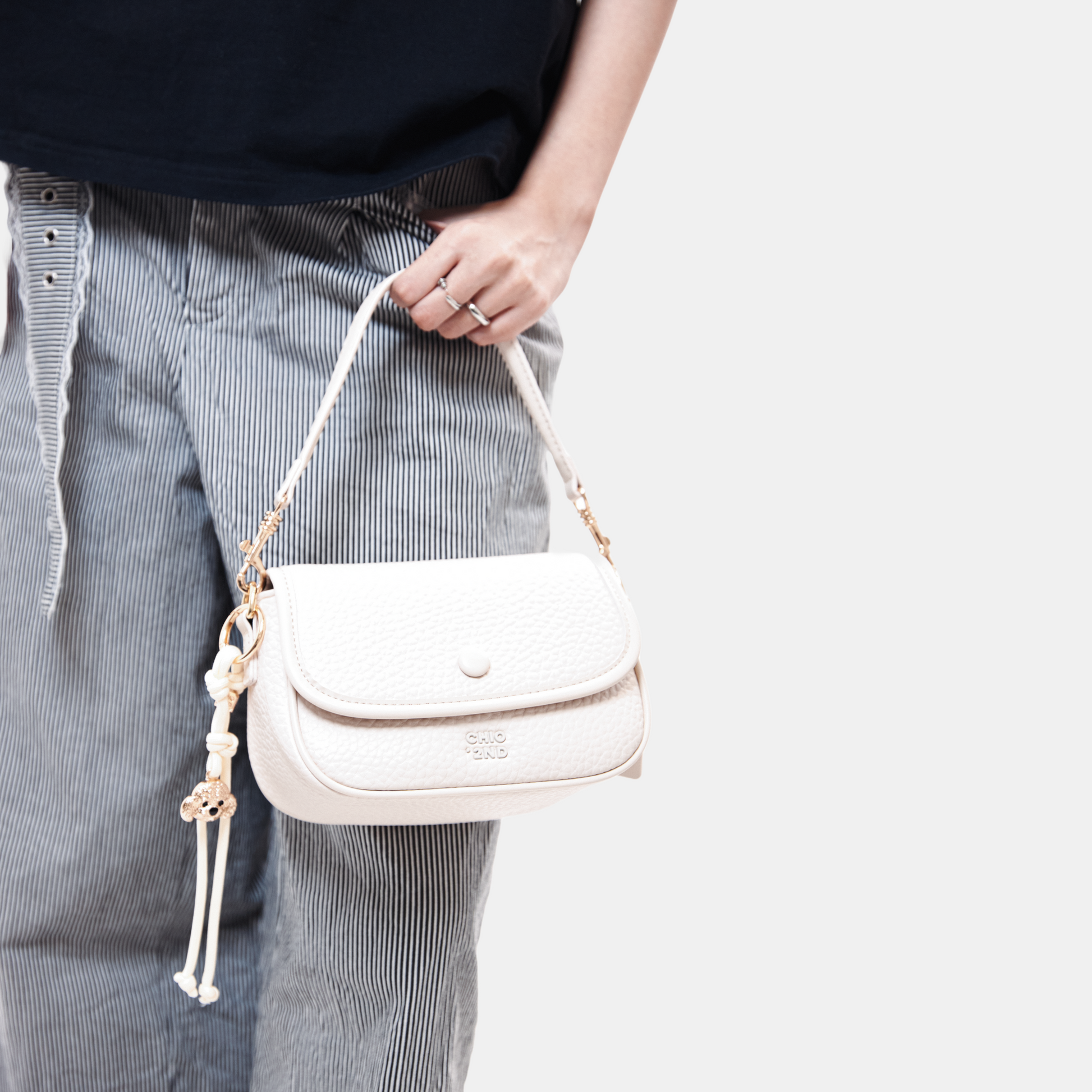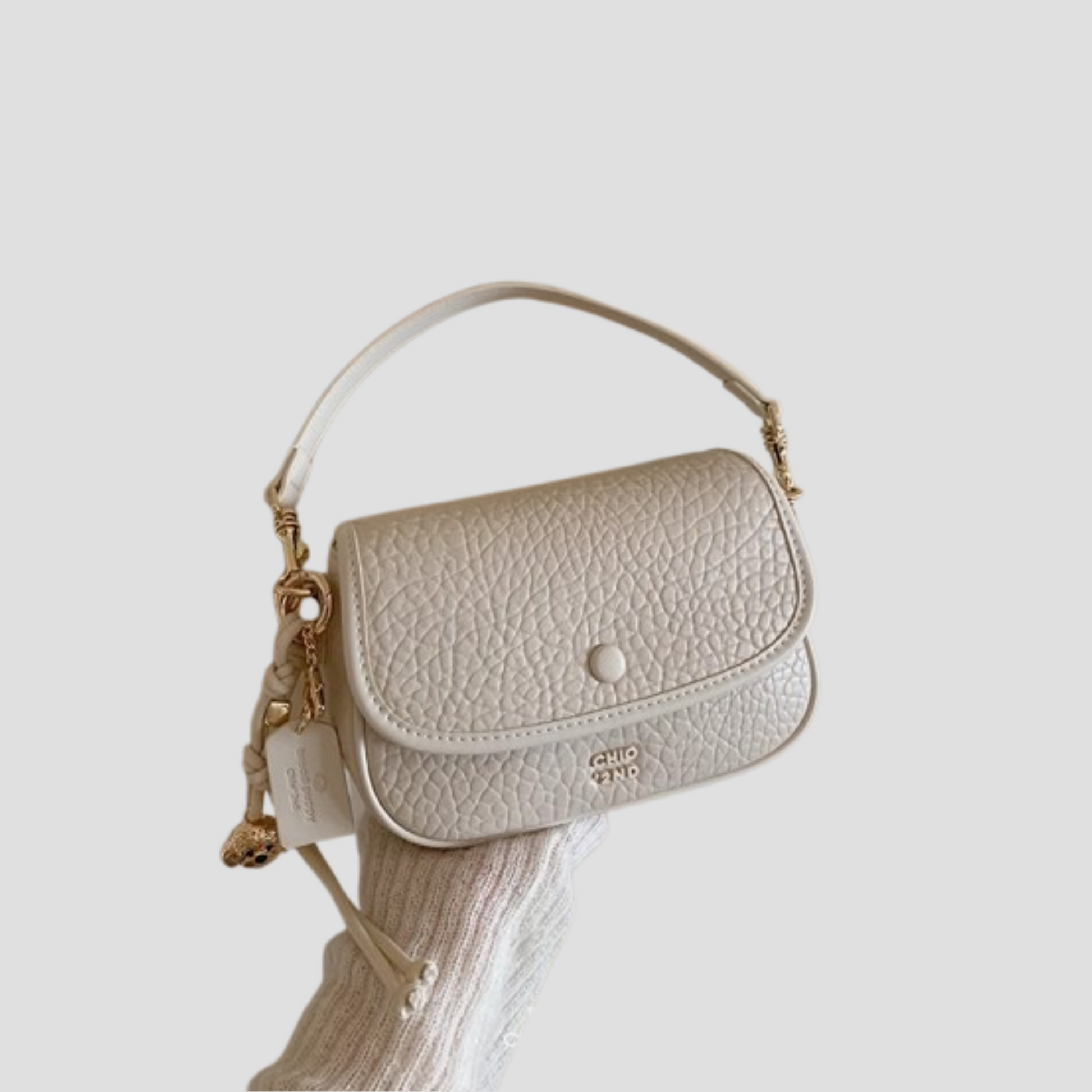 Chiếc túi xách kiểu da hạt phối charm đơn giản nhưng cũng không kém phần thanh lịch. Điểm nổi bật của túi là dây đeo linh hoạt, bạn có thể sử dụng ba kiểu: cầm tay, đeo vai hoặc đeo chéo tuỳ thích.