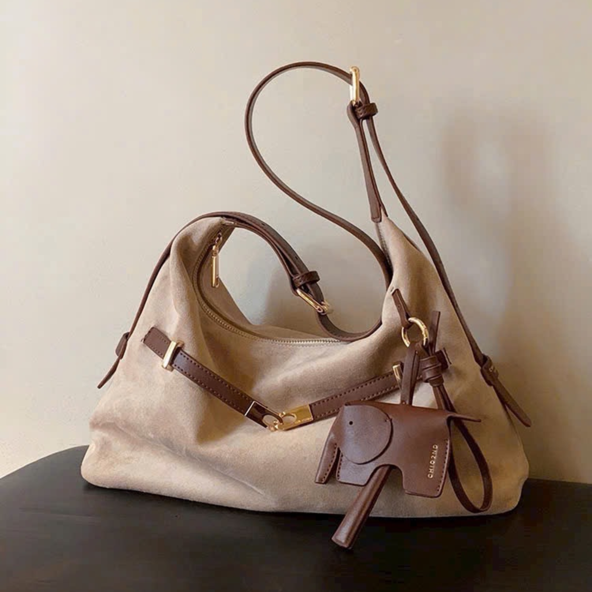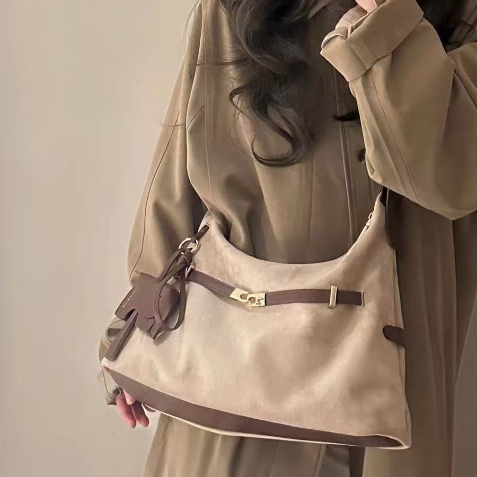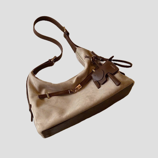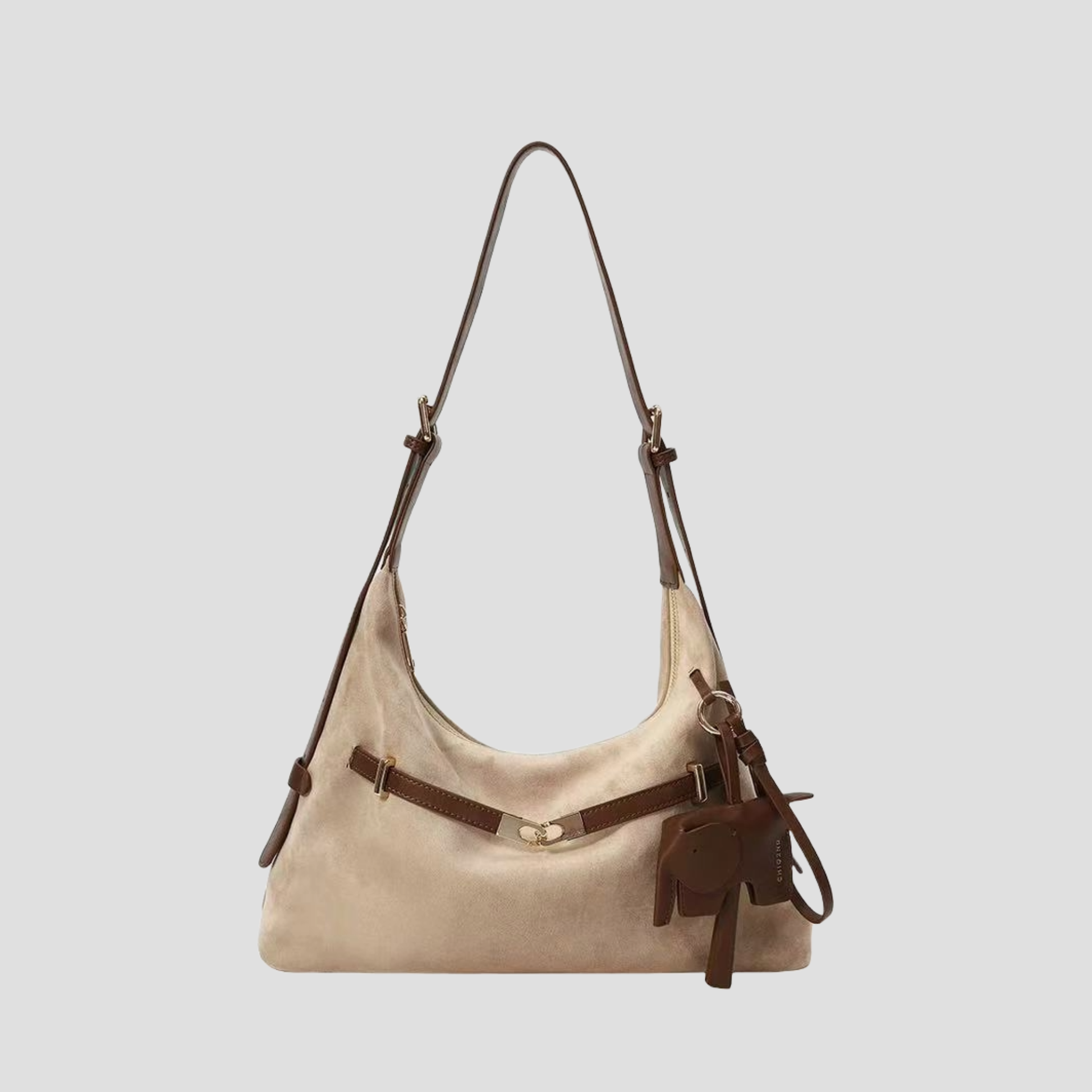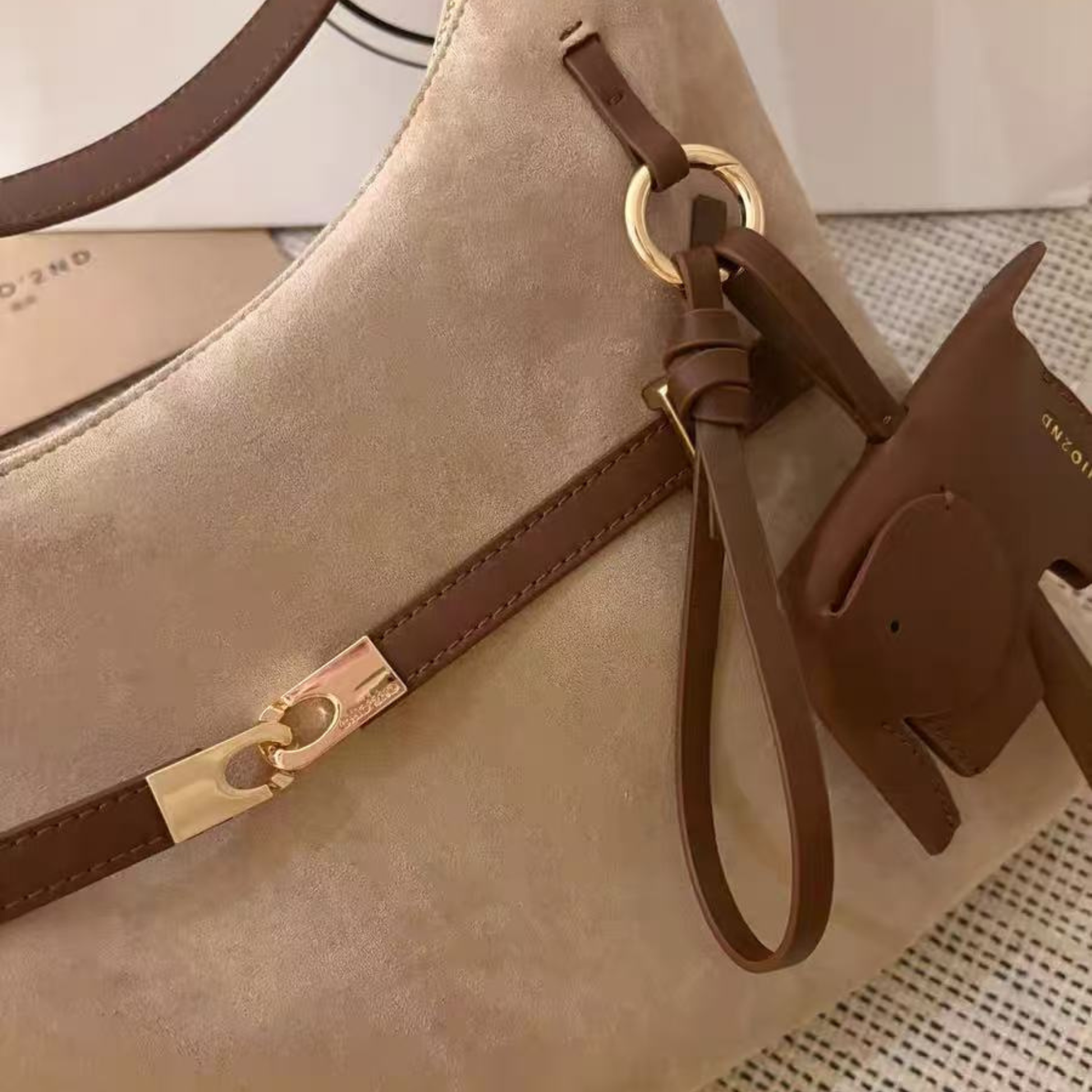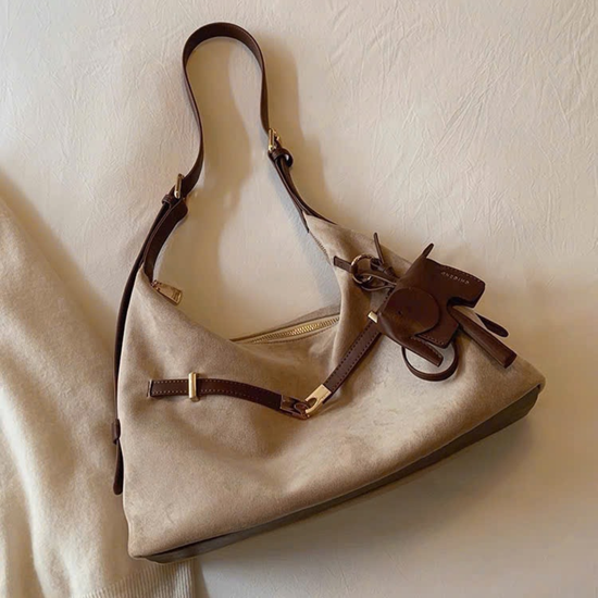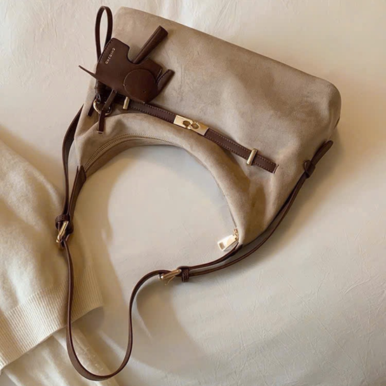 Túi Xách Nữ Da Lộn Phối Đai Kèm Charm