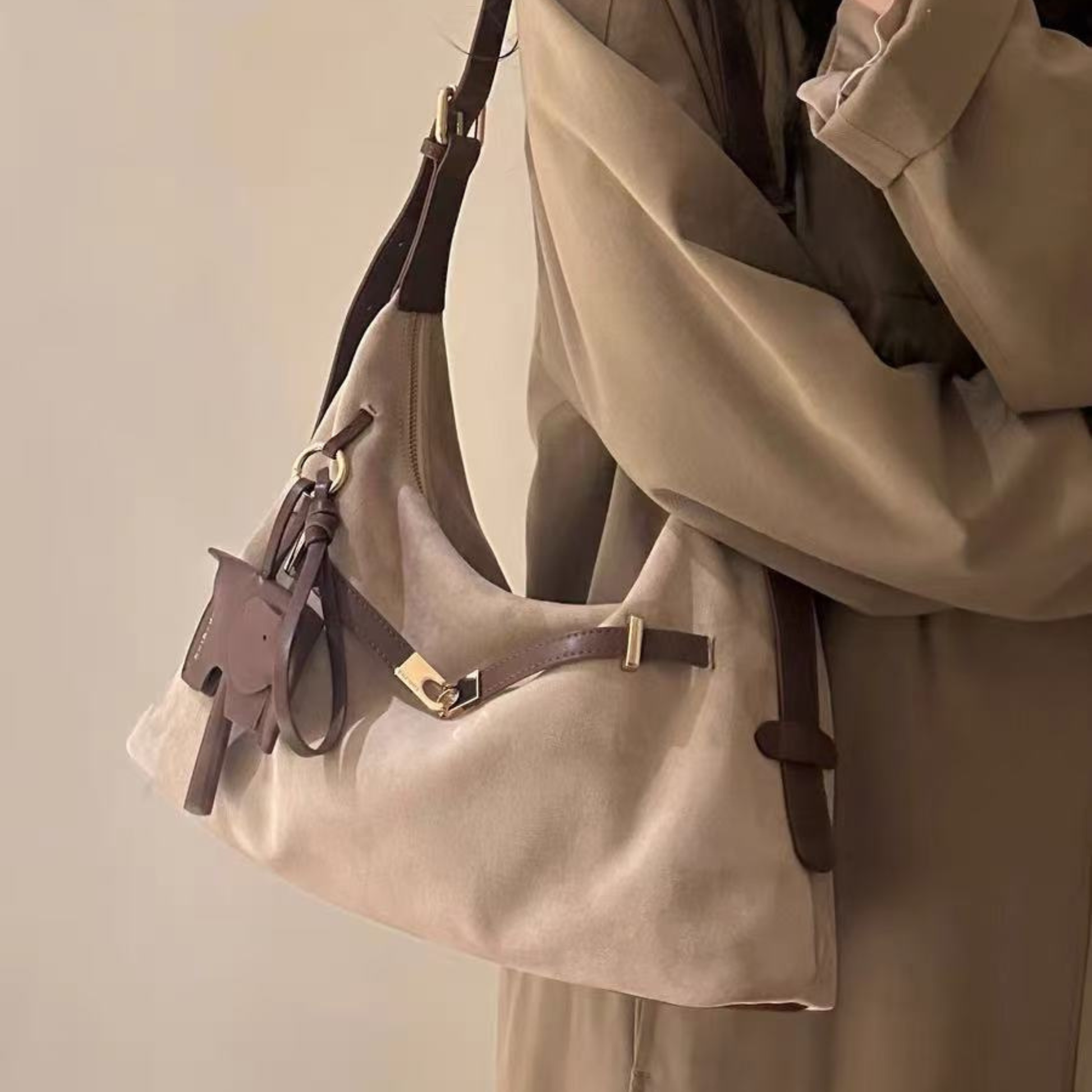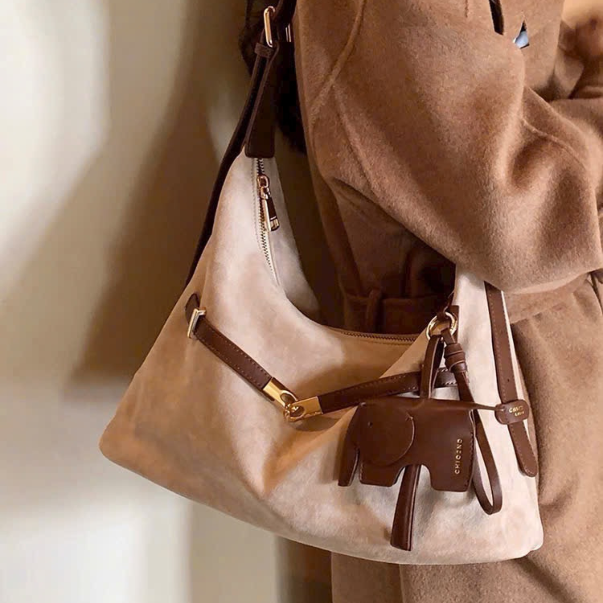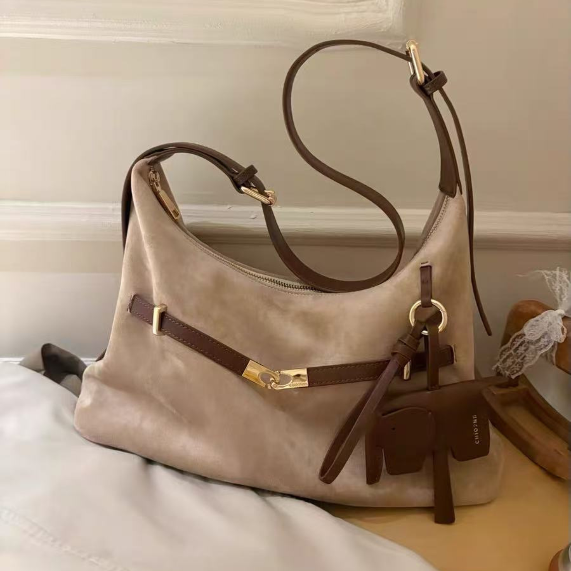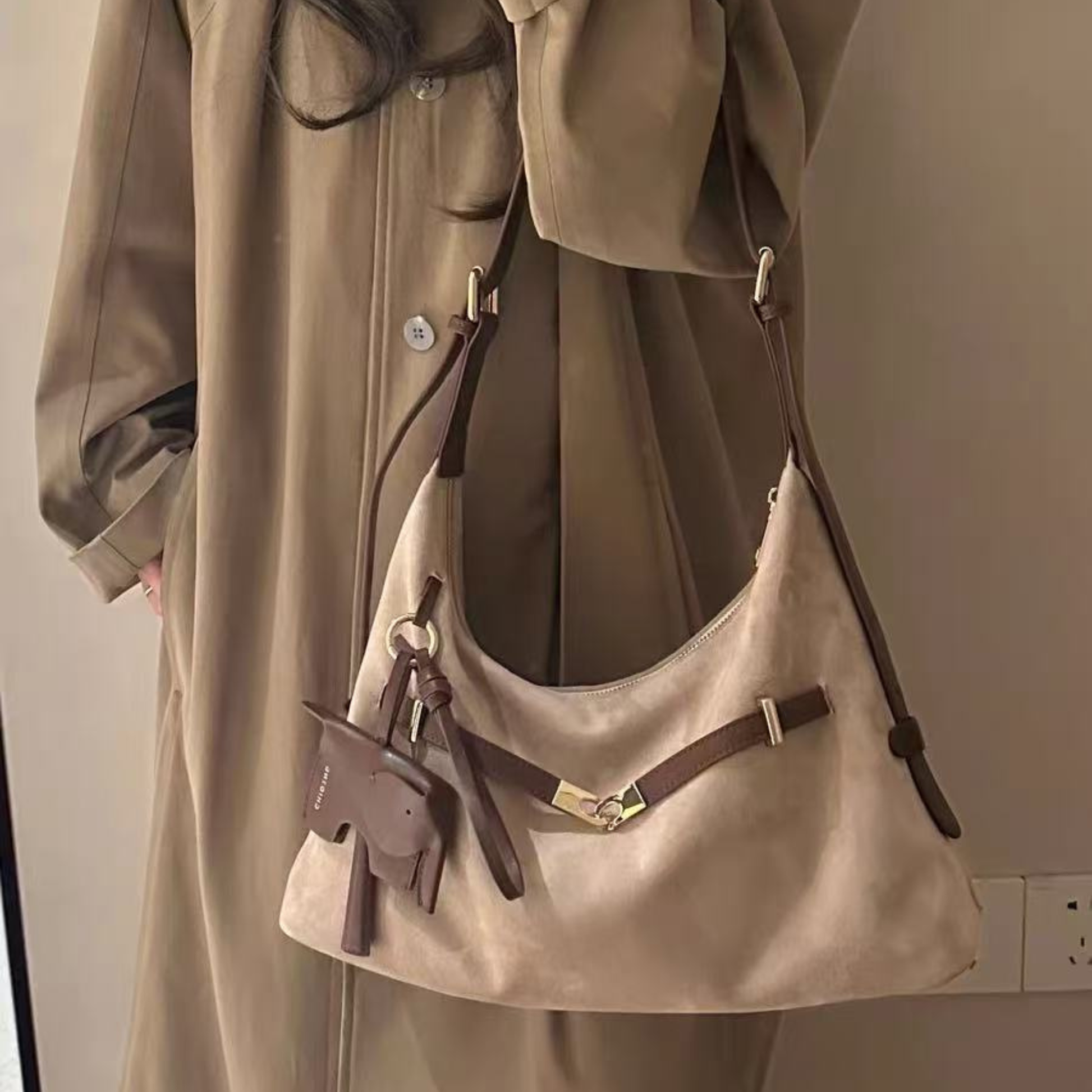 Túi Xách Nữ Da Lộn Phối Đai Kèm Charm