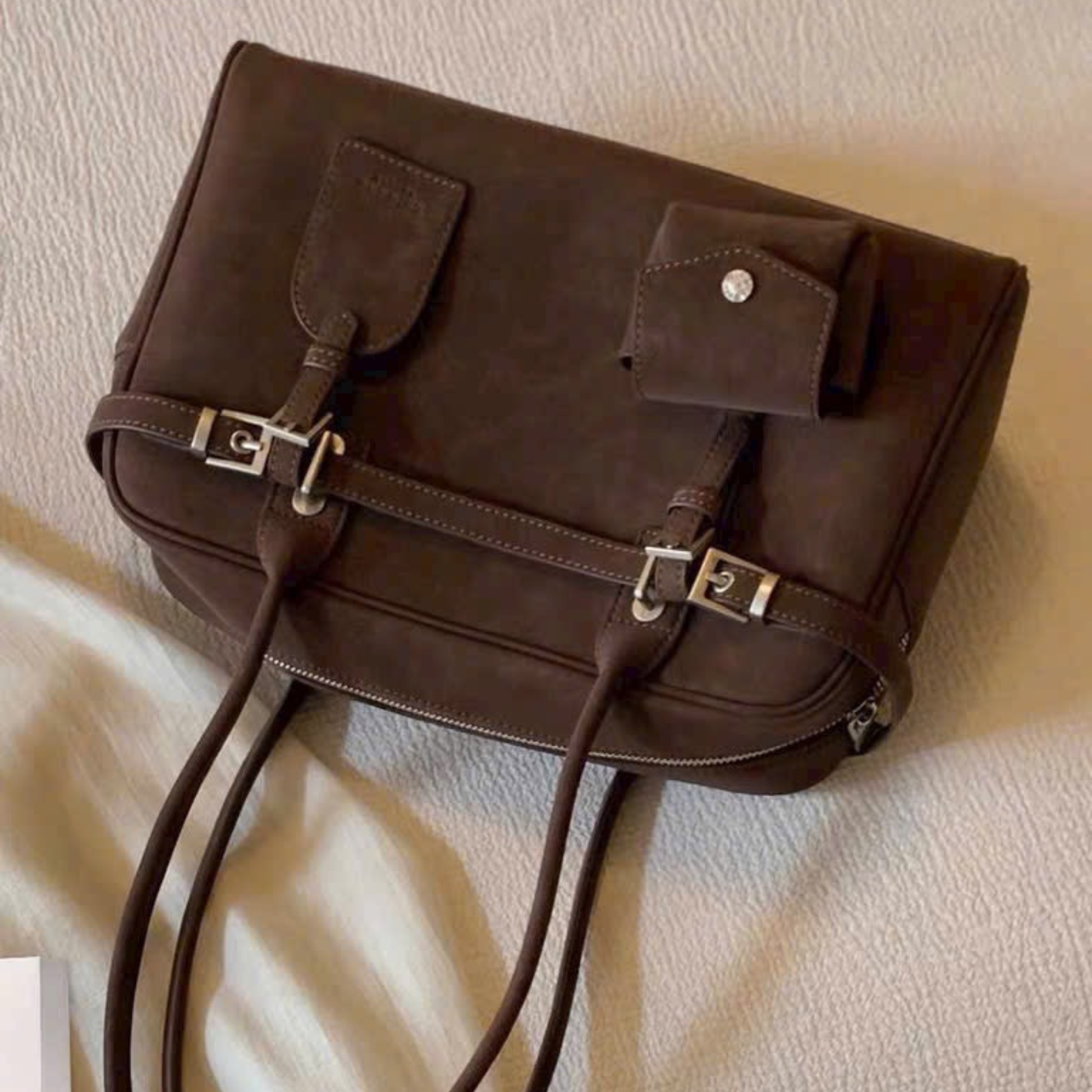Túi Xách Nữ Da Lộn Phối Đai Kèm Ví Nhỏ