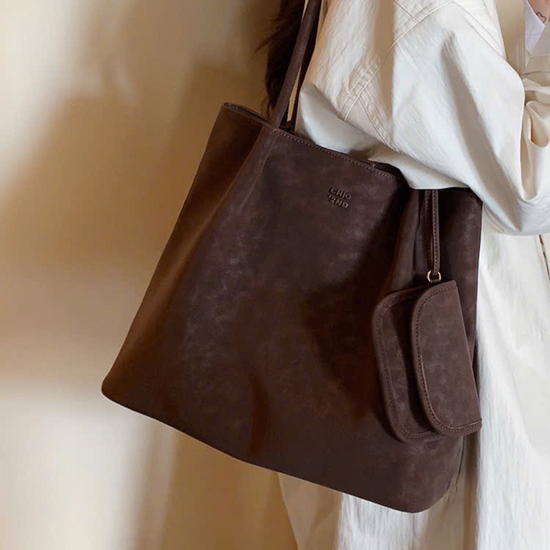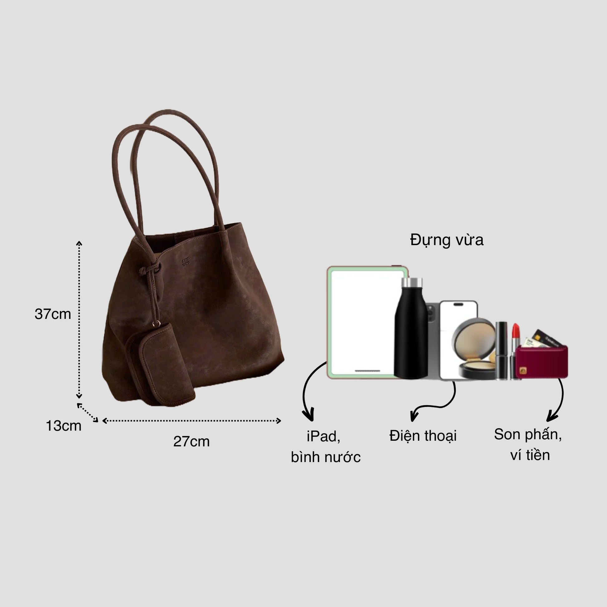 Túi Xách Nữ Da Lộn Quai Nhún Phối Ví Nhỏ