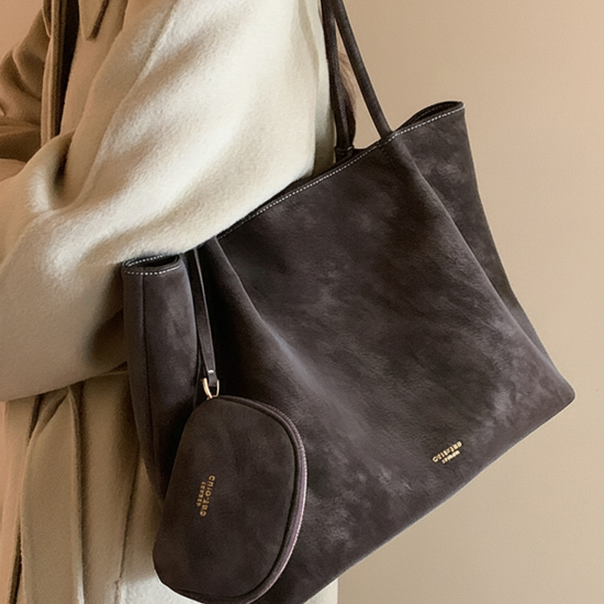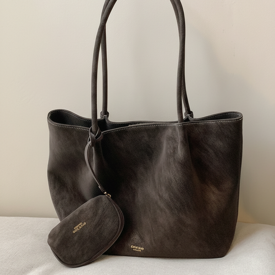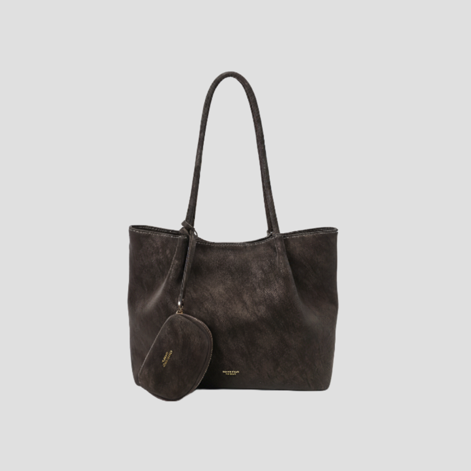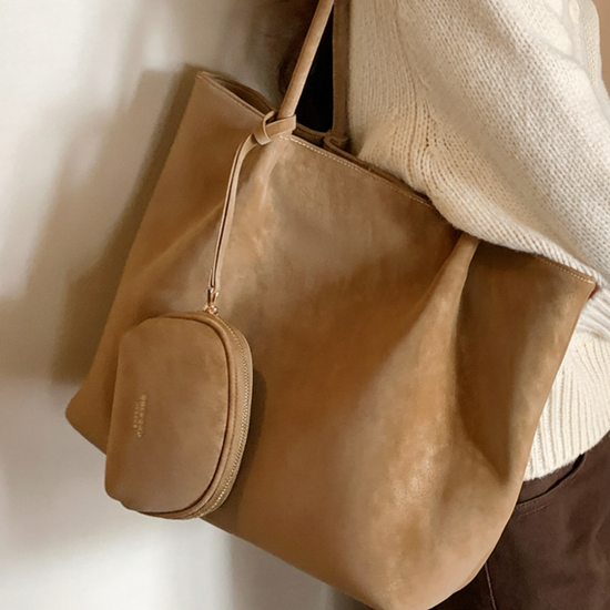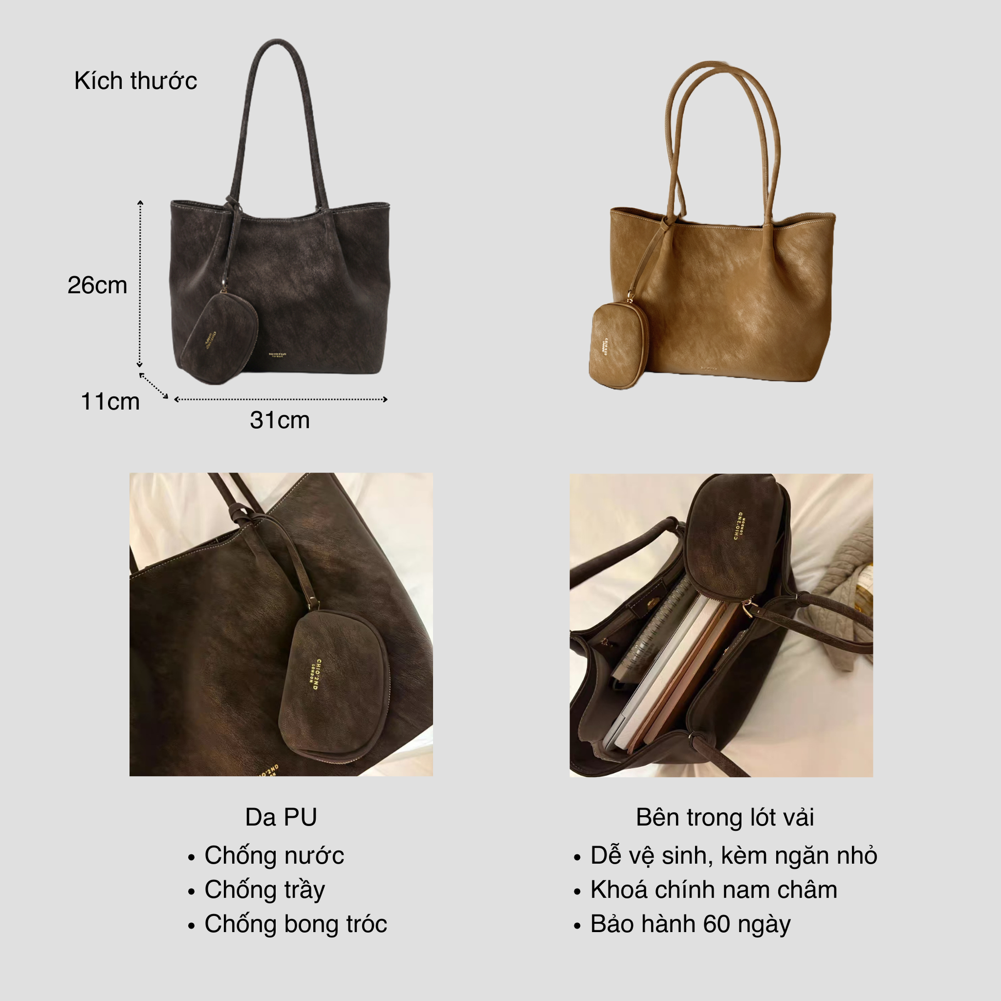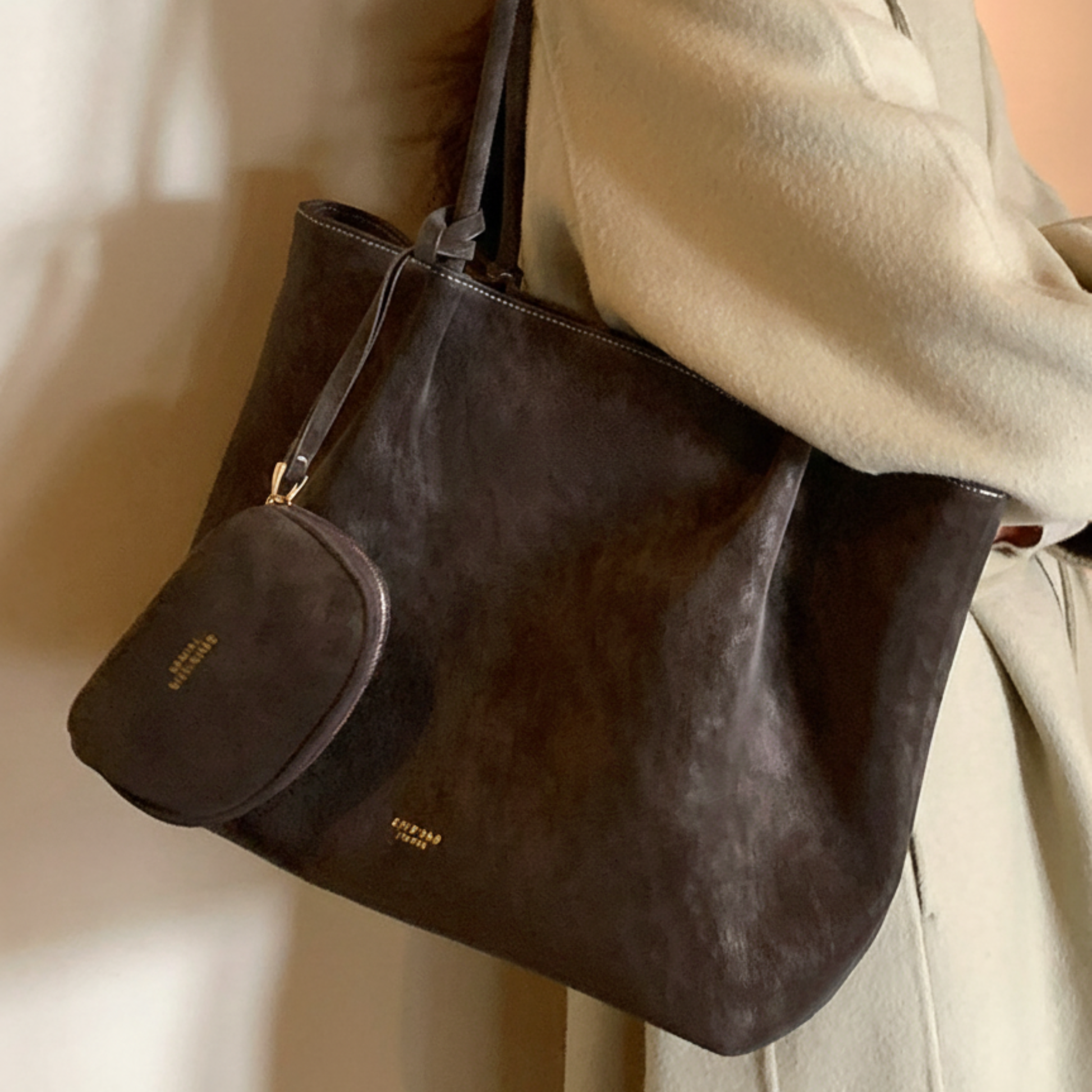 Túi Xách Nữ Da Lộn Quai Nhún Phối Ví Tròn