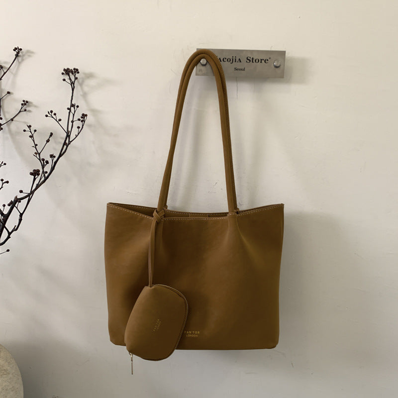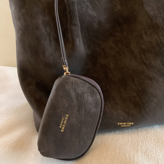 Chiếc túi xách da lộn trơn phối ví tròn đơn giản nhưng cũng không kém phần vintage. Quai đeo bạn có thể sử dụng hai kiểu: cầm tay hoặc đeo vai tuỳ thích.