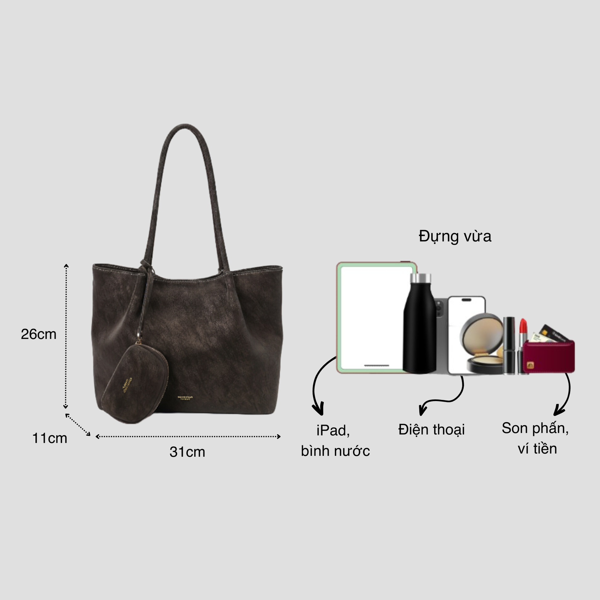 Không gian bên trong túi rộng rãi đựng được những đồ dùng cá nhân như iPad, sổ tay, điện thoại, ví tiền, bình nước, đồ trang điểm... Giúp bạn luôn tự tin khi ra ngoài, phù hợp cho những dịp đi làm hay dạo phố. Màu sắc trẻ trung và dễ dàng phối cùng mọi set đồ. Đây sẽ là một item không thể thiếu trong bộ sưu tập phụ kiện của những ai yêu thích thời trang.
