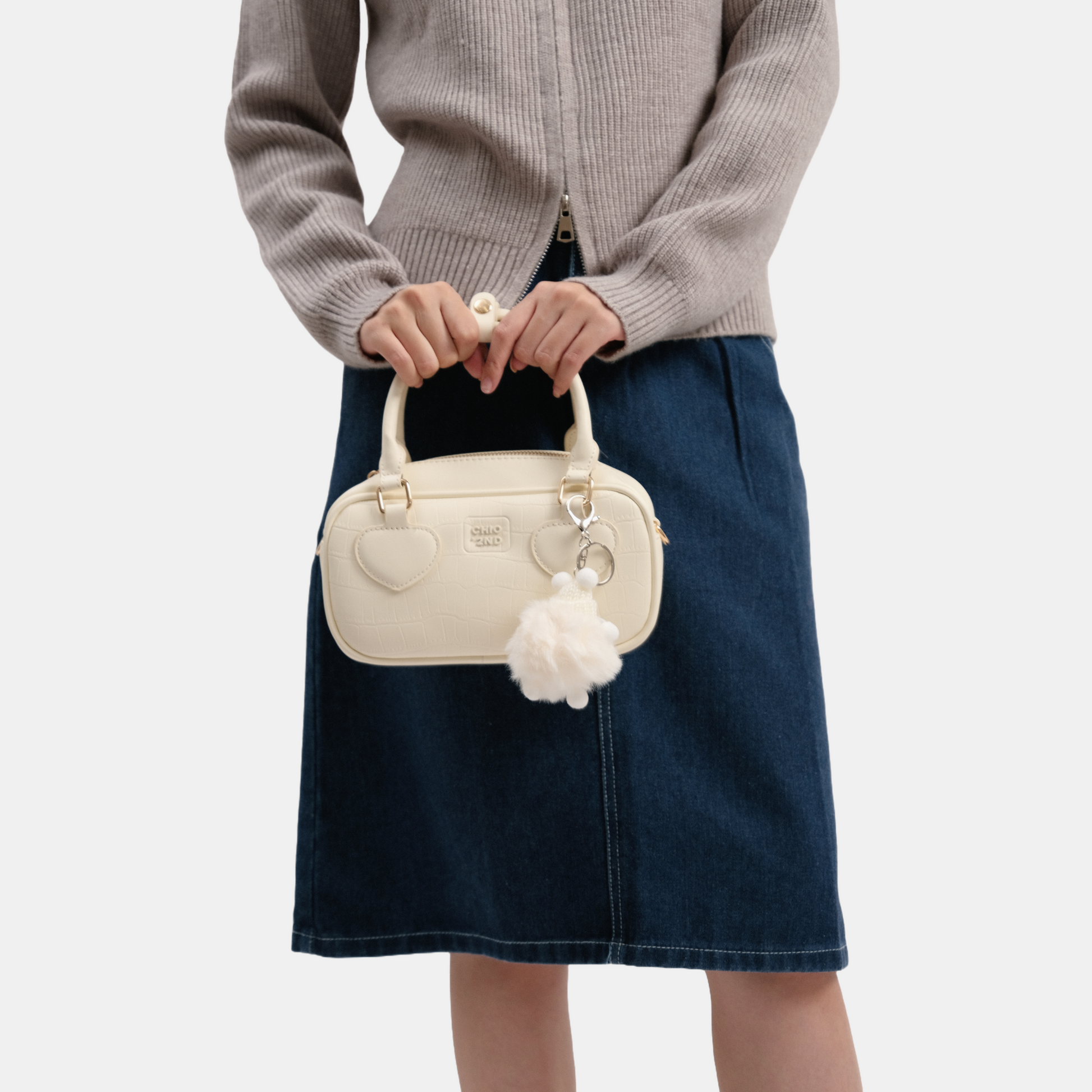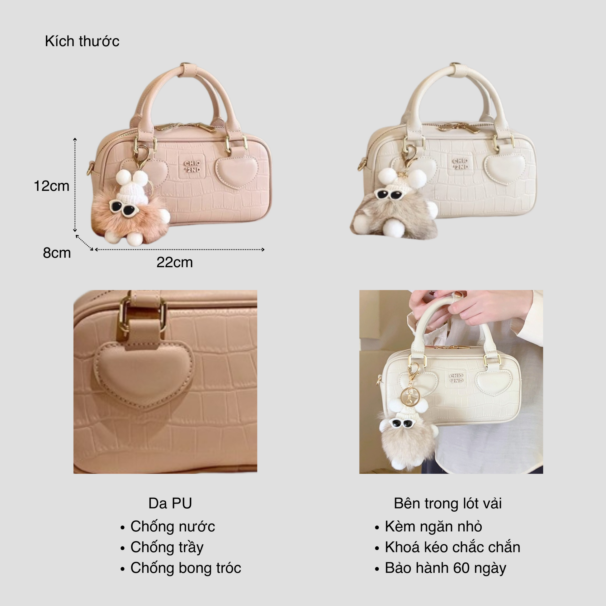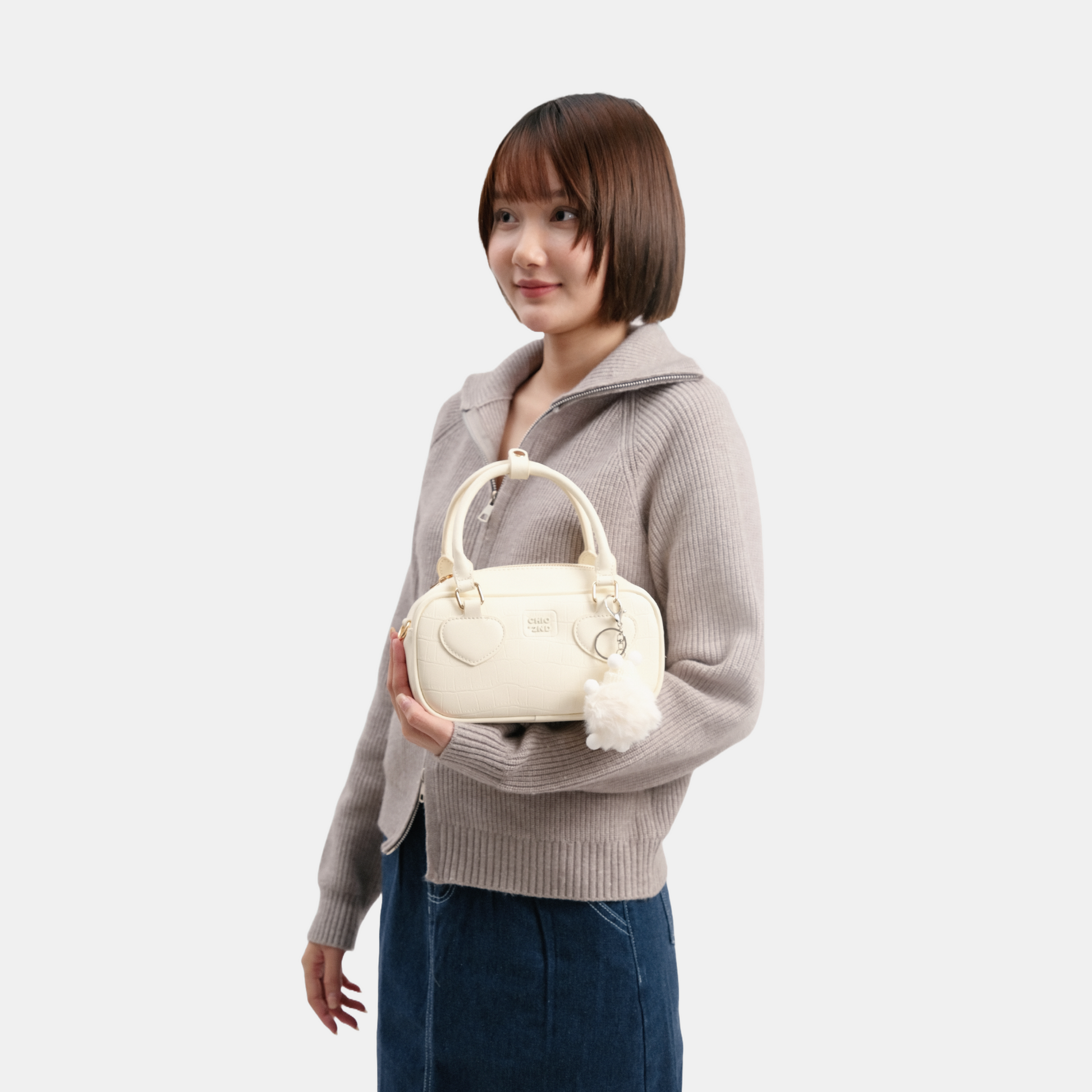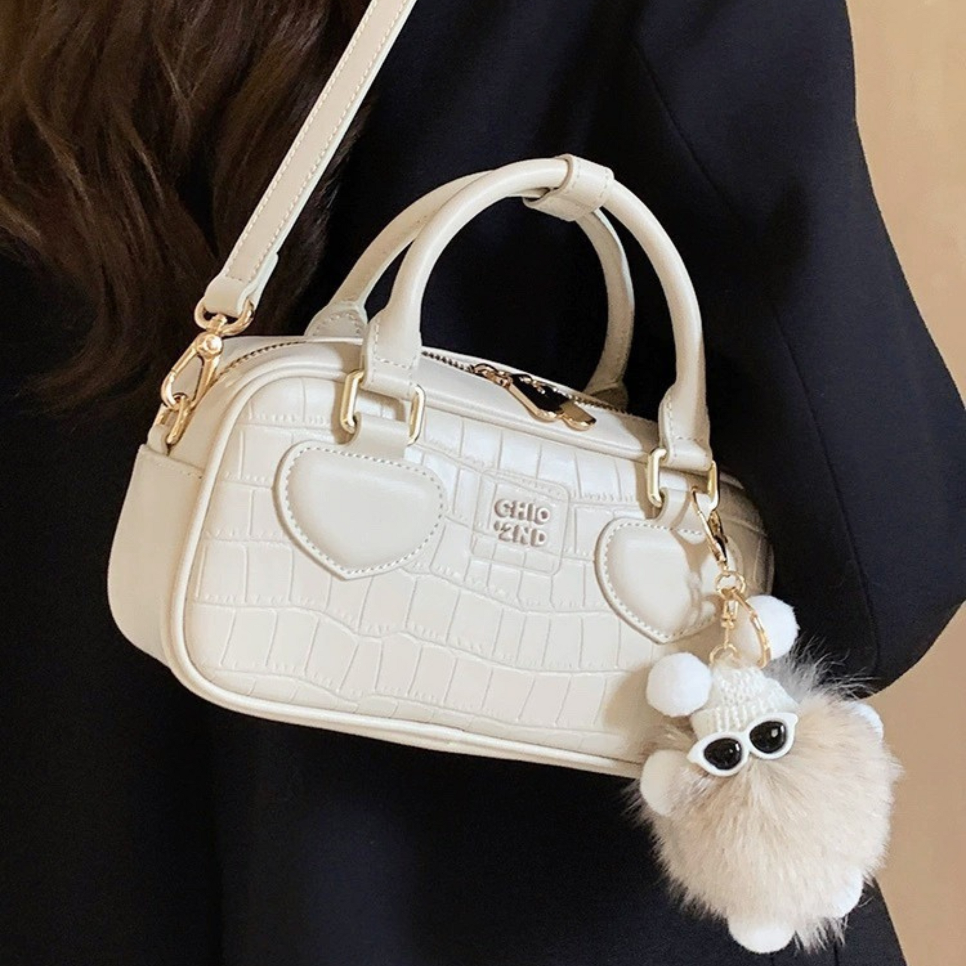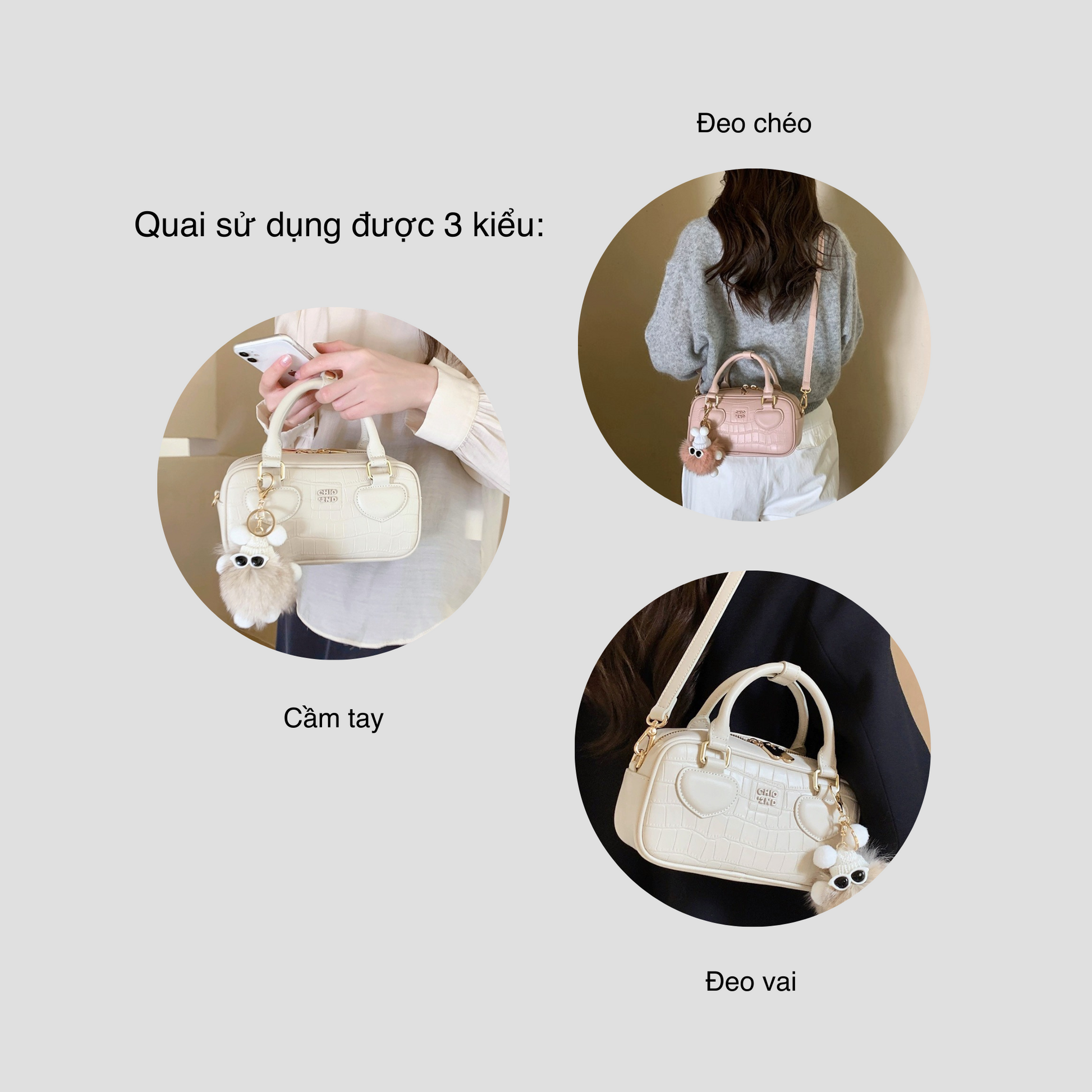 Túi Xách Nữ Da Vân Trái Tim Phối Charm