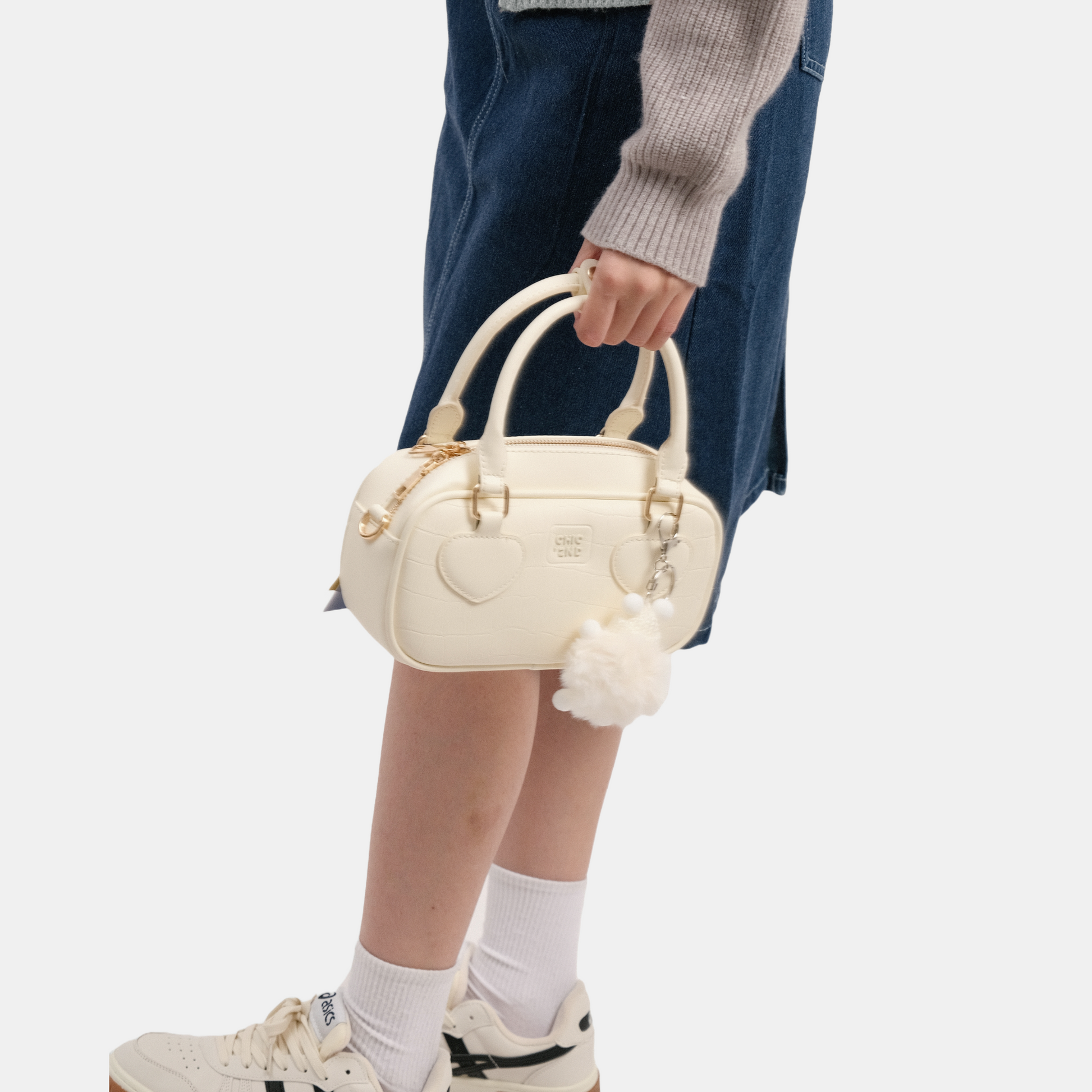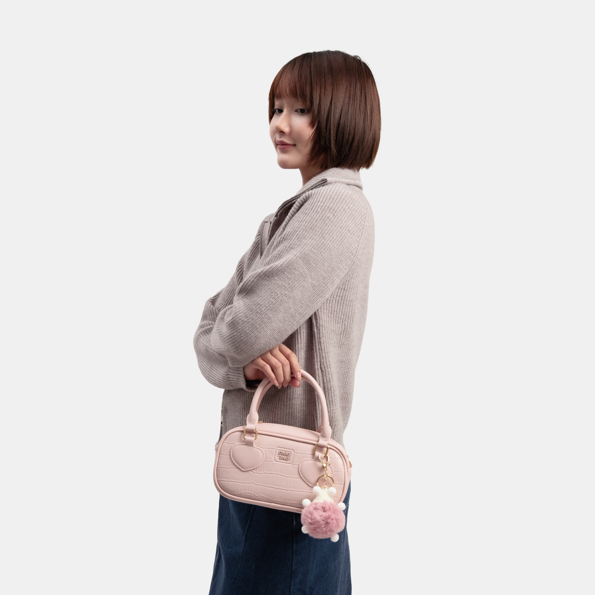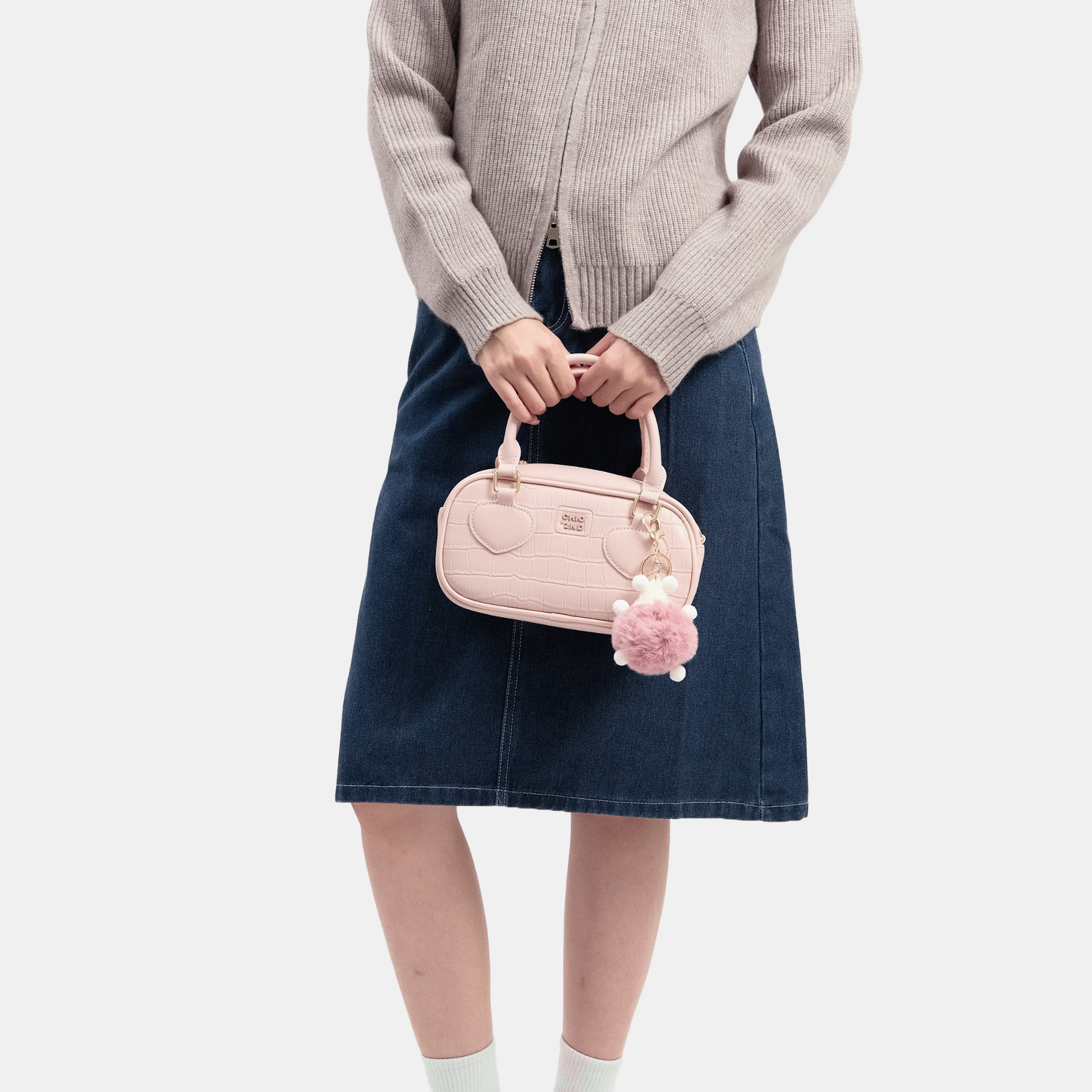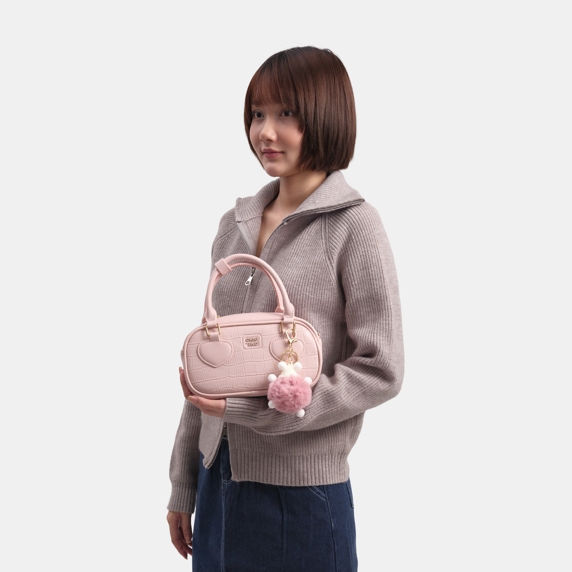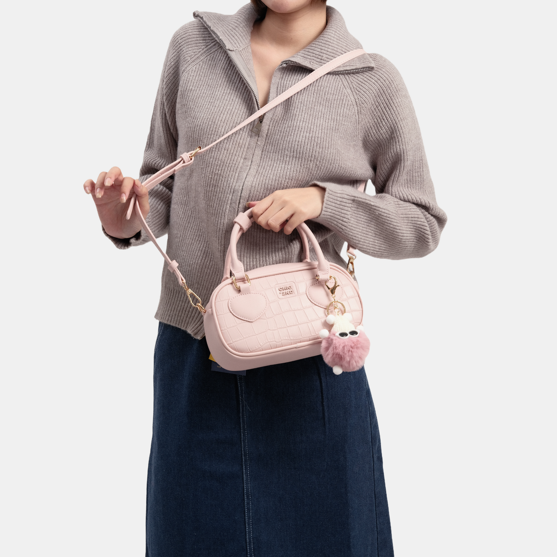 Túi Xách Nữ Da Vân Trái Tim Phối Charm