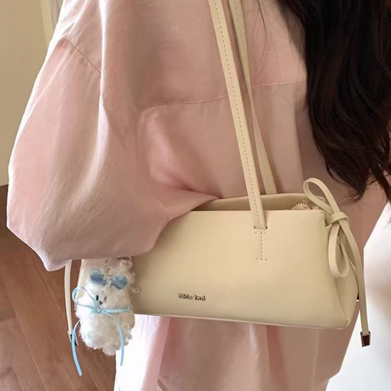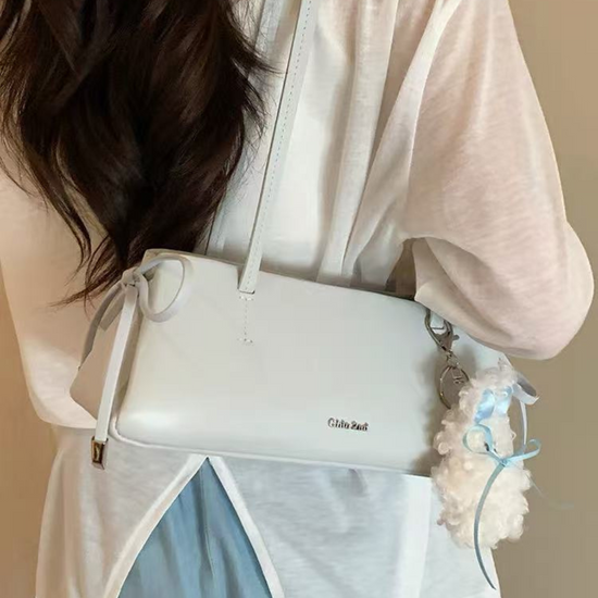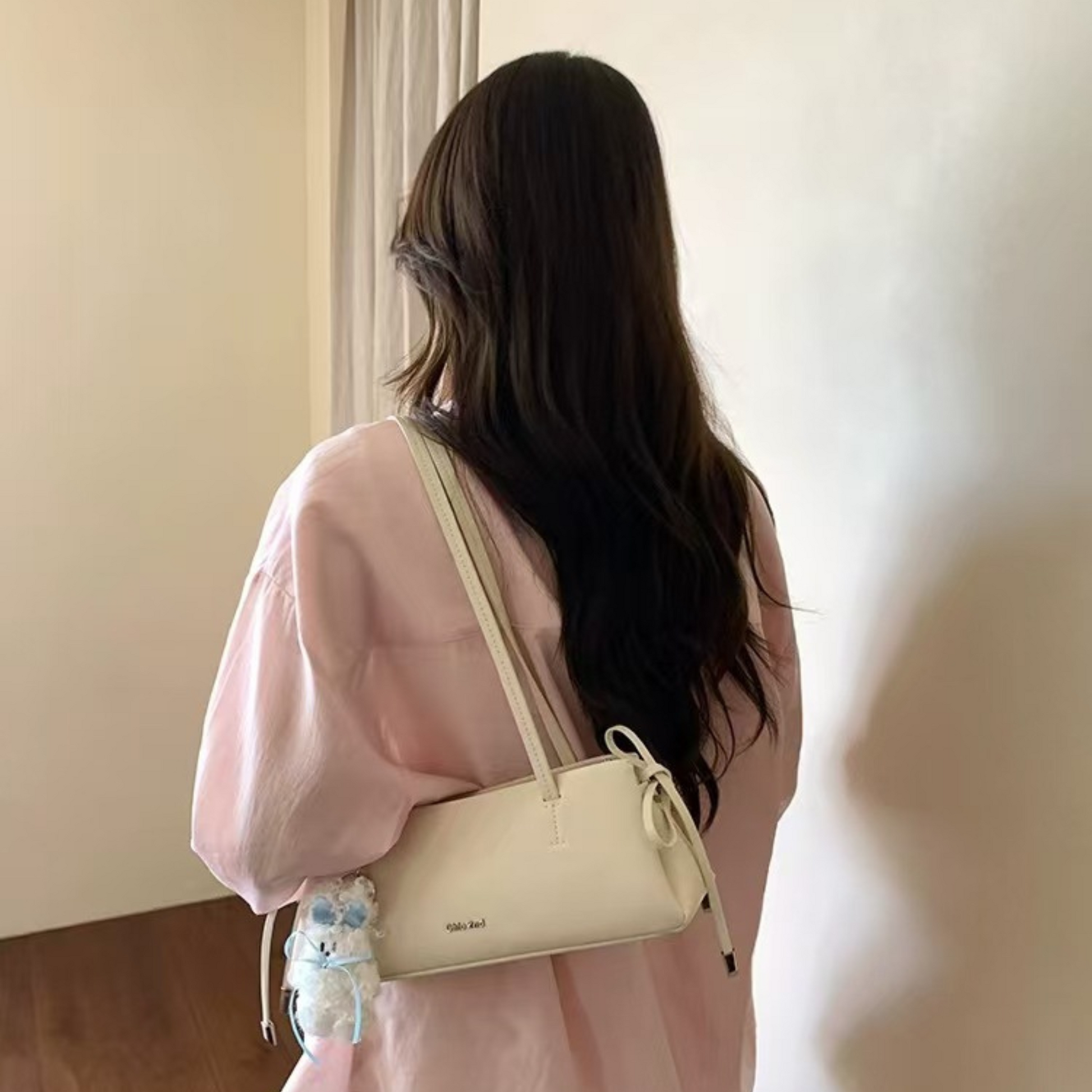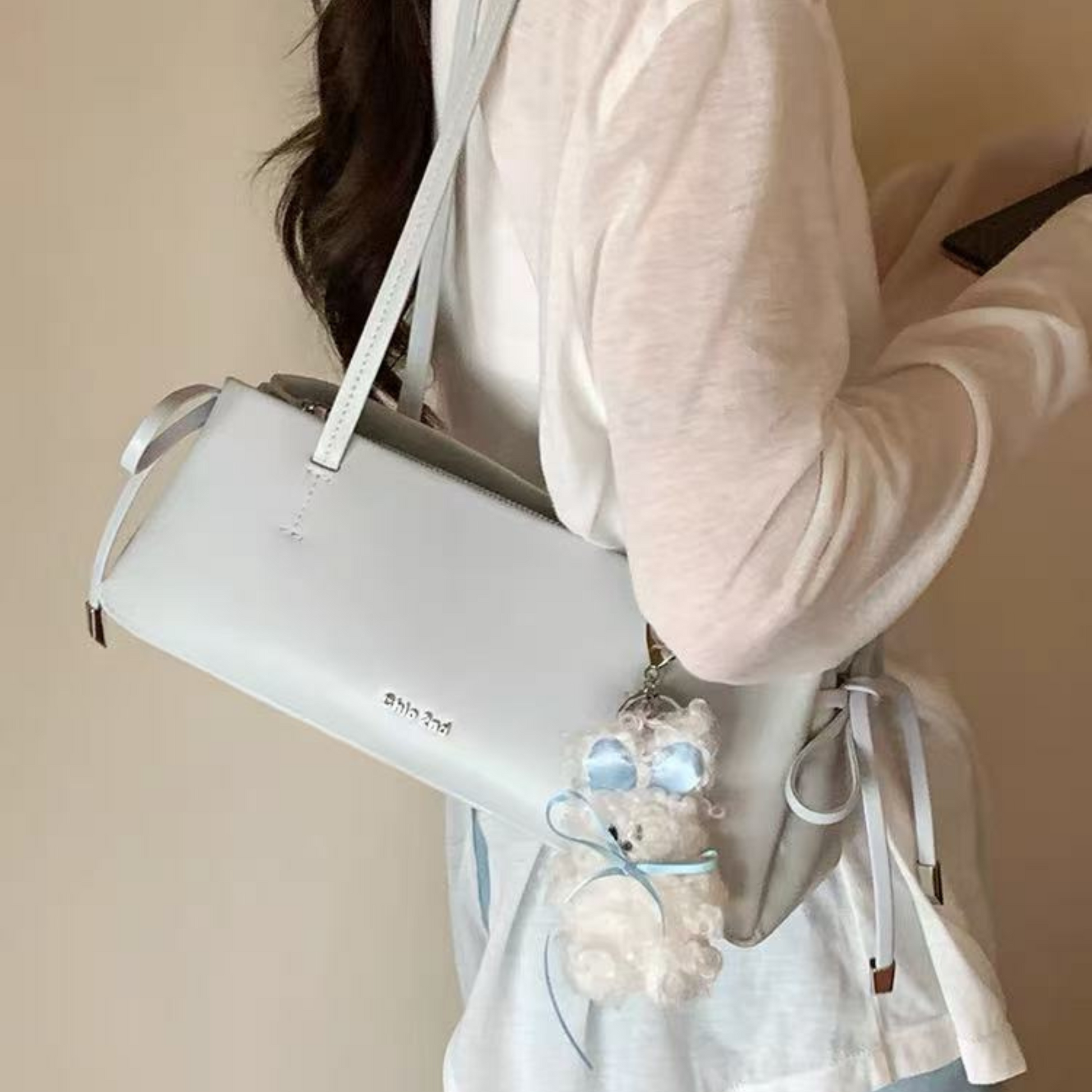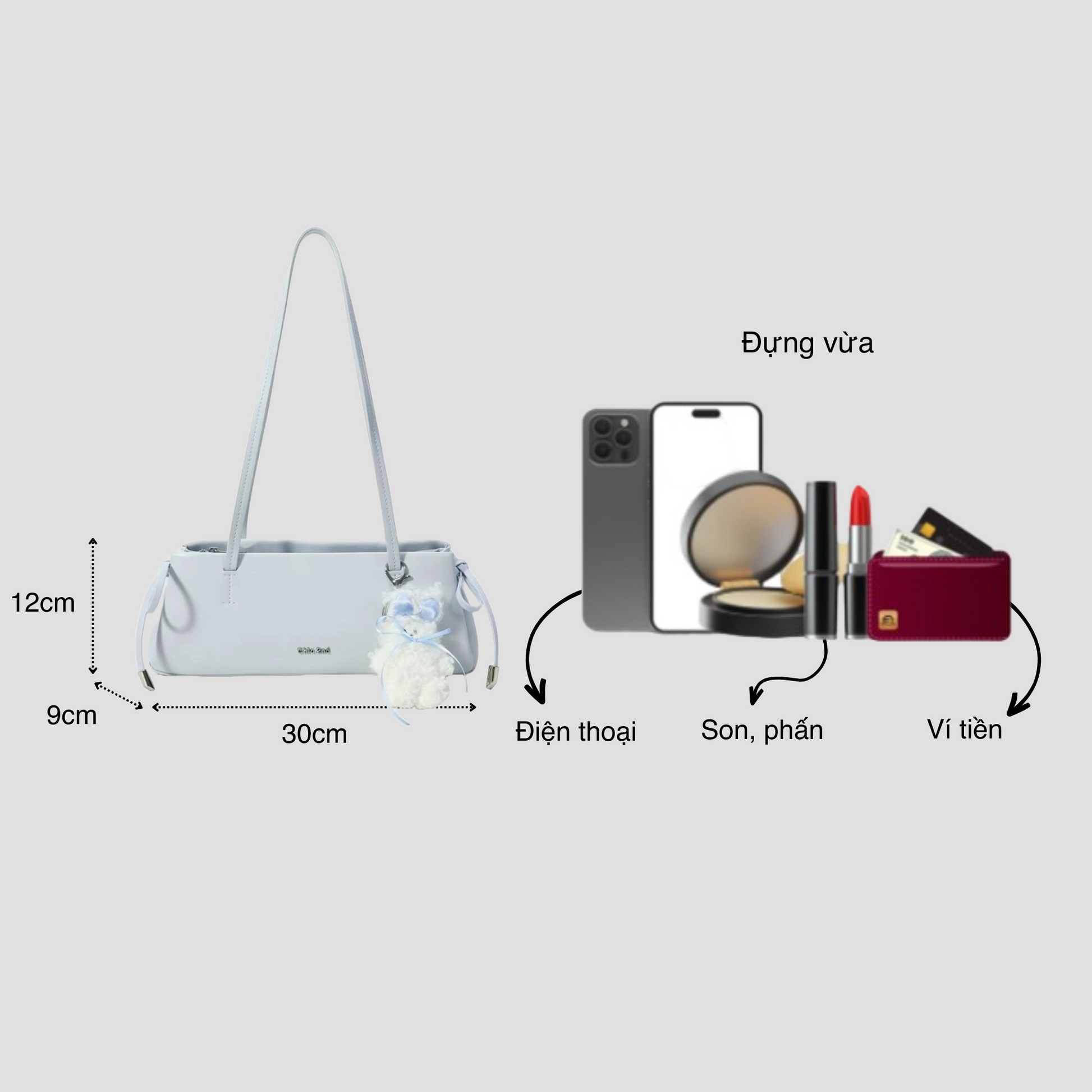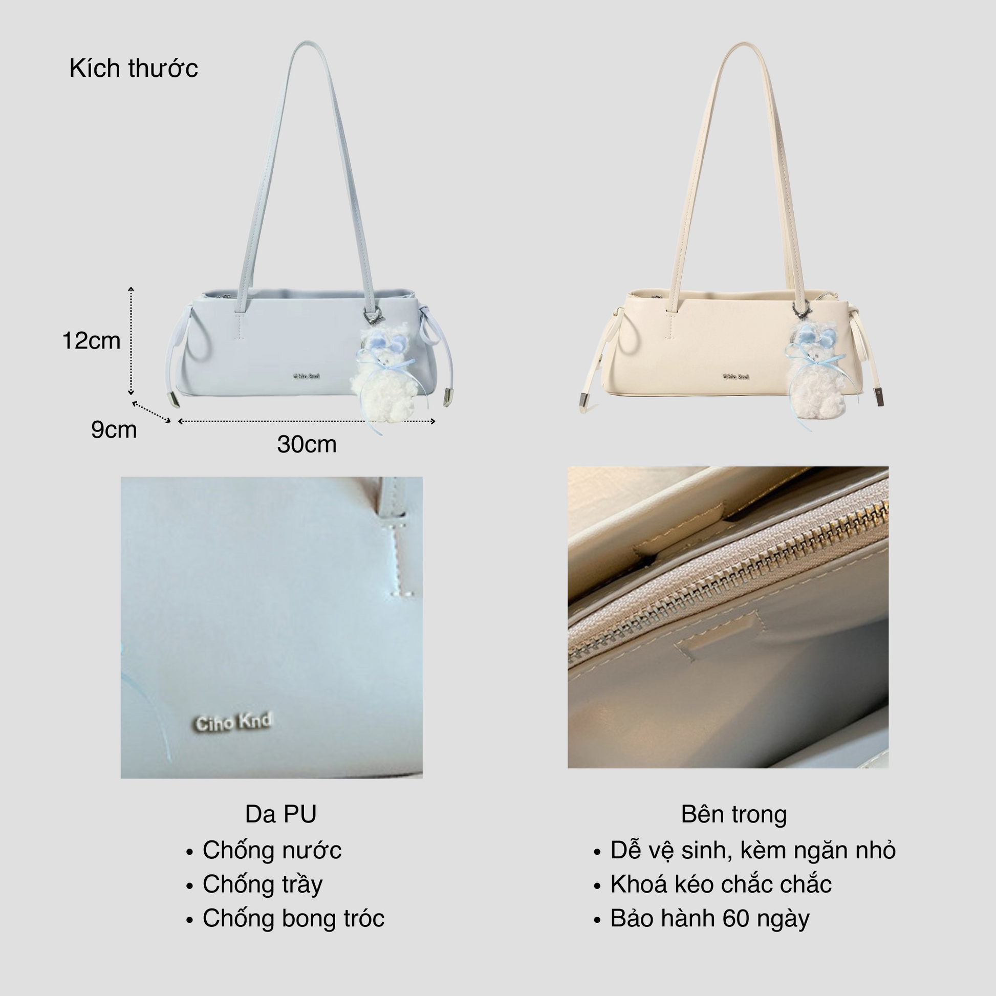Chiếc túi xách với kiểu dáng trendy mà các nàng không nên bỏ qua, túi phối nơ hai bên và kèm thêm charm gấu xinh. Có thể tùy ý sử dụng theo hai cách: đeo vai hoặc cầm tay tuỳ ý. Bên trong túi có không gian rộng rãi, đủ để chứa nhiều đồ dùng cần thiết hàng ngày như điện thoại, bóp ví, mắt kính, đồ trang điểm...
