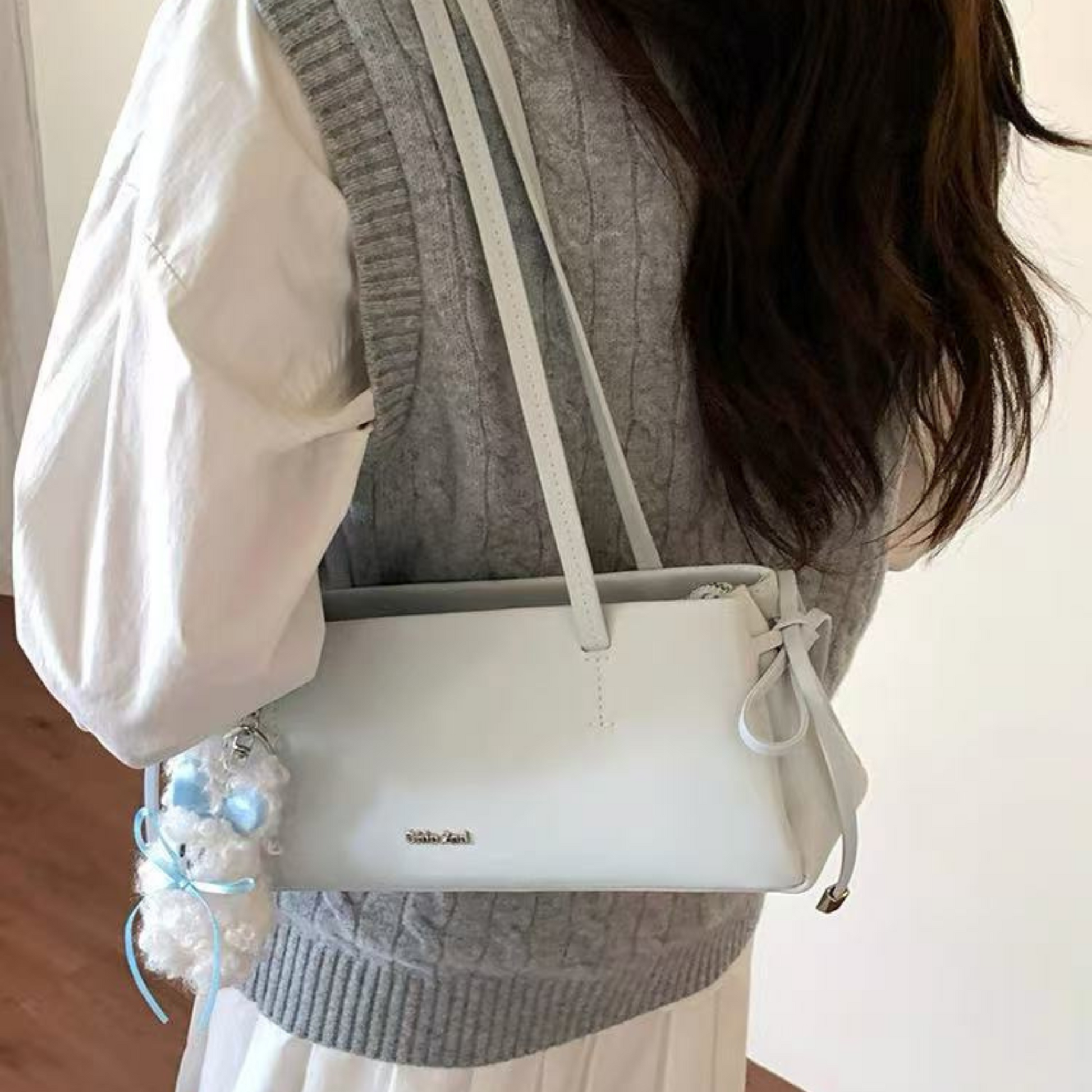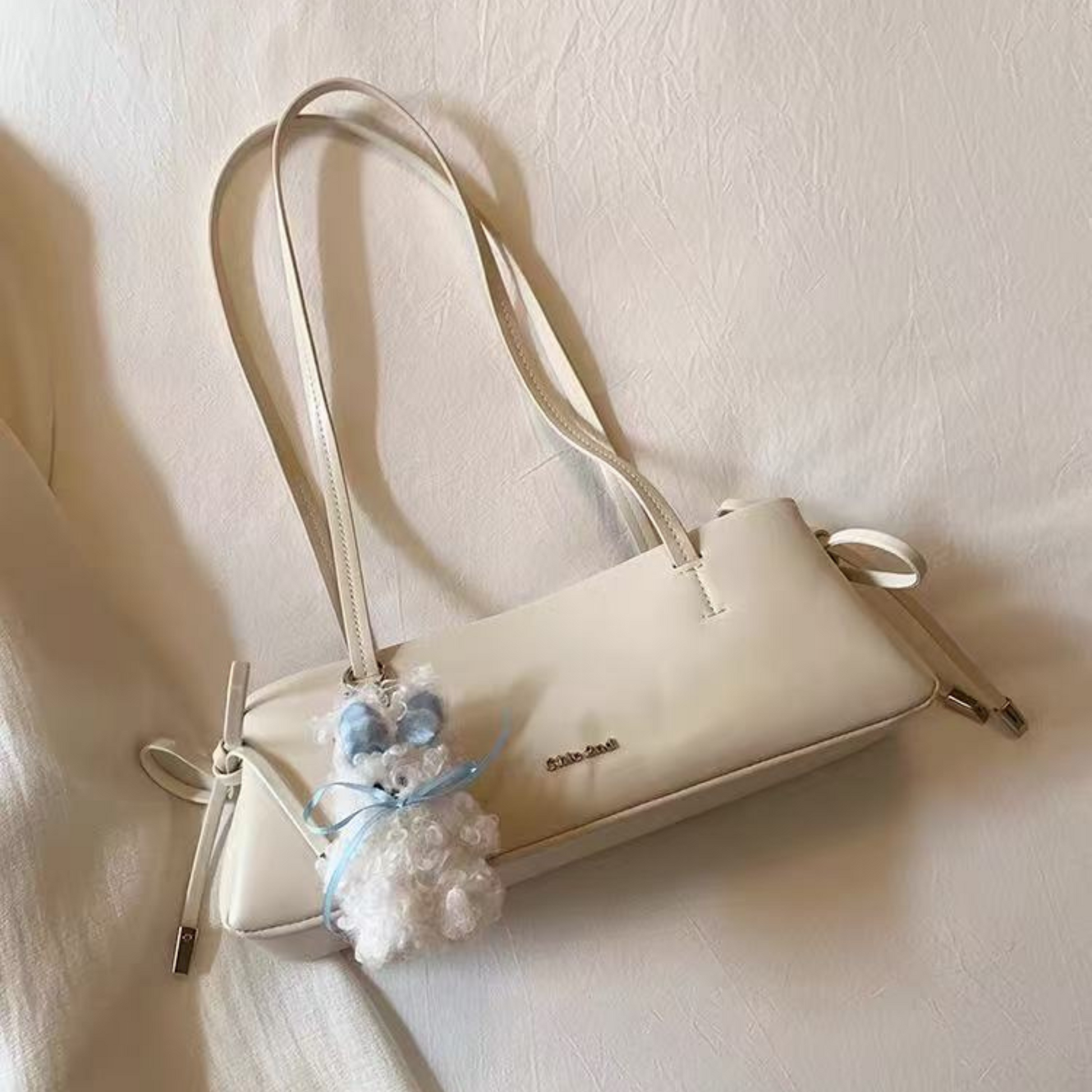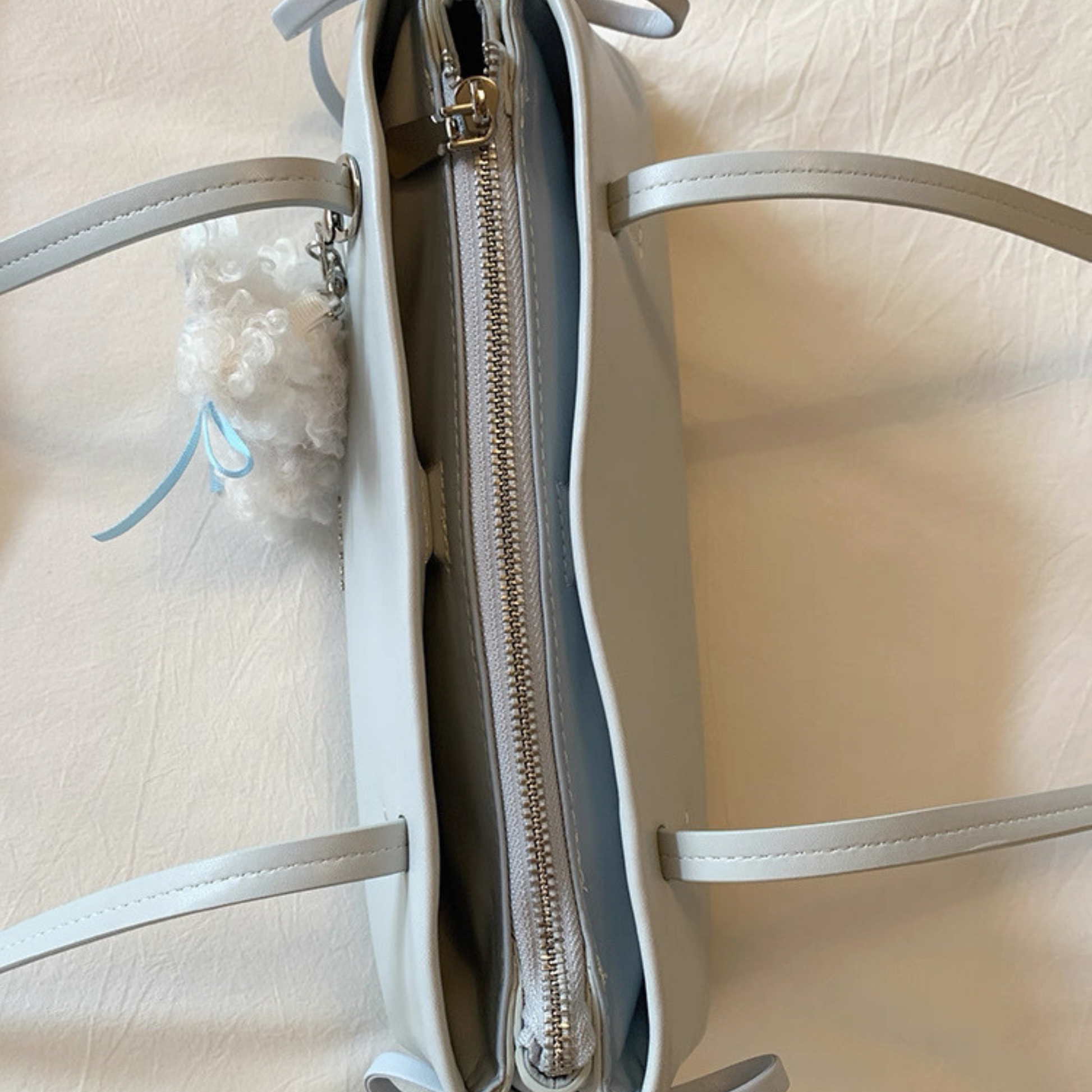 Túi Xách Nữ Dáng Thuyền Phối Nơ Charm Gấu
