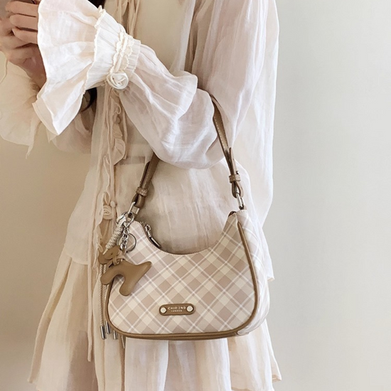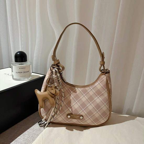 Túi Xách Nữ Dáng Thuyền Sọc Caro Phối Charm