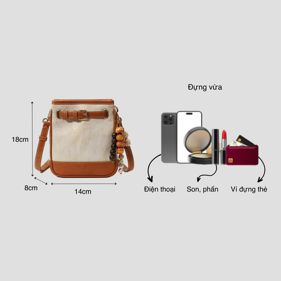 Không gian bên trong túi đựng được những đồ dùng cá nhân như điện thoại, ví tiền, mắt kính, đồ trang điểm... Giúp bạn luôn tự tin khi ra ngoài, phù hợp cho những dịp đi cà phê hay dạo phố. Màu sắc trẻ trung và dễ dàng phối cùng mọi set đồ. Đây sẽ là một item không thể thiếu trong bộ sưu tập phụ kiện của những ai yêu thích thời trang.