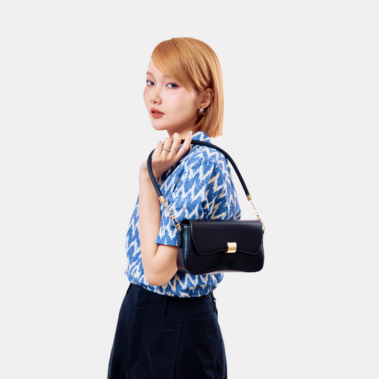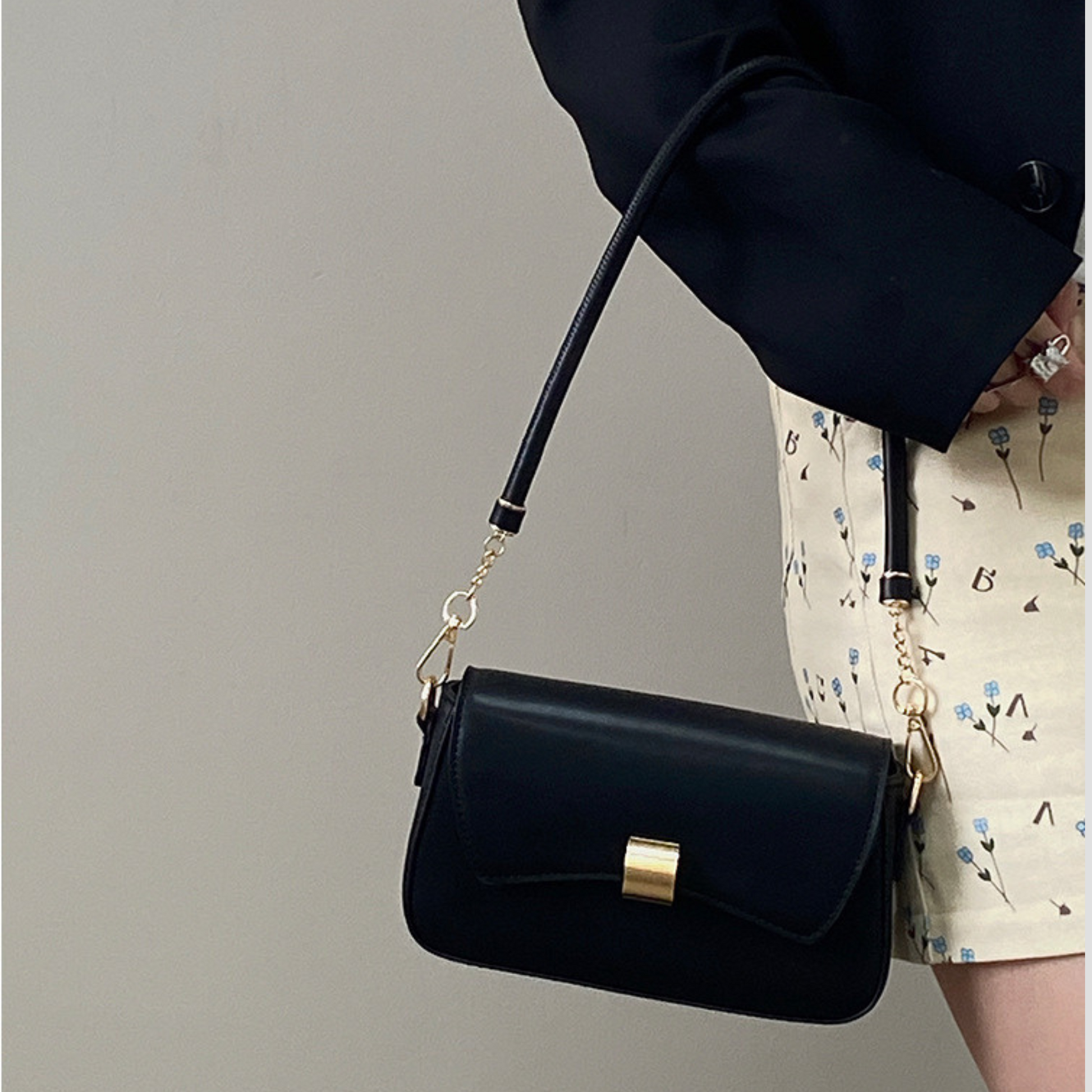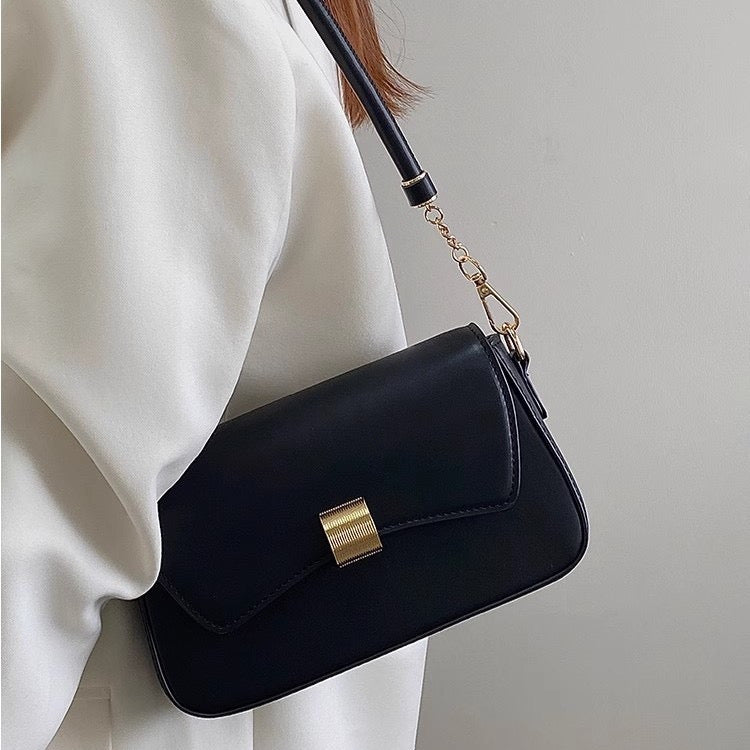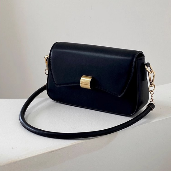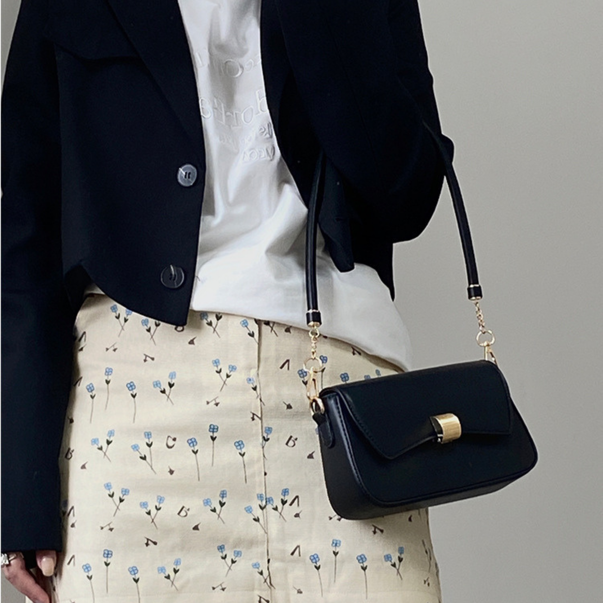 Chiếc túi xách da với thiết kế hộp đứng form, nắp túi được bo viền đơn giản nhưng lại tạo điểm nhấn với khoá gài nổi bật, thu hút ánh nhìn ngay từ lần đầu tiên. Quai đeo bạn có thể sử dụng theo hai cách: đeo vai hoặc cầm tay tuỳ thích.