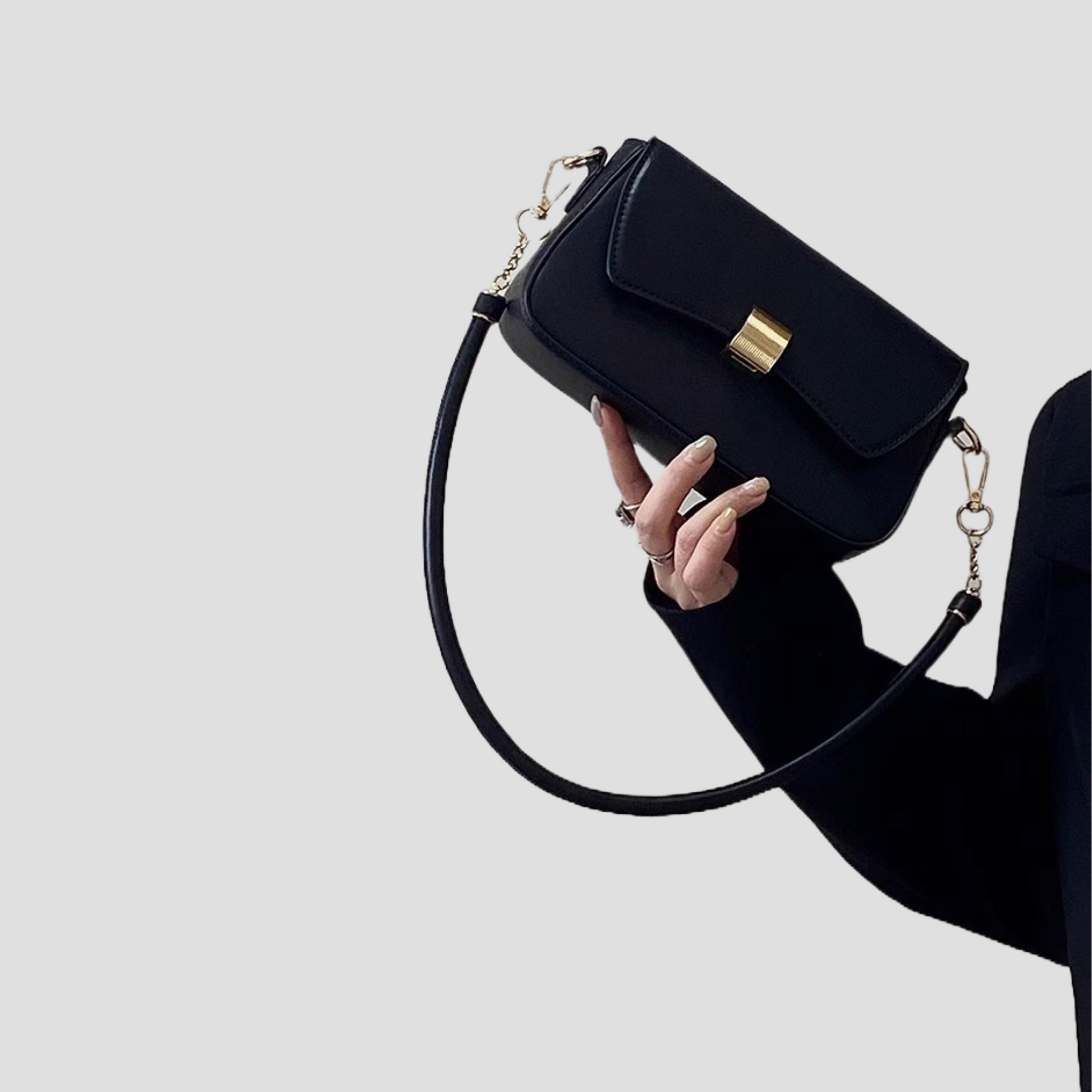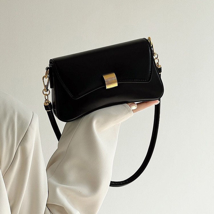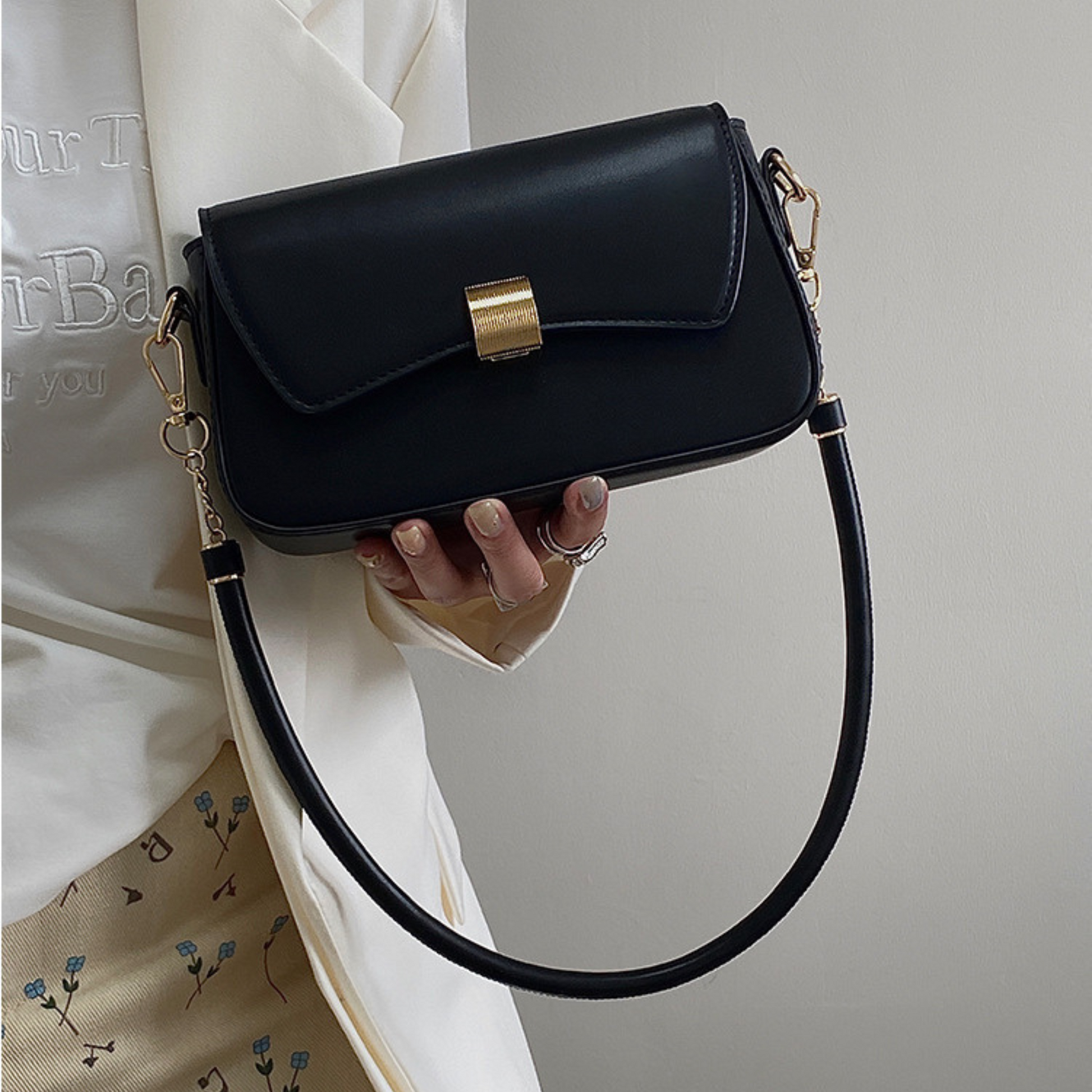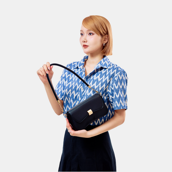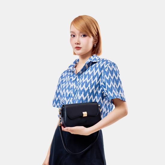 Chiếc túi xách da với thiết kế hộp đứng form, nắp túi được bo viền đơn giản nhưng lại tạo điểm nhấn với khoá gài nổi bật, thu hút ánh nhìn ngay từ lần đầu tiên. Quai đeo bạn có thể sử dụng theo hai cách: đeo vai hoặc cầm tay tuỳ thích.