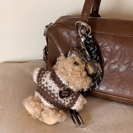 Túi Xách Nữ Hộp Kiểu Da Nhám Phối Charm Gấu