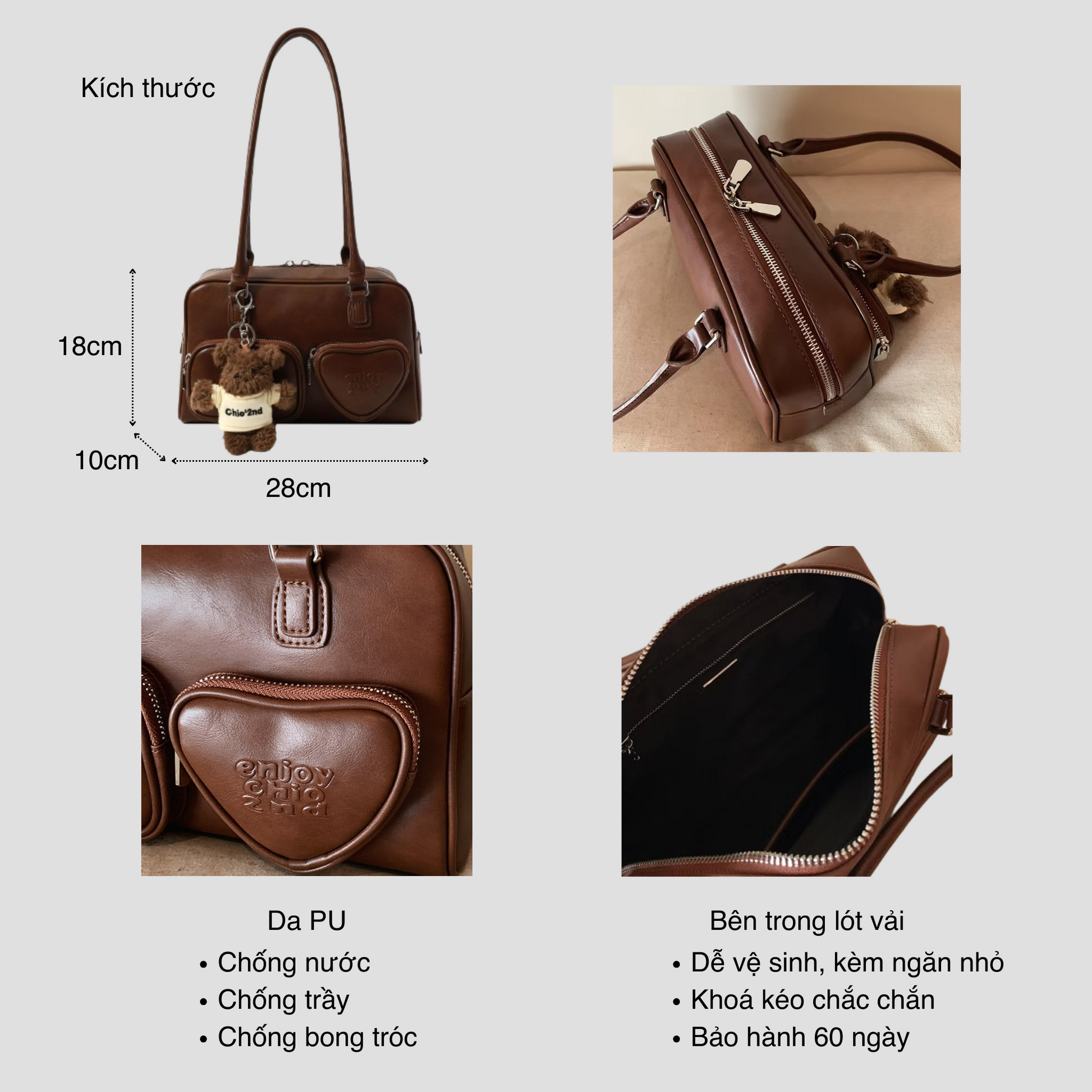 Túi Xách Nữ Hộp Ngăn Trái Tim Charm Gấu
