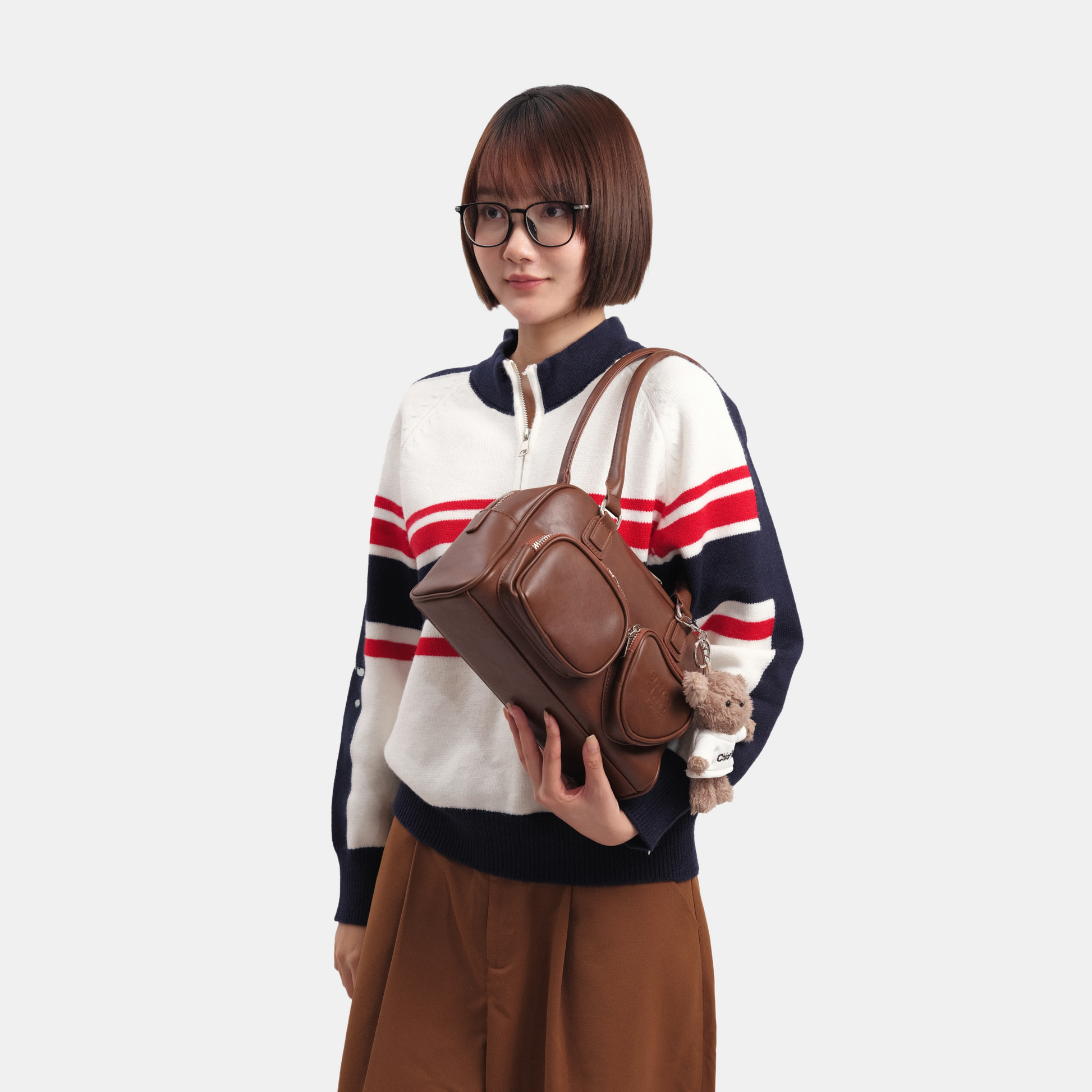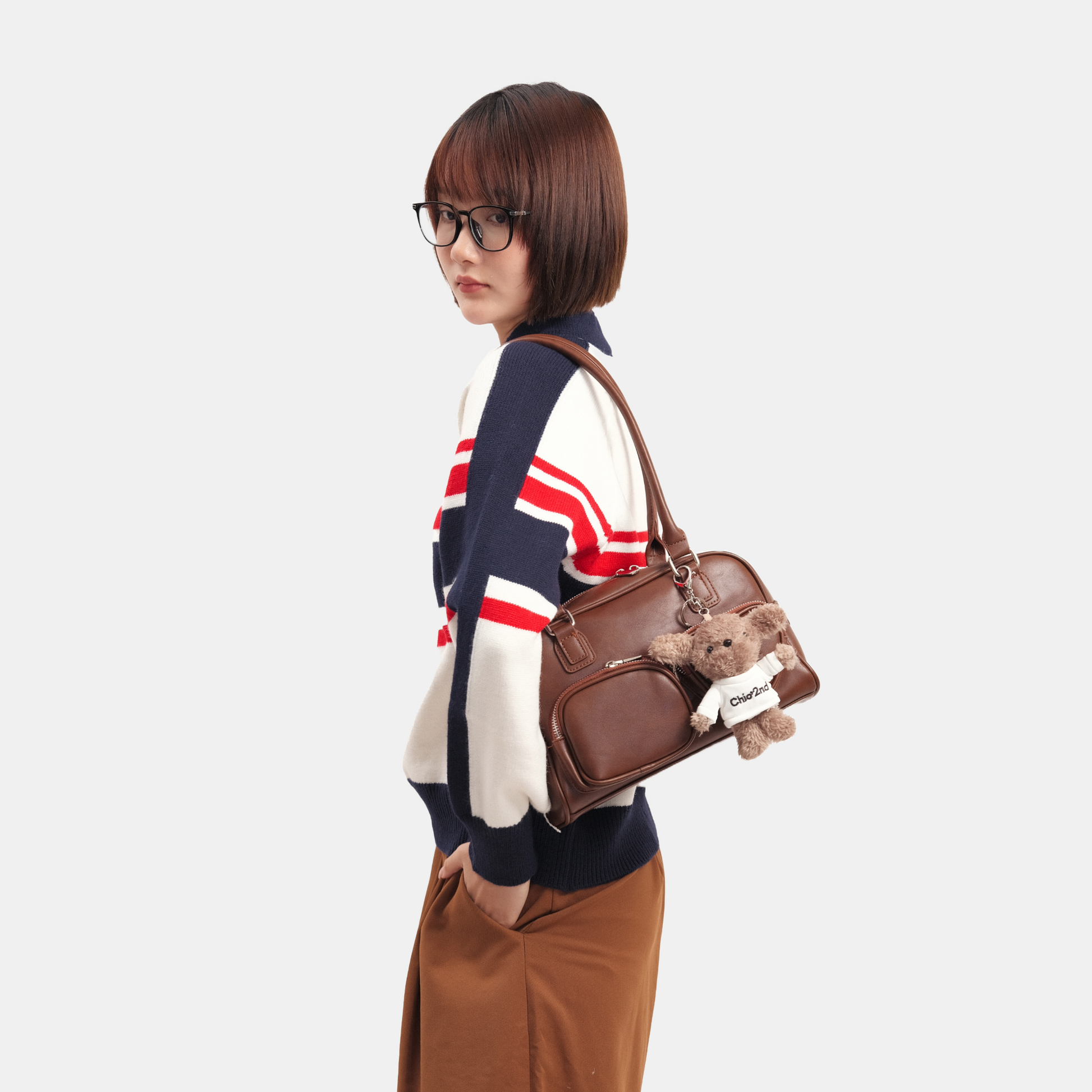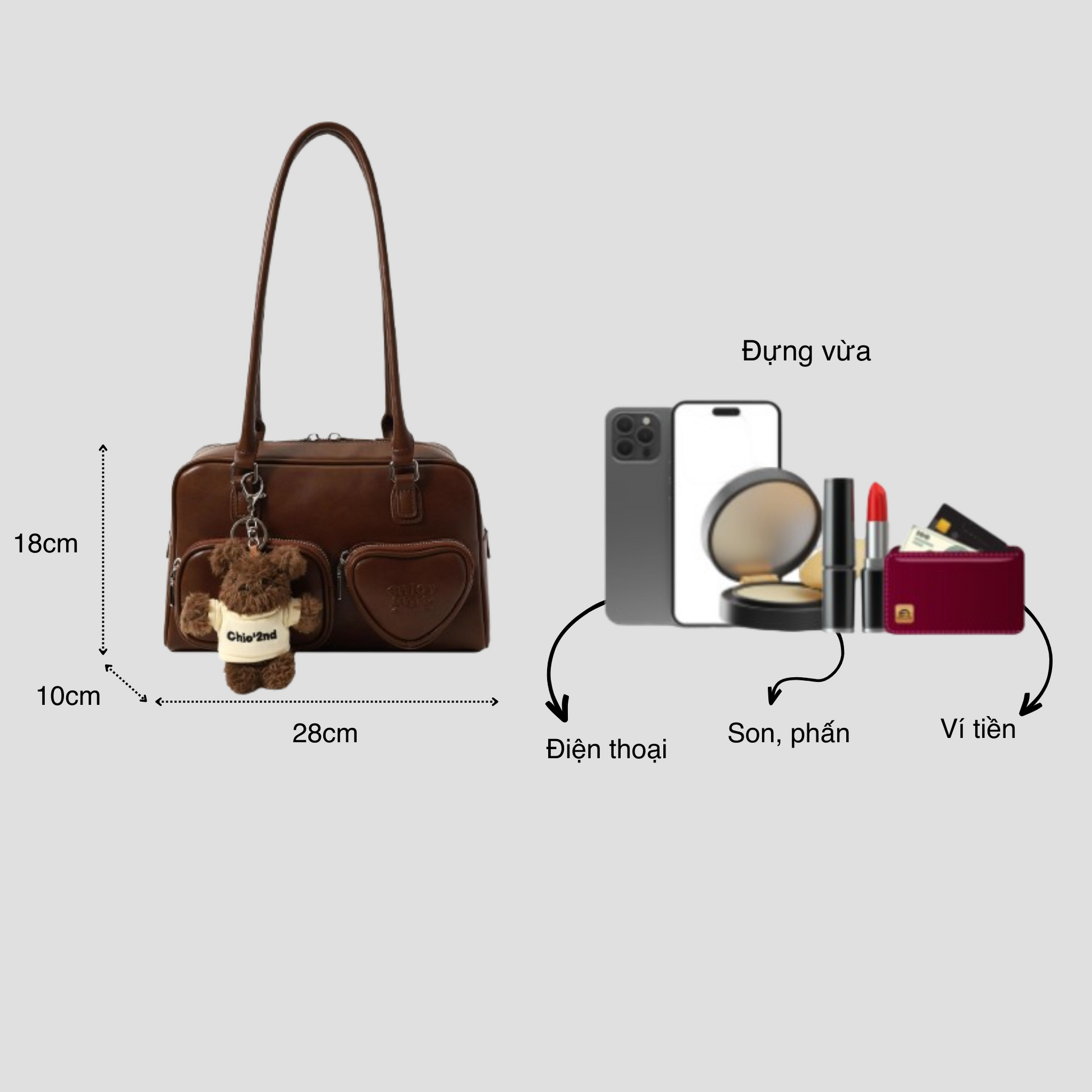 Chiếc túi xách kiểu dáng hộp trendy phối charm gấu mà các nàng không nên bỏ qua. Có thể tùy ý sử dụng theo hai cách: đeo vai hoặc xách tay tuỳ ý. Túi phối ngăn tiện lợi, không gian rộng rãi, đủ để chứa nhiều đồ dùng cần thiết hàng ngày như iPad, sổ tay, điện thoại, bóp ví, mắt kính, đồ trang điểm...