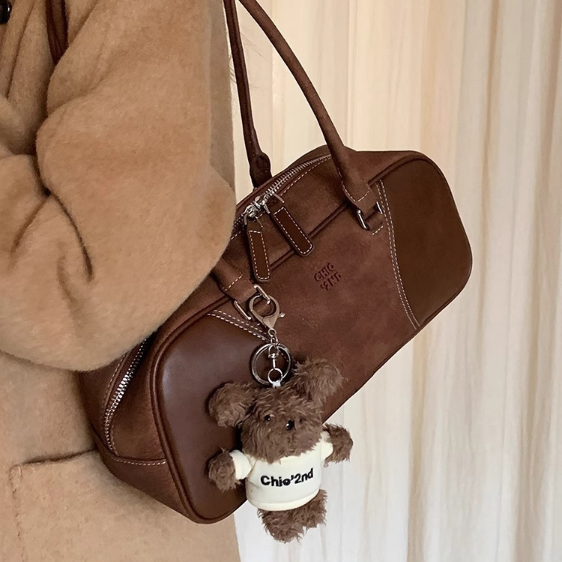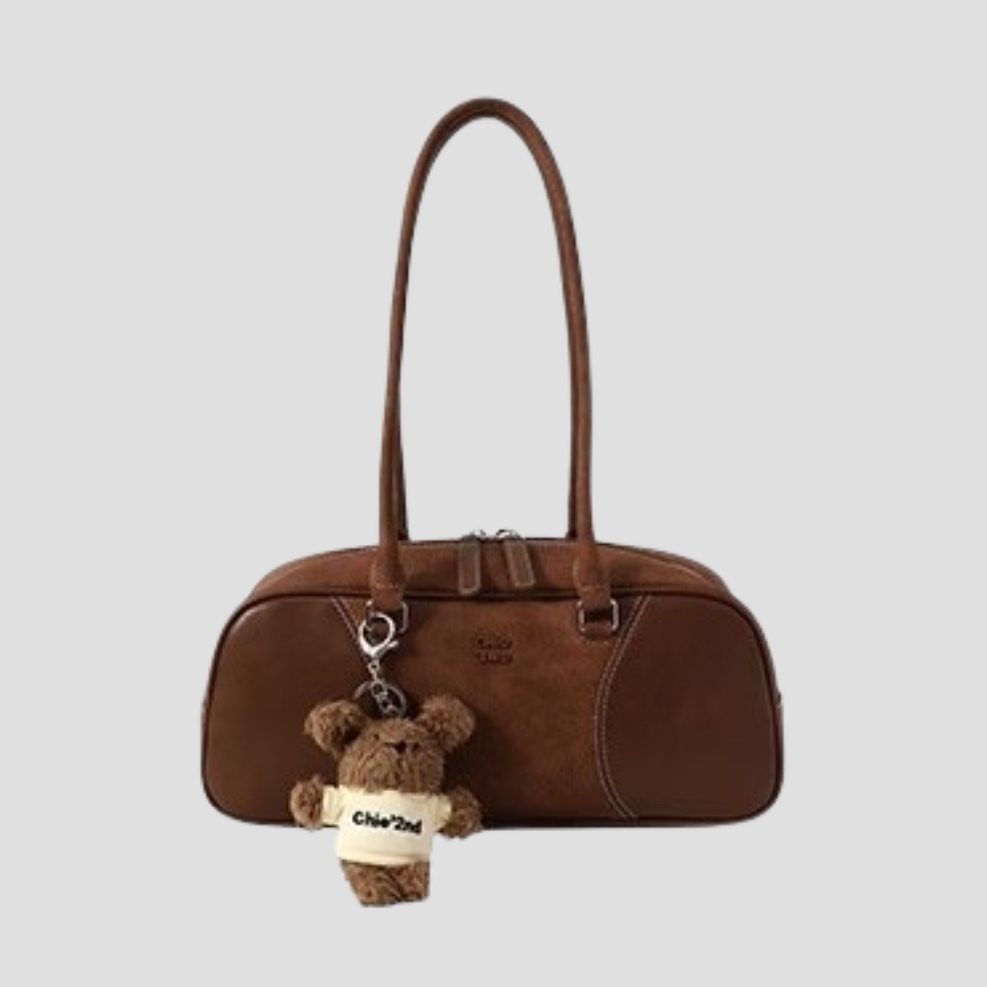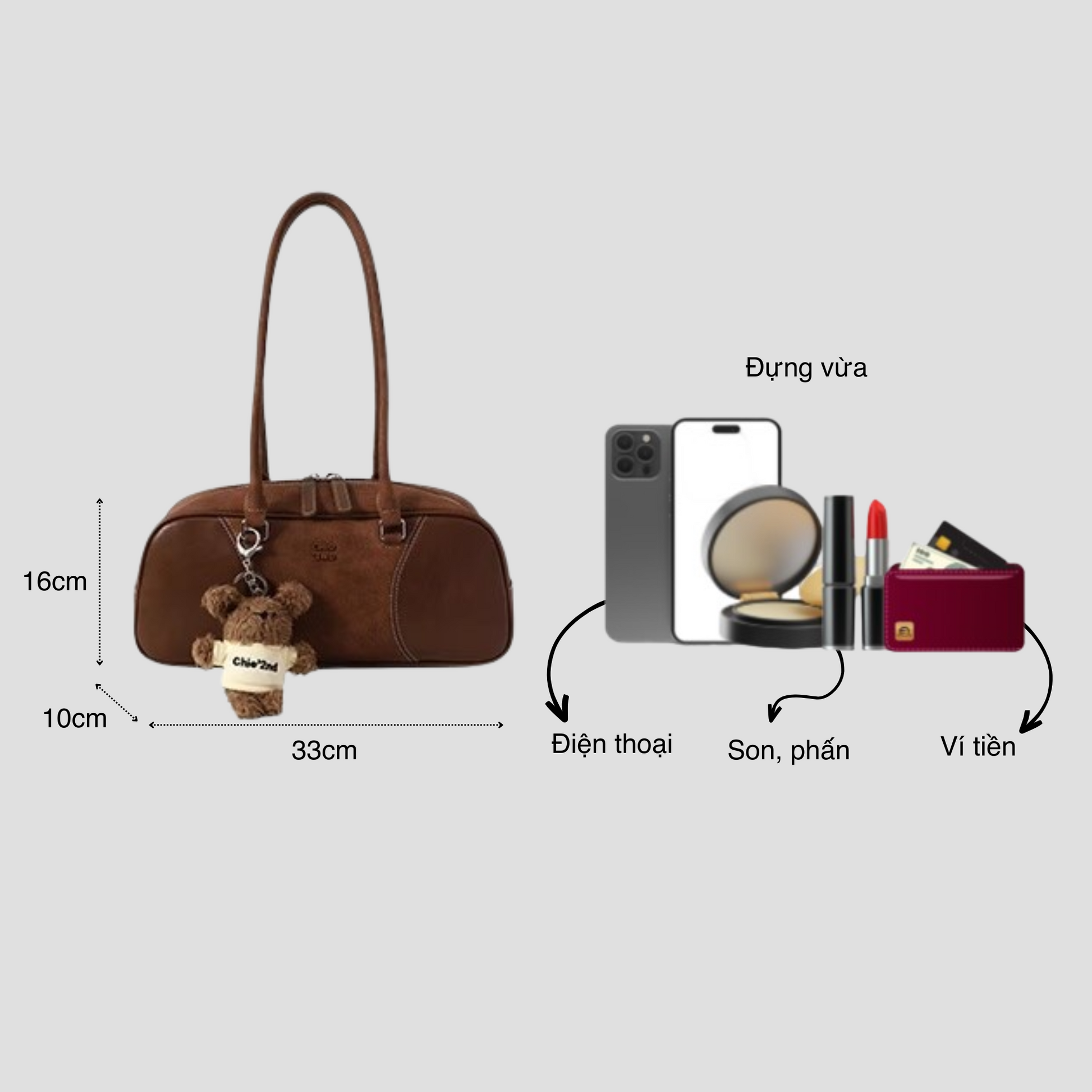 Túi Xách Nữ Hộp Phối Da Lộn Charm Gấu