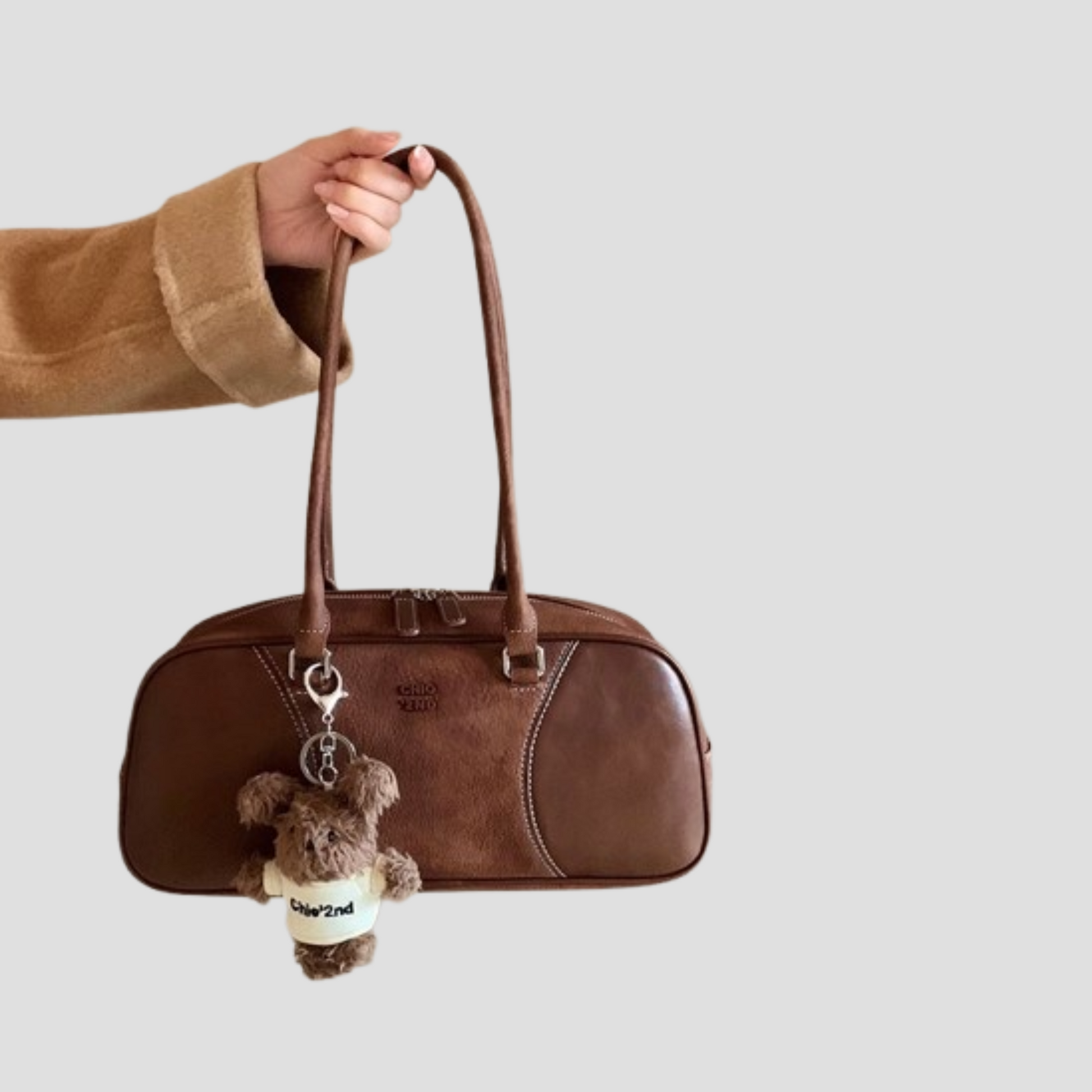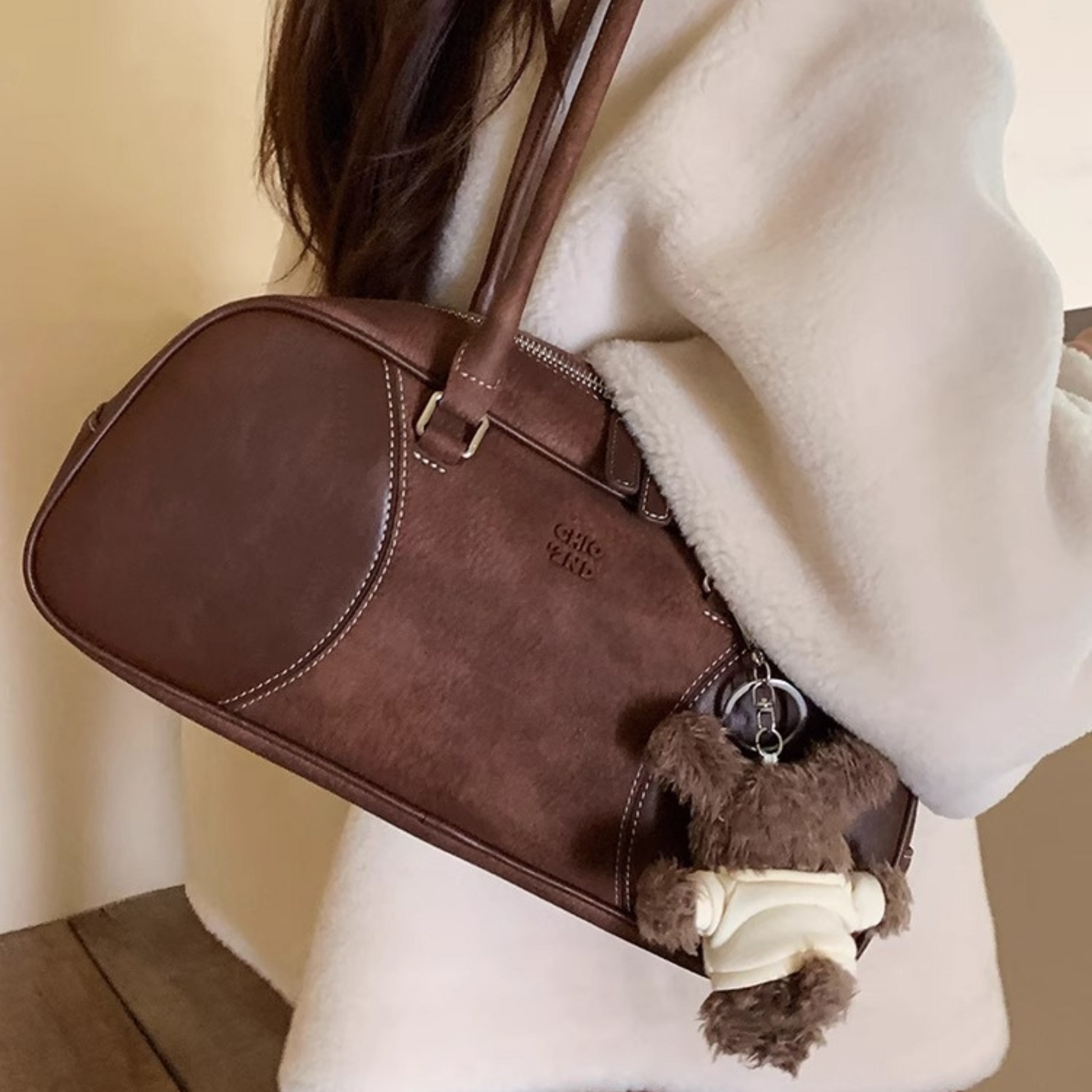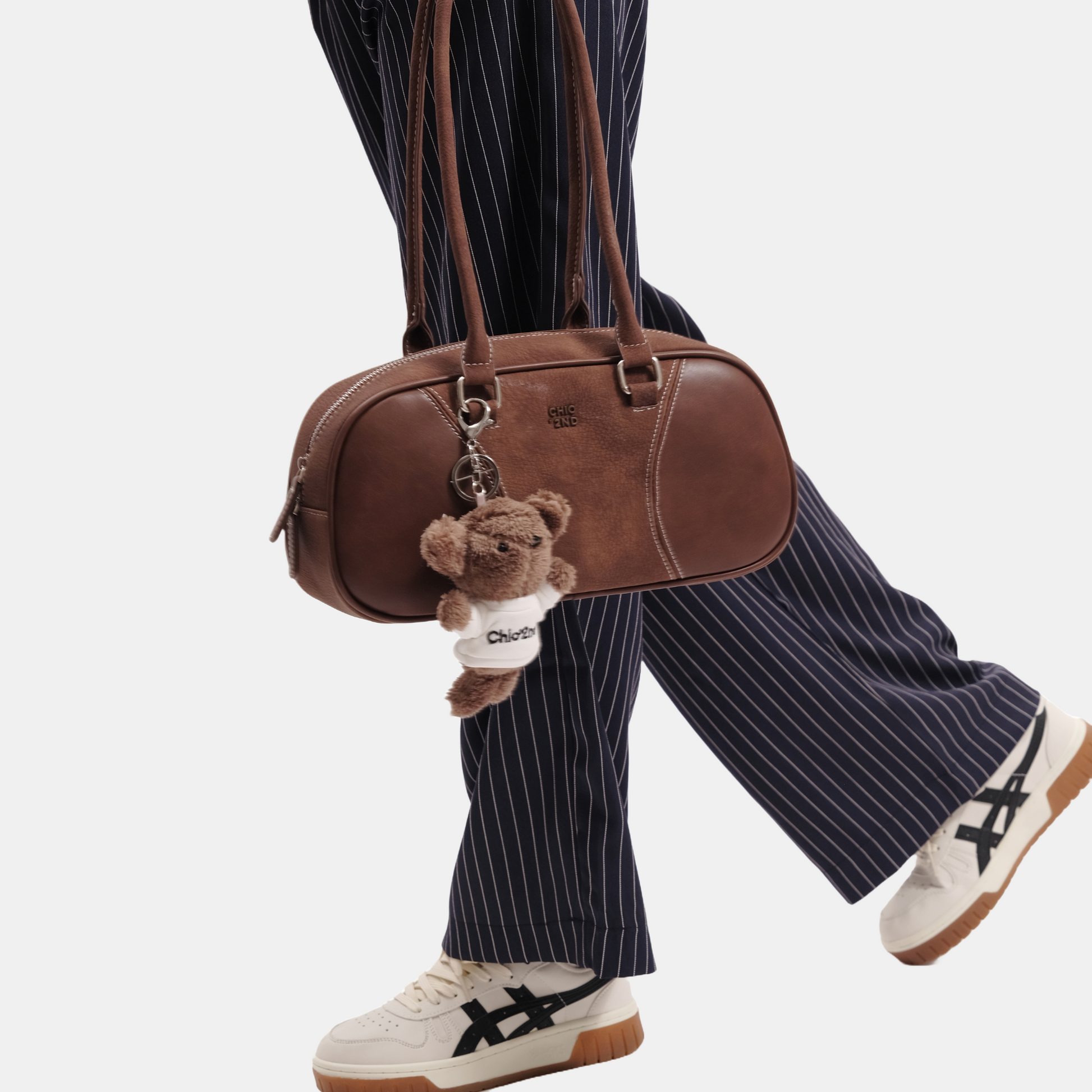 Túi Xách Nữ Hộp Phối Da Lộn Charm Gấu