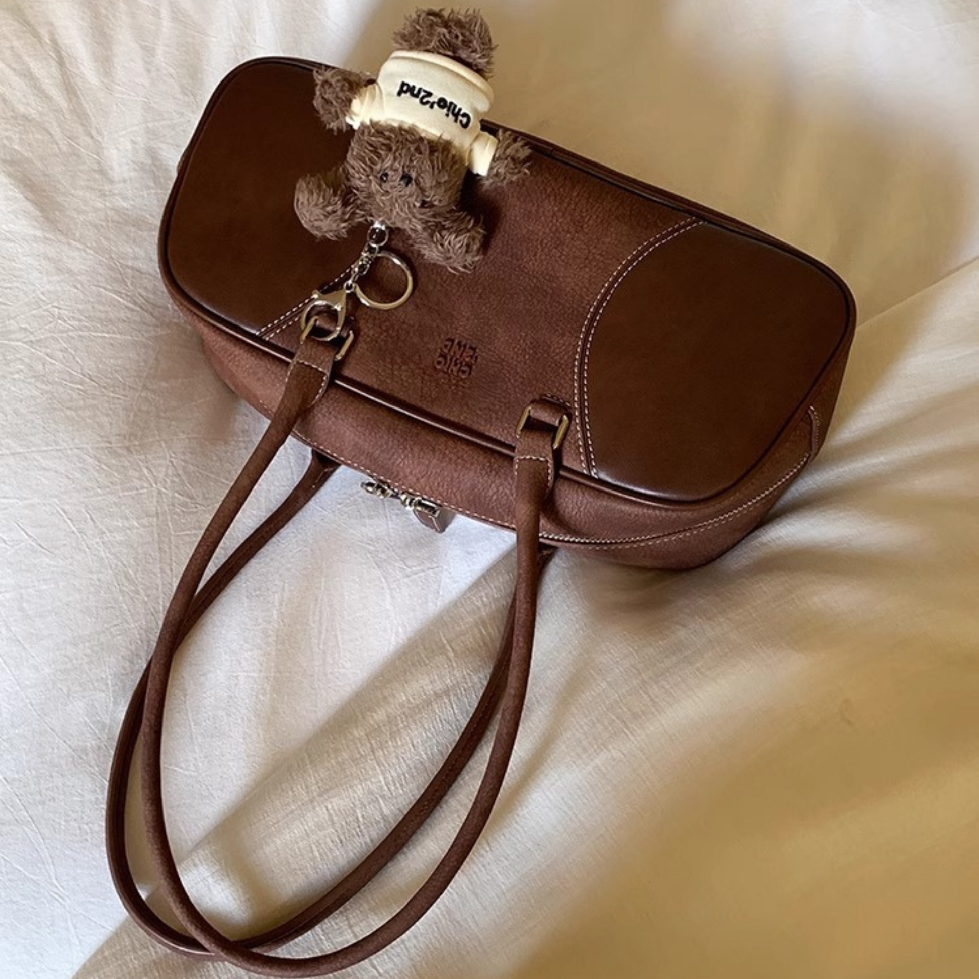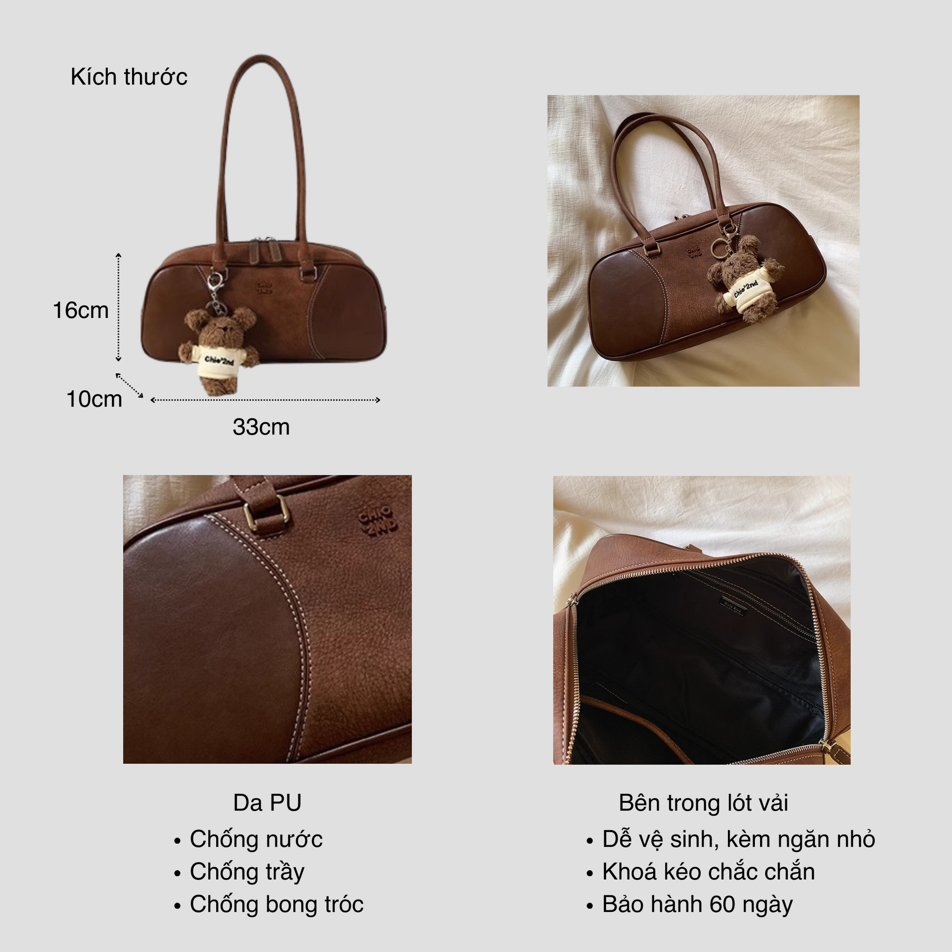Chiếc túi xách kiểu dáng hộp phối da lộn trendy, kèm charm gấu xinh mà các nàng không nên bỏ qua. Có thể tùy ý sử dụng theo hai cách: đeo vai hoặc xách tay tuỳ ý. Bên trong túi có không gian rộng rãi, đủ để chứa nhiều đồ dùng cần thiết hàng ngày như sổ tay, điện thoại, bóp ví, mắt kính, đồ trang điểm...