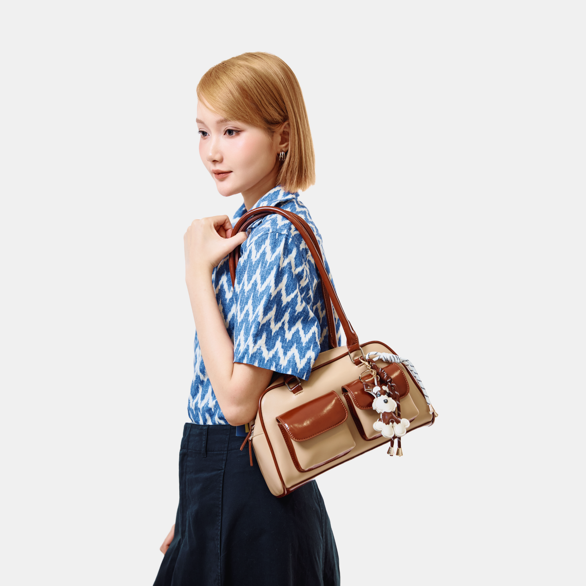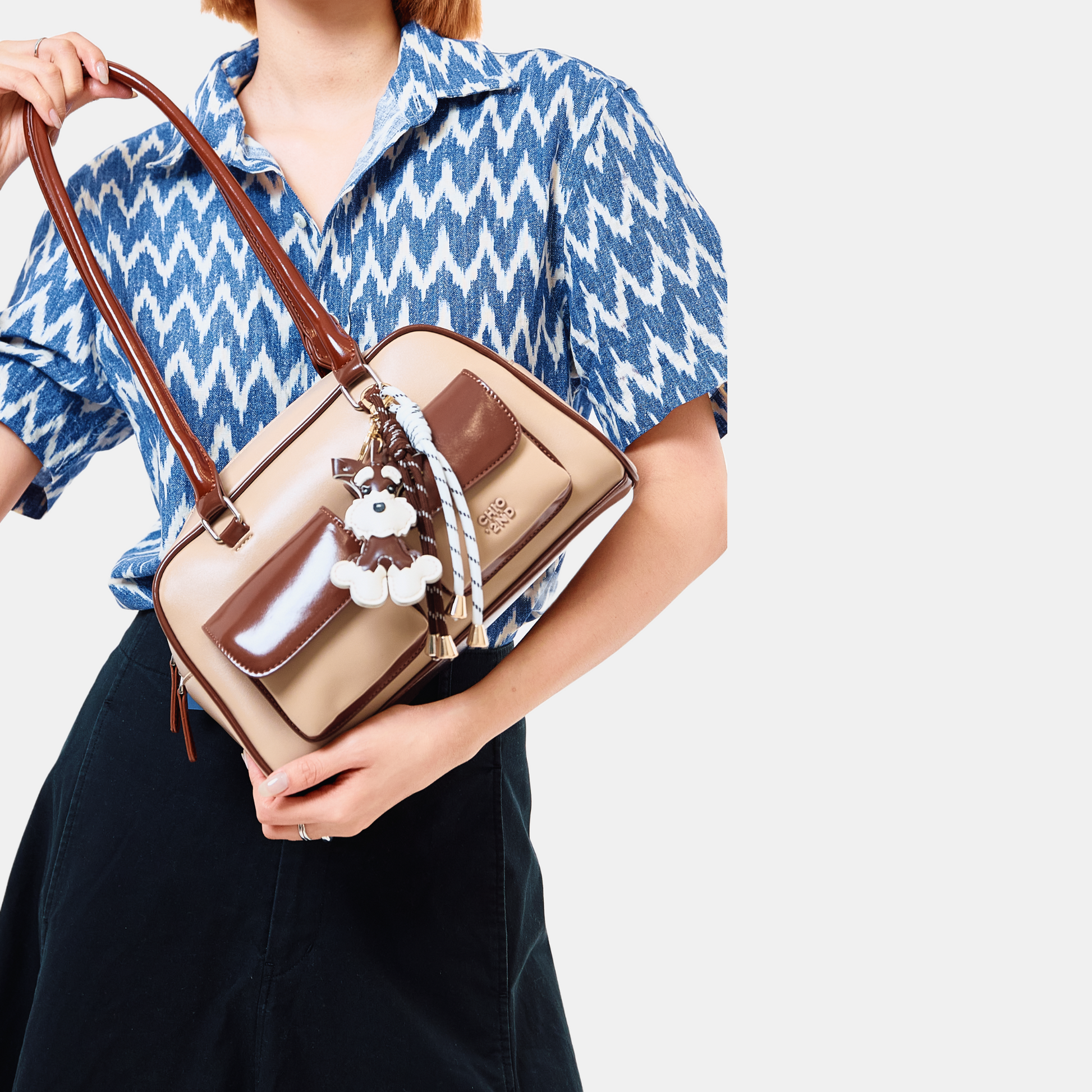 Túi Xách Nữ Hộp Phối Ngăn Nắp Da Kèm Charm