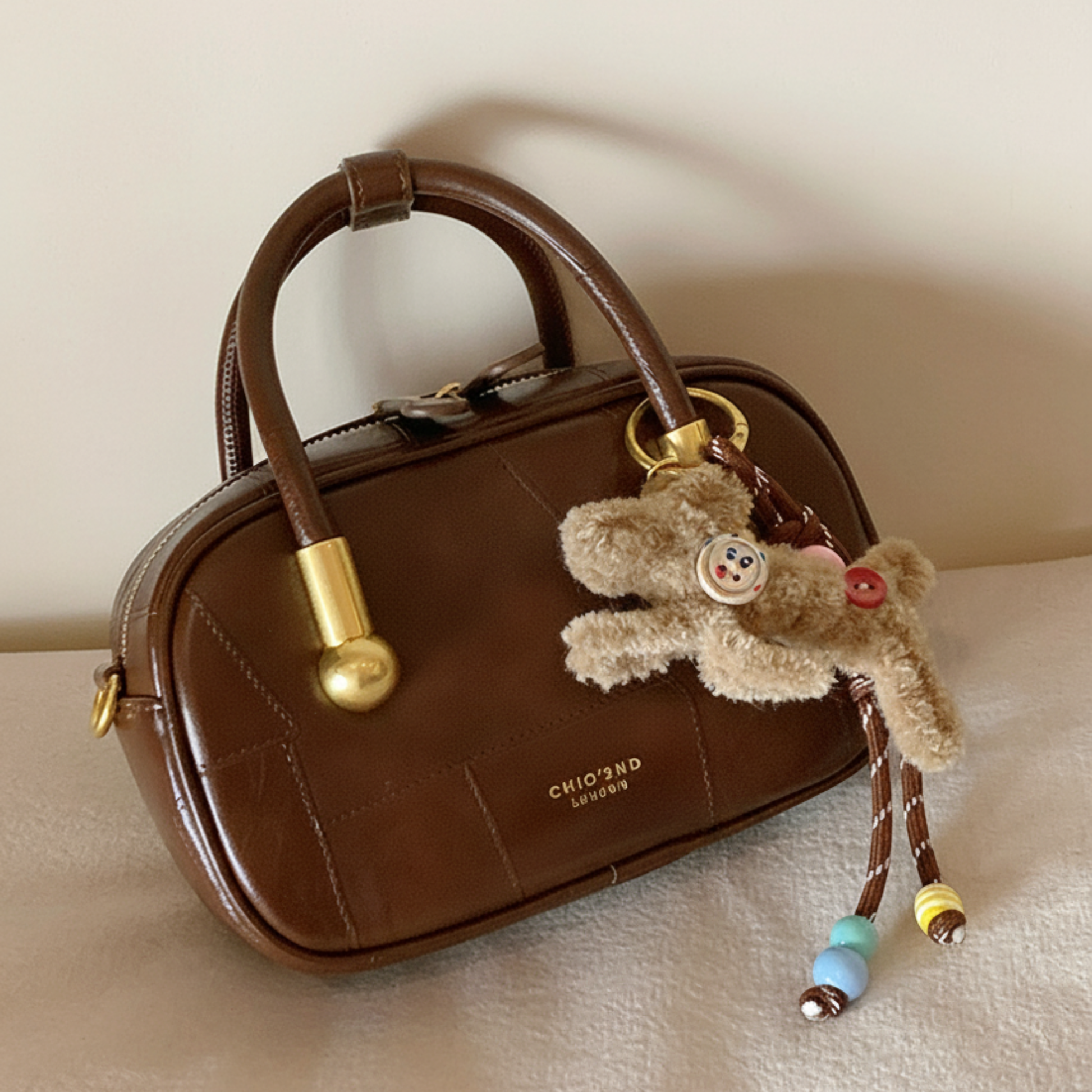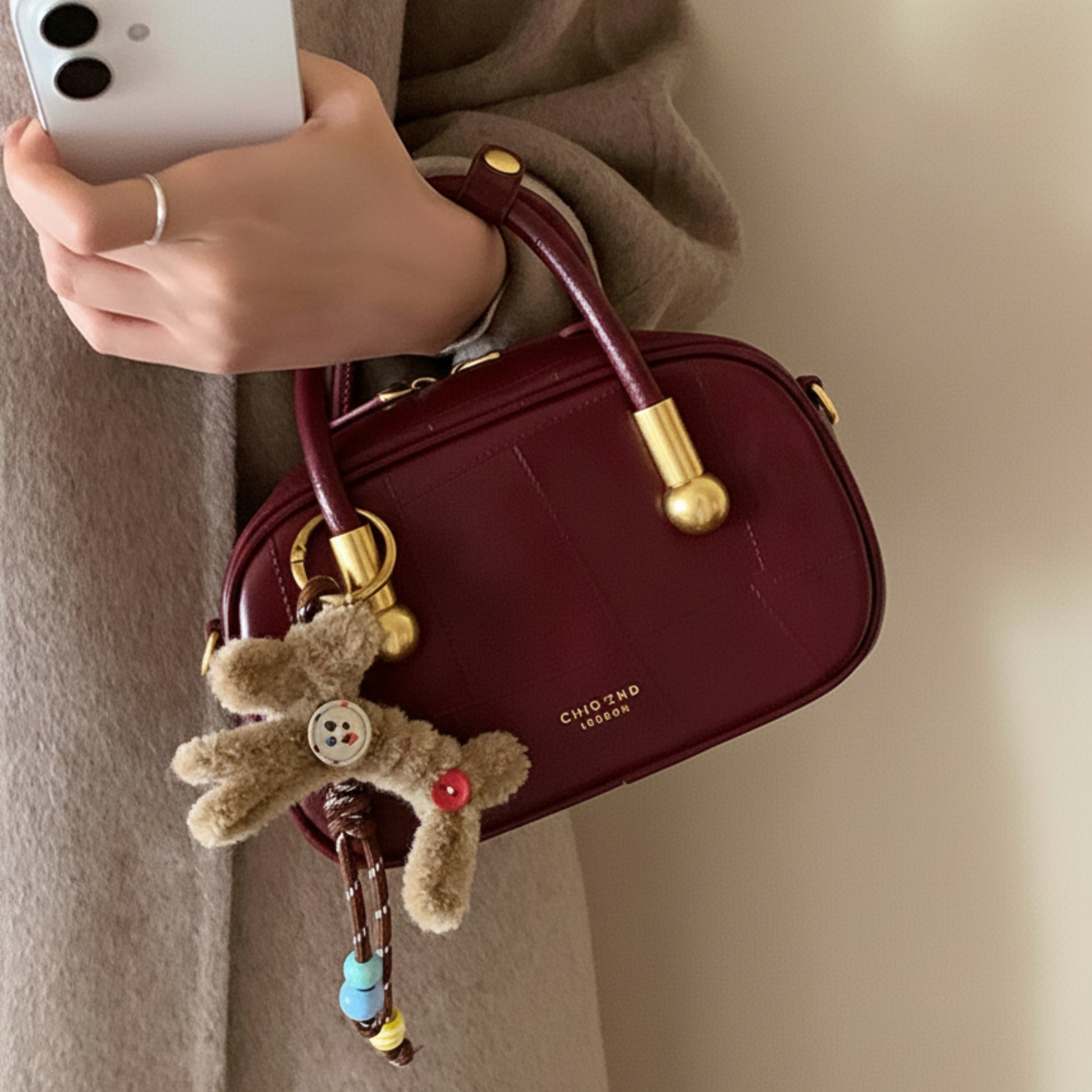 Túi Xách Nữ Hộp Quai Phối Kèm Charm Gấu