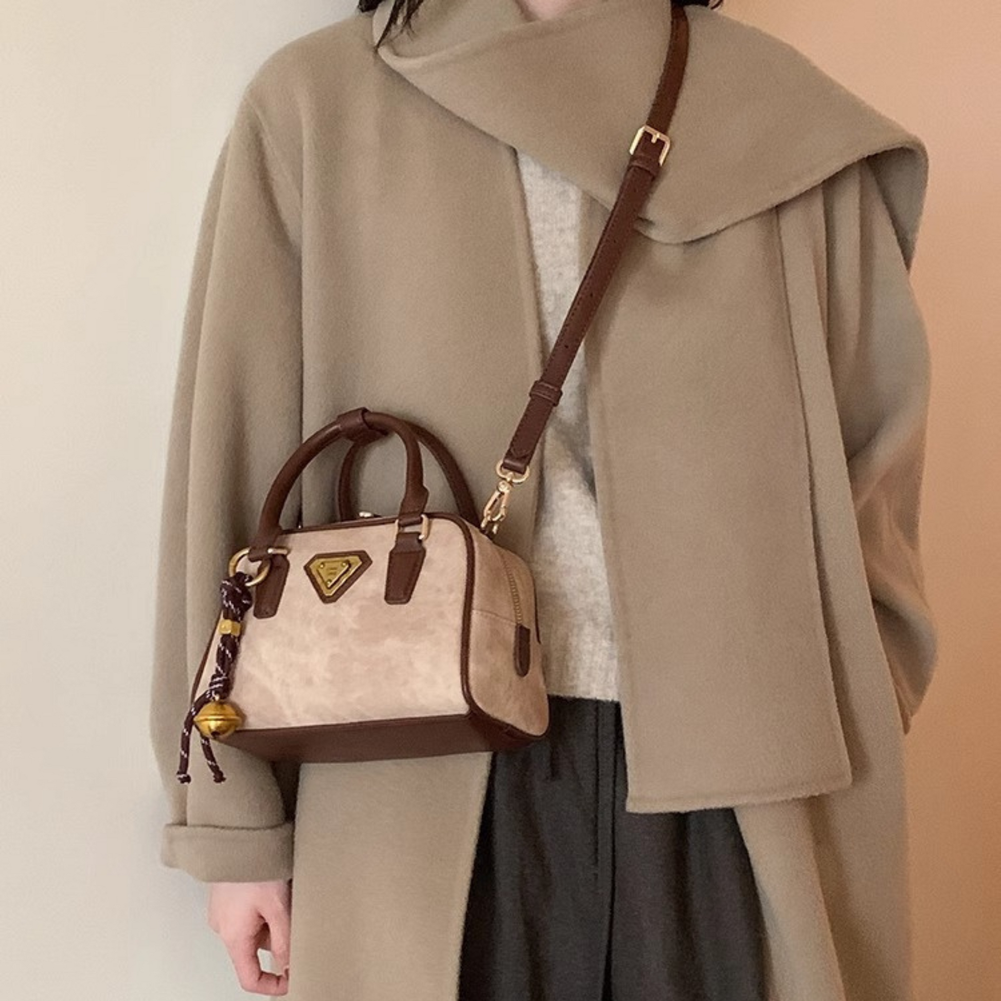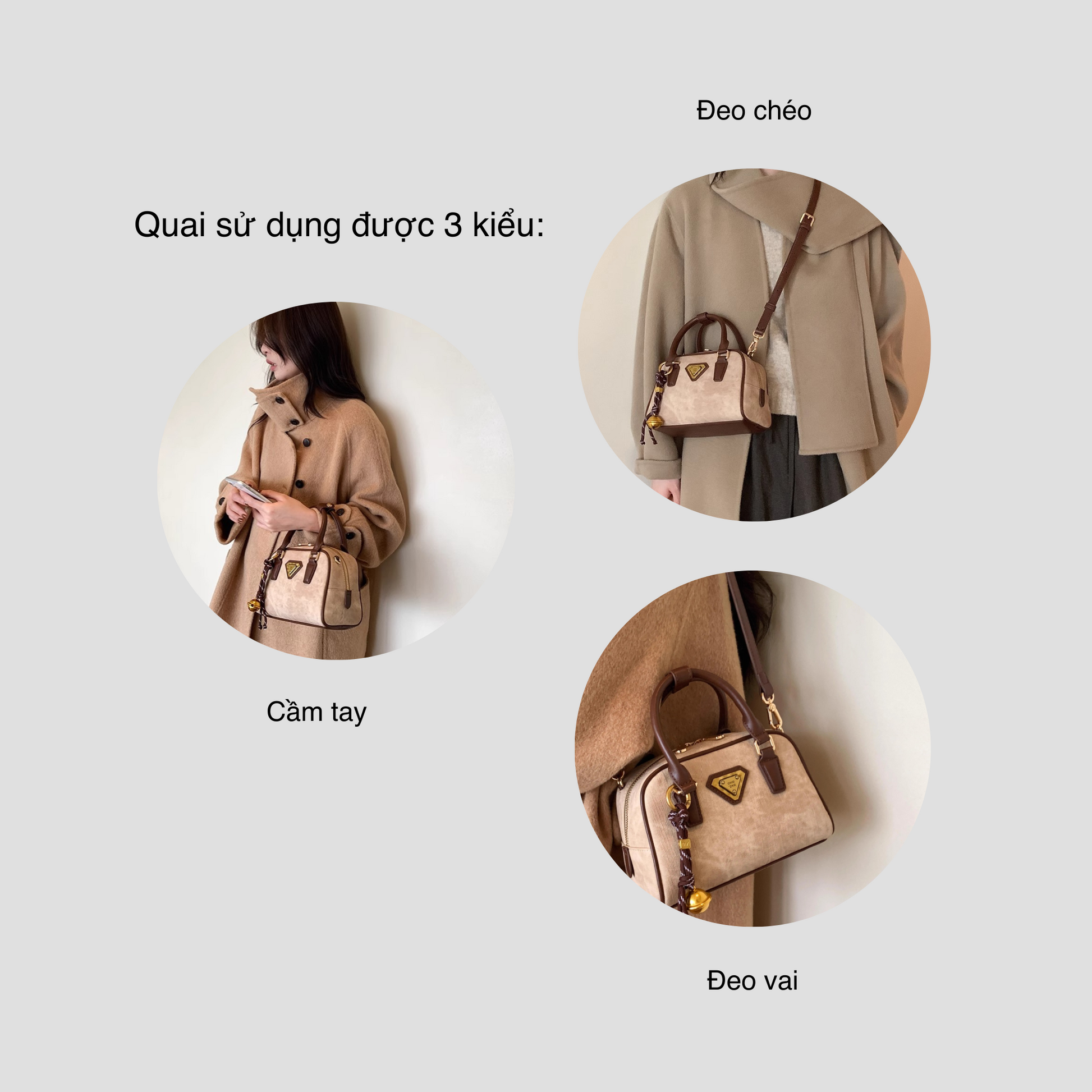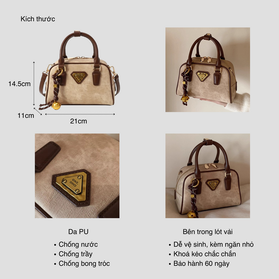 Chiếc túi xách da kiểu hộp mang đến phong cách vintage nhẹ nhàng. Điểm nổi bật của túi là dây đeo linh hoạt, bạn có thể sử dụng ba kiểu: cầm tay, đeo vai hoặc đeo chéo tuỳ thích.