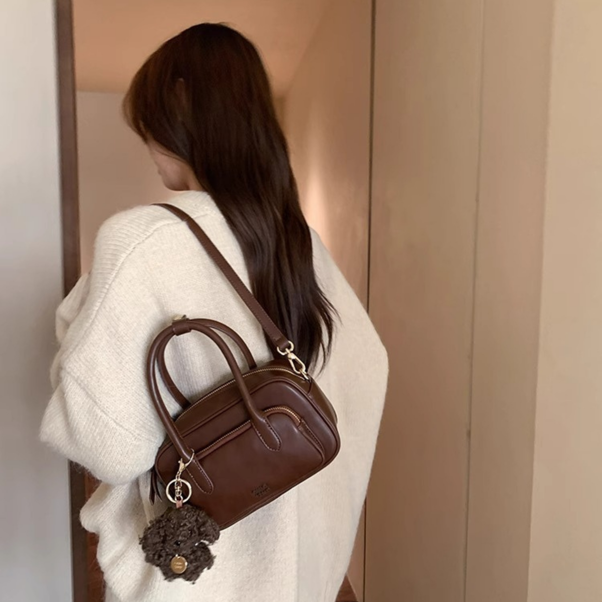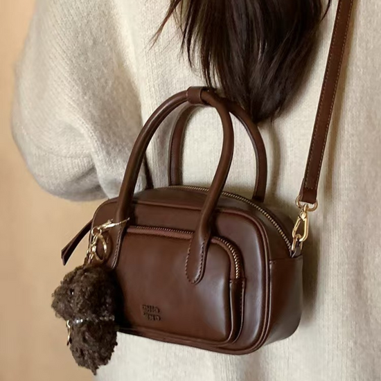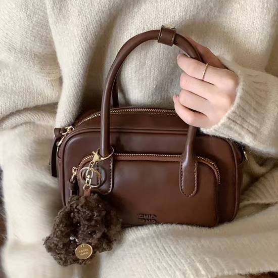Chiếc túi xách da kiểu hộp mang đến phong cách vintage nhẹ nhàng. Điểm nổi bật của túi là dây đeo linh hoạt, bạn có thể sử dụng ba kiểu: cầm tay, đeo vai hoặc đeo chéo tuỳ thích.