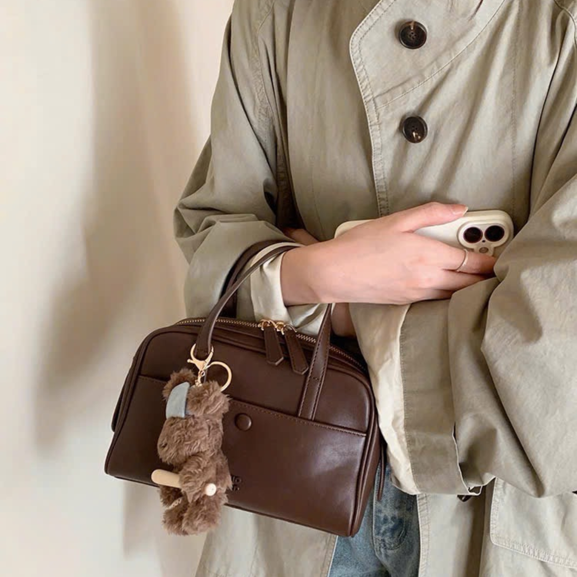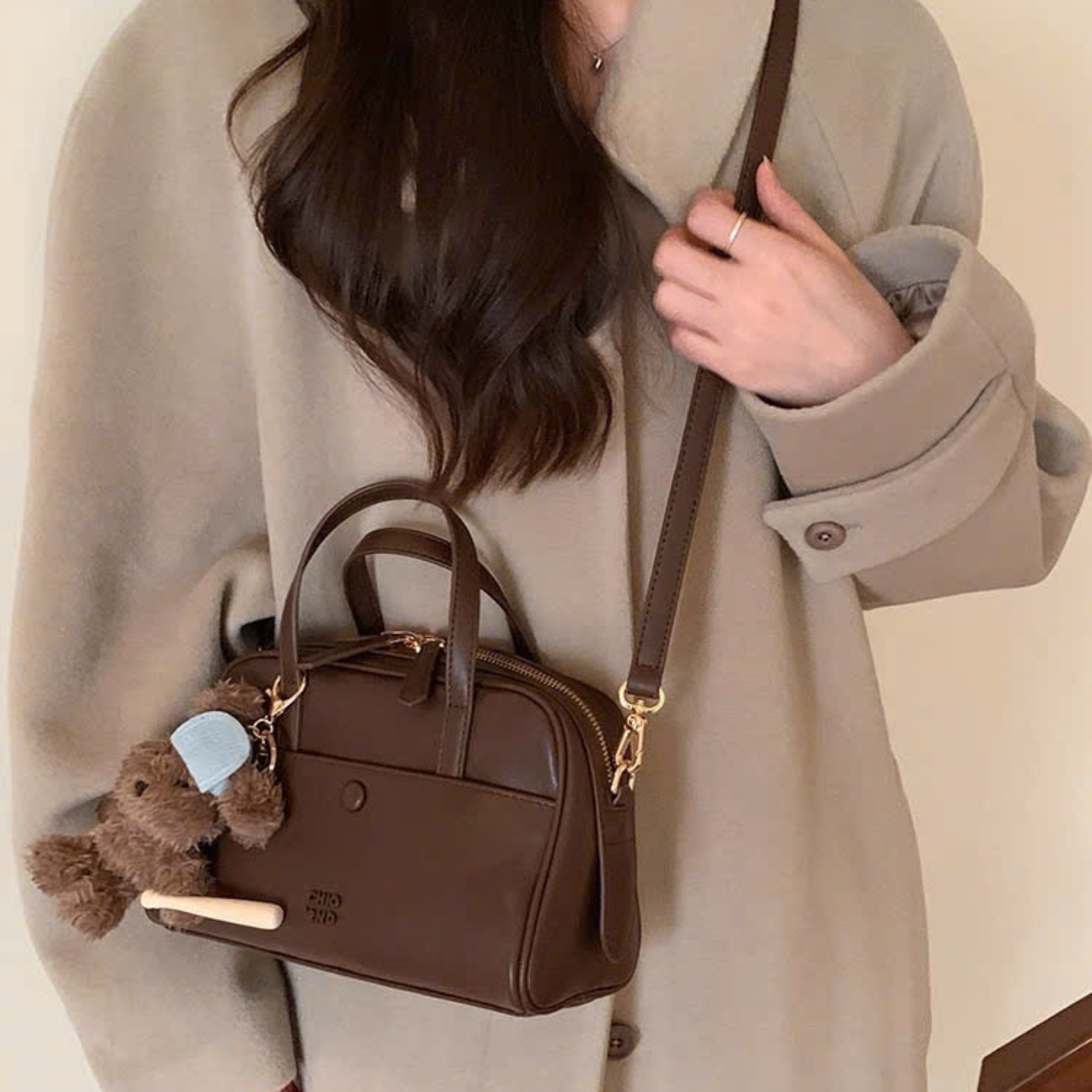 Túi Xách Nữ Hộp Vuông Phối Charm Gấu