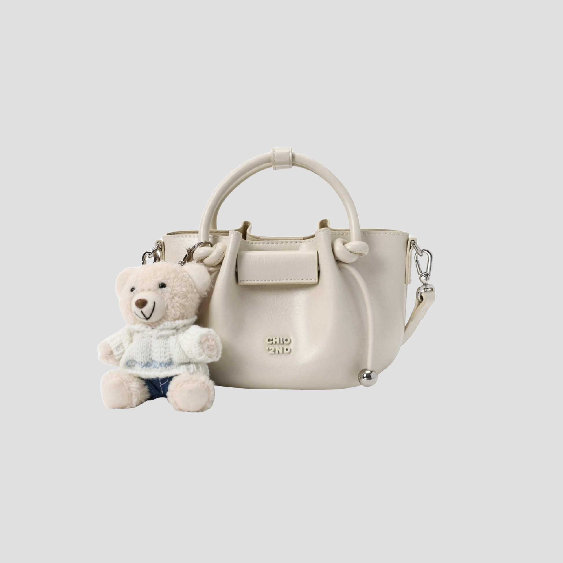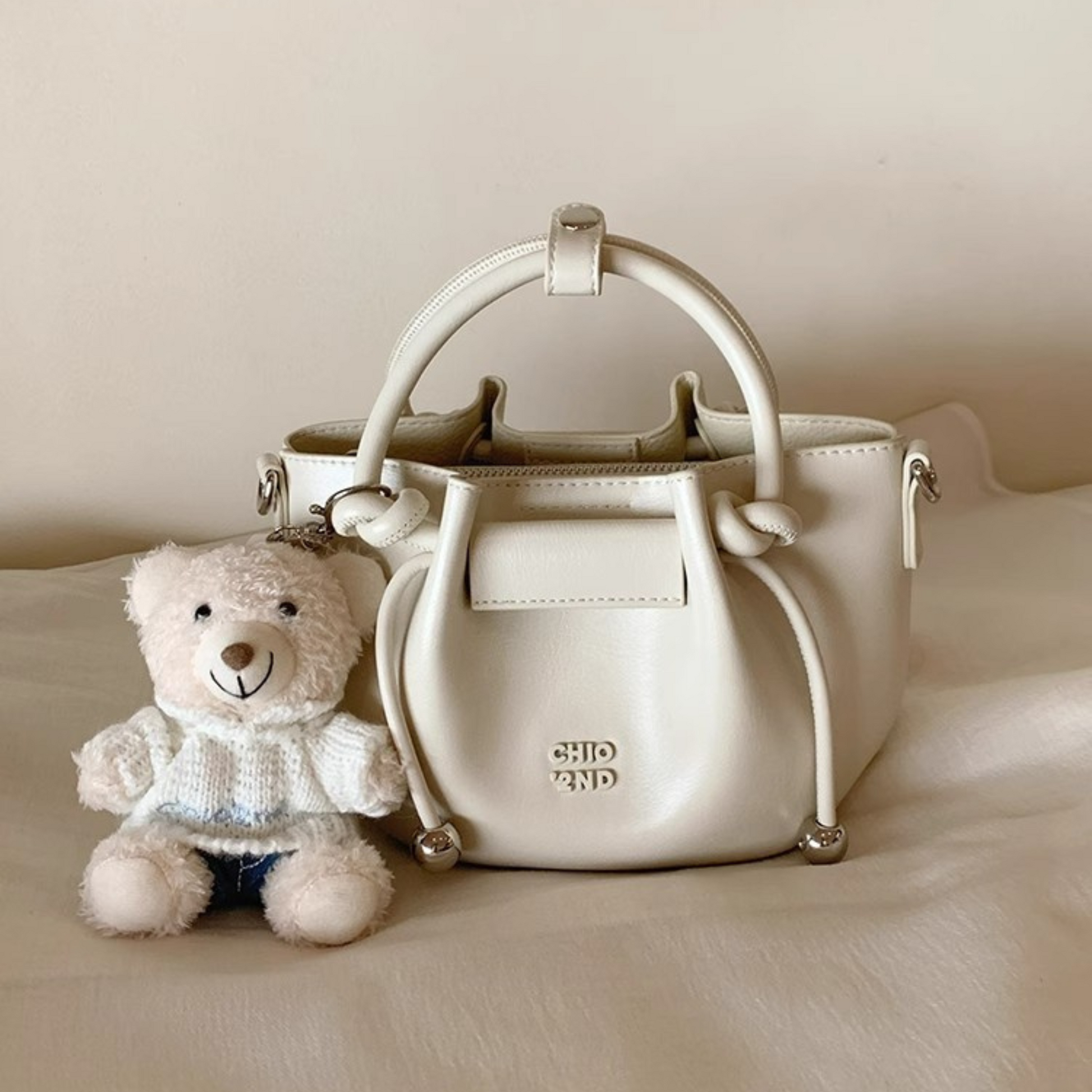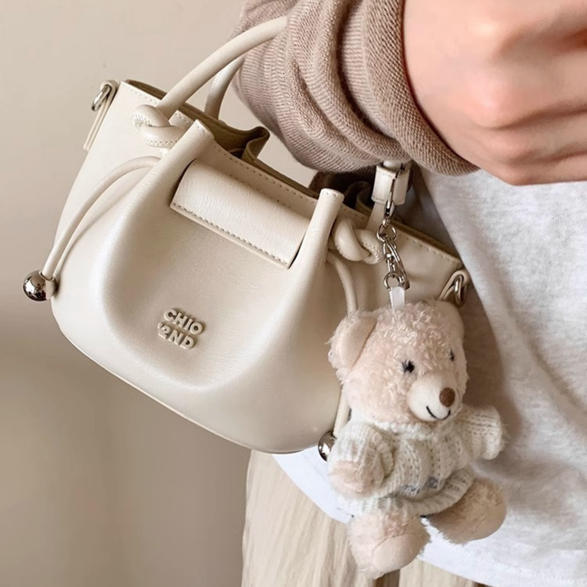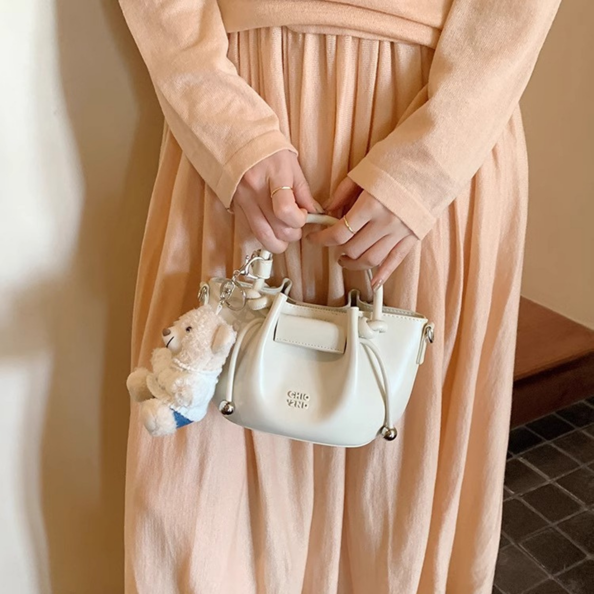 Túi Xách Nữ Kiểu Da Nhún Phối Charm Gấu