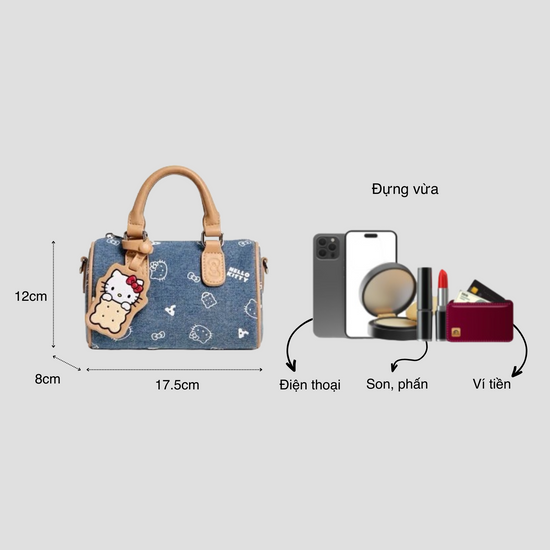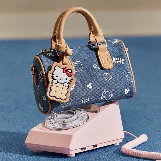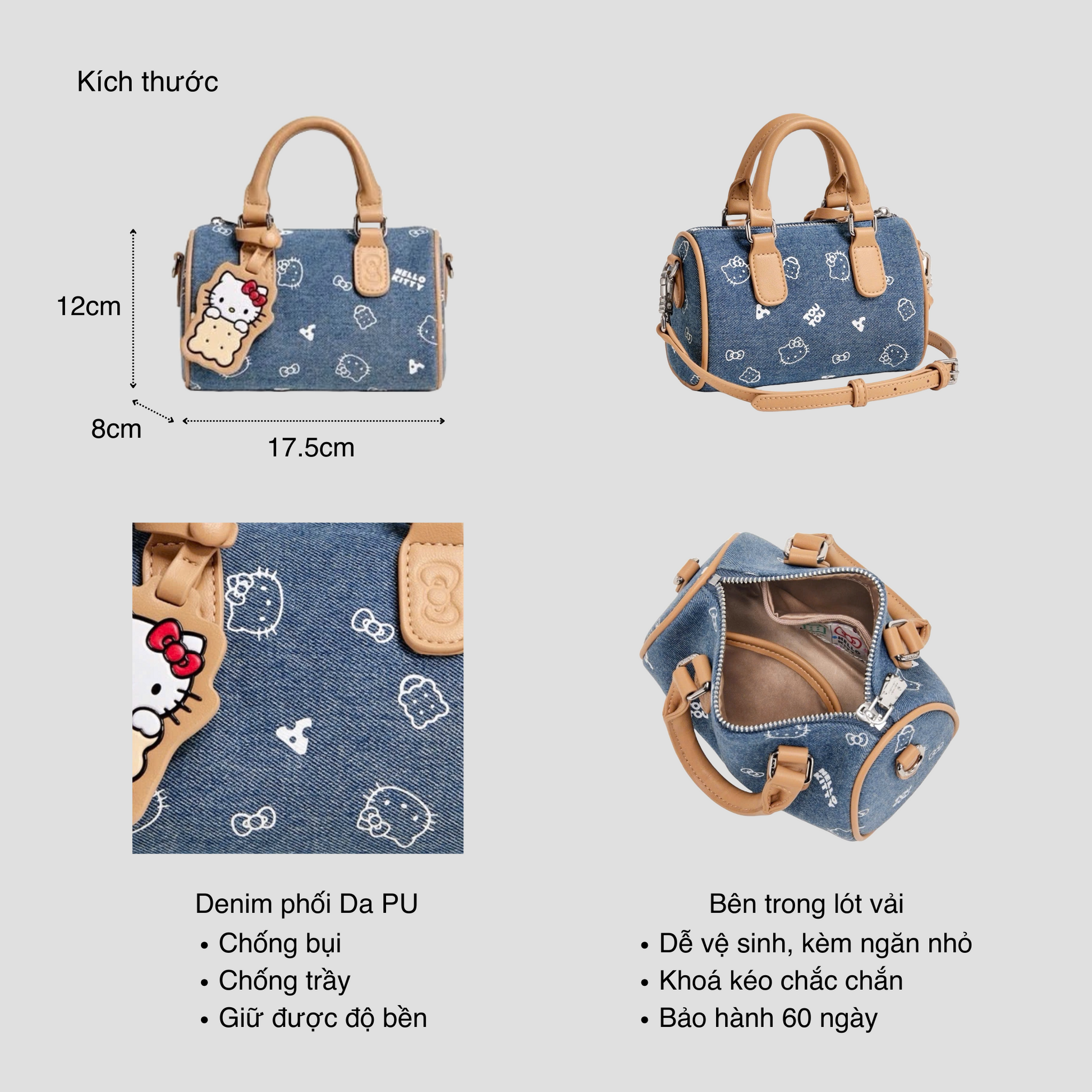 Túi Xách Nữ Kiểu Denim Phối Charm Hello Kitty