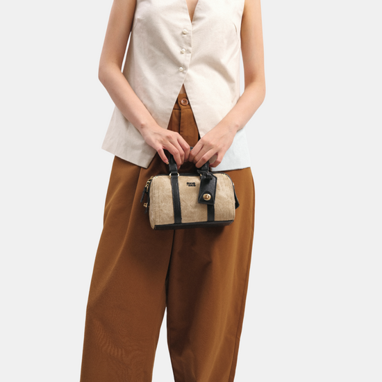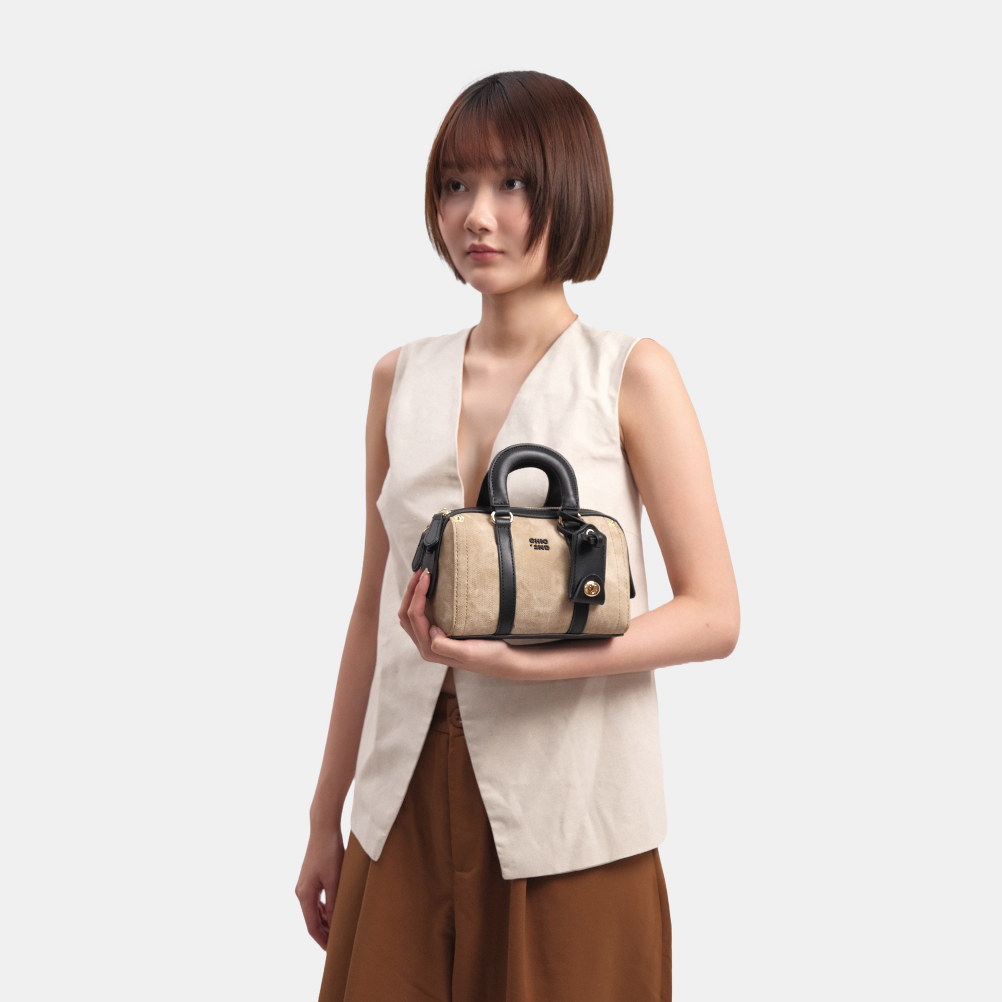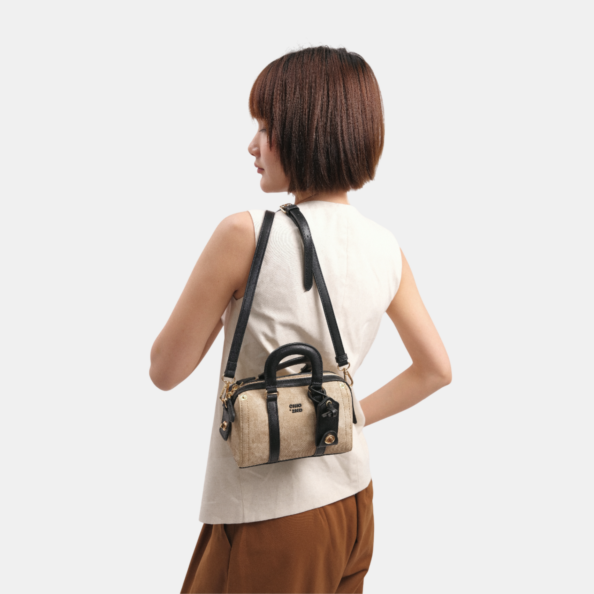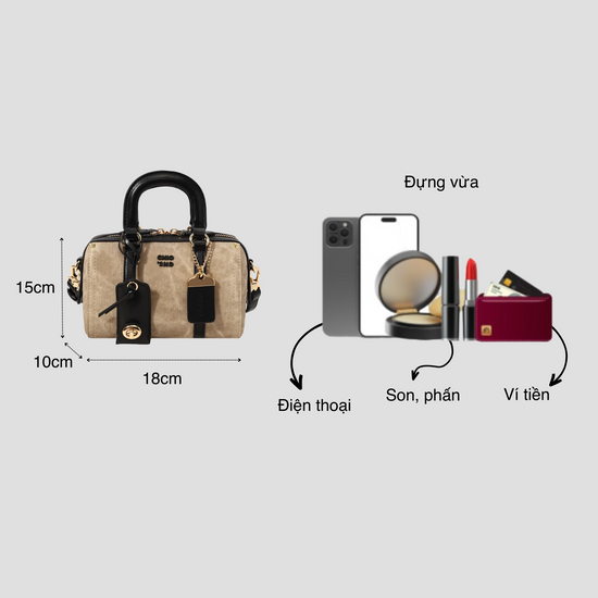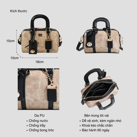 Chiếc túi xách da kiểu trống mang đến phong cách vintage nhẹ nhàng. Điểm nổi bật của túi là dây đeo linh hoạt, bạn có thể sử dụng ba kiểu: cầm tay, đeo vai hoặc đeo chéo tuỳ thích.