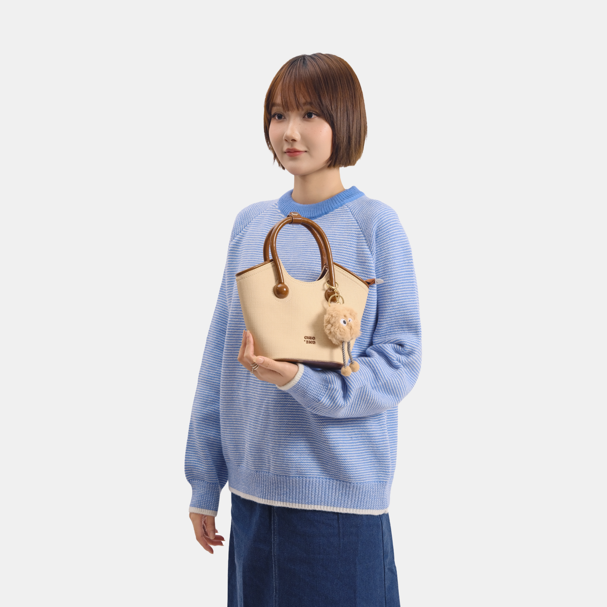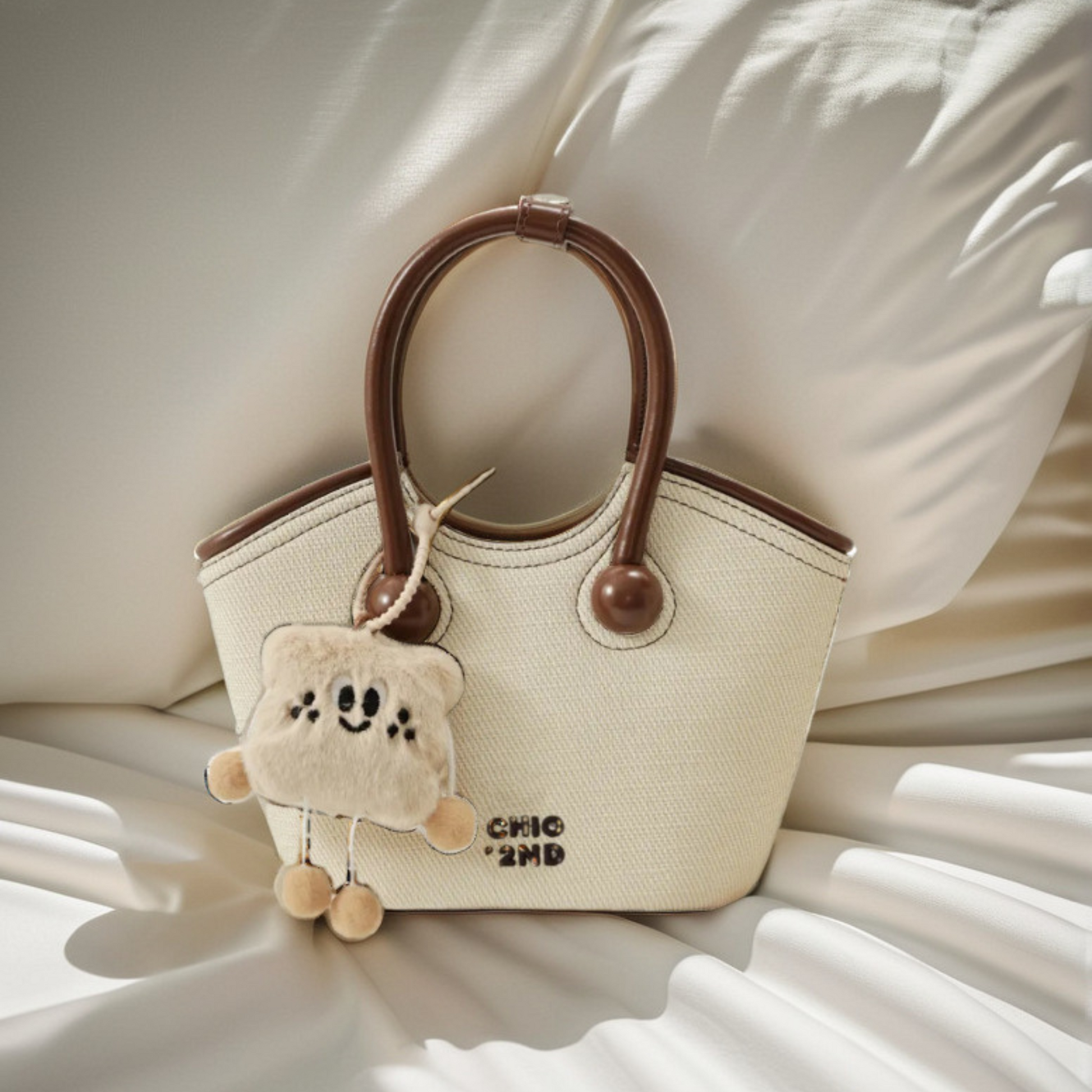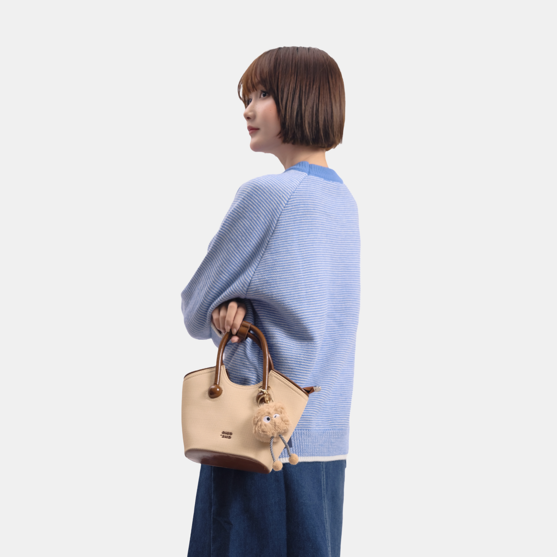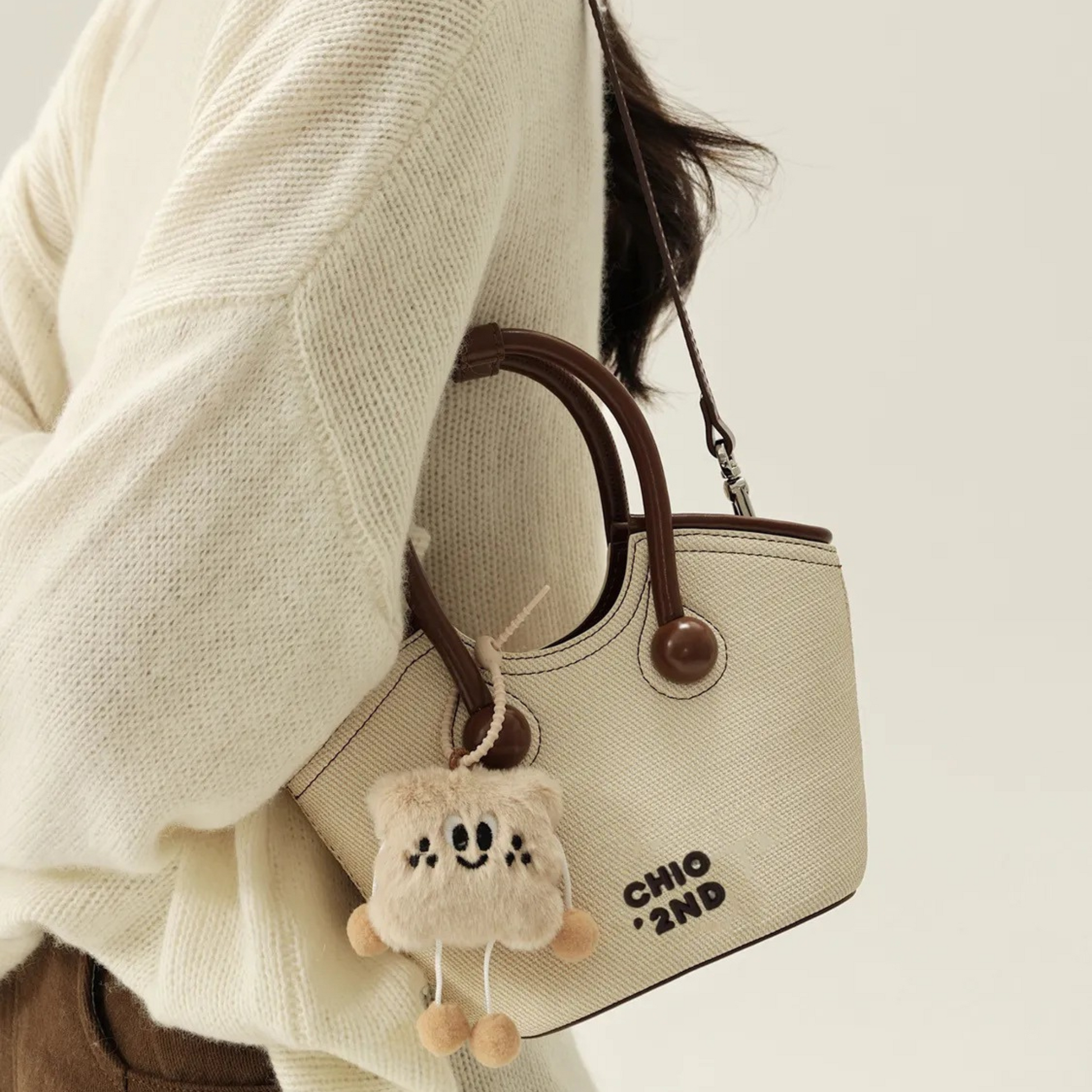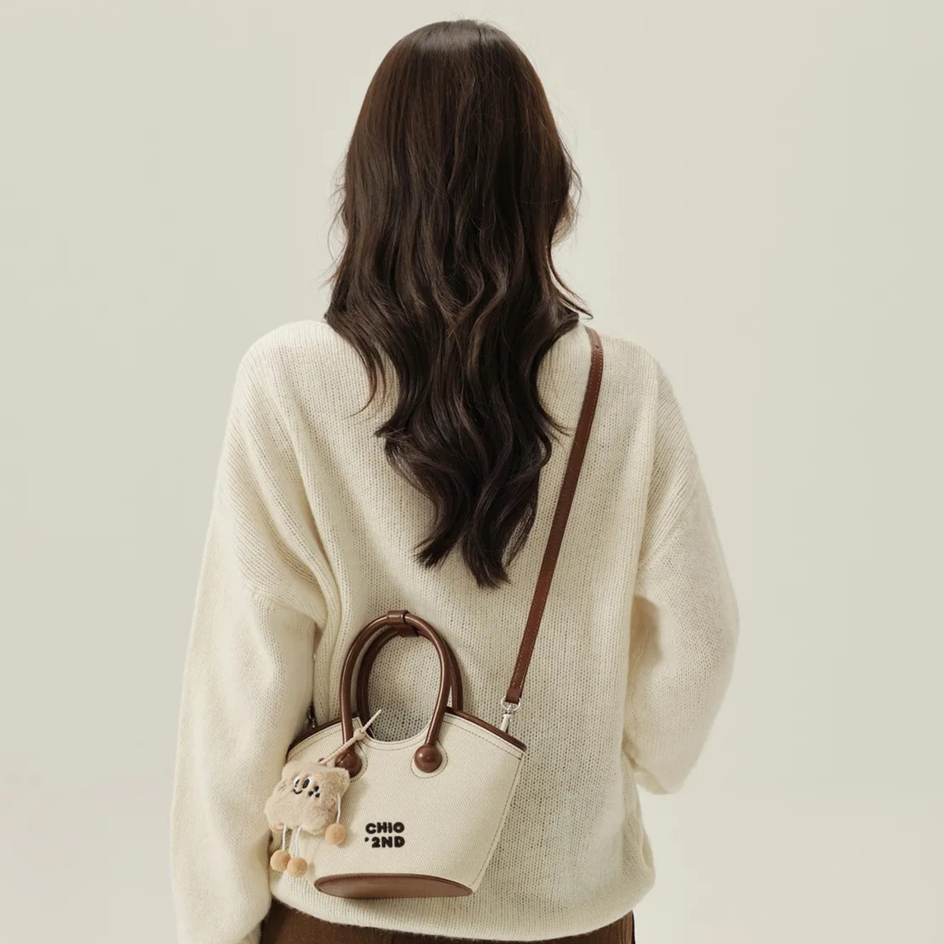 Chiếc túi xách có thiết kế kiểu xô đứng form kèm charm xinh xắn. Điểm nổi bật của túi là dây đeo linh hoạt, bạn có thể sử dụng theo ba kiểu: cầm tay, đeo vai hoặc đeo chéo tuỳ thích.