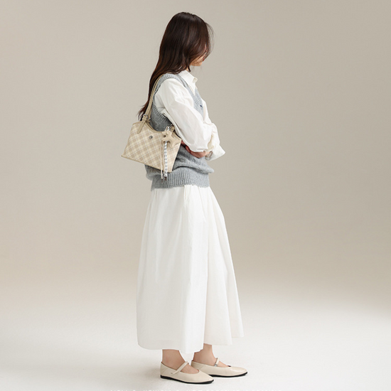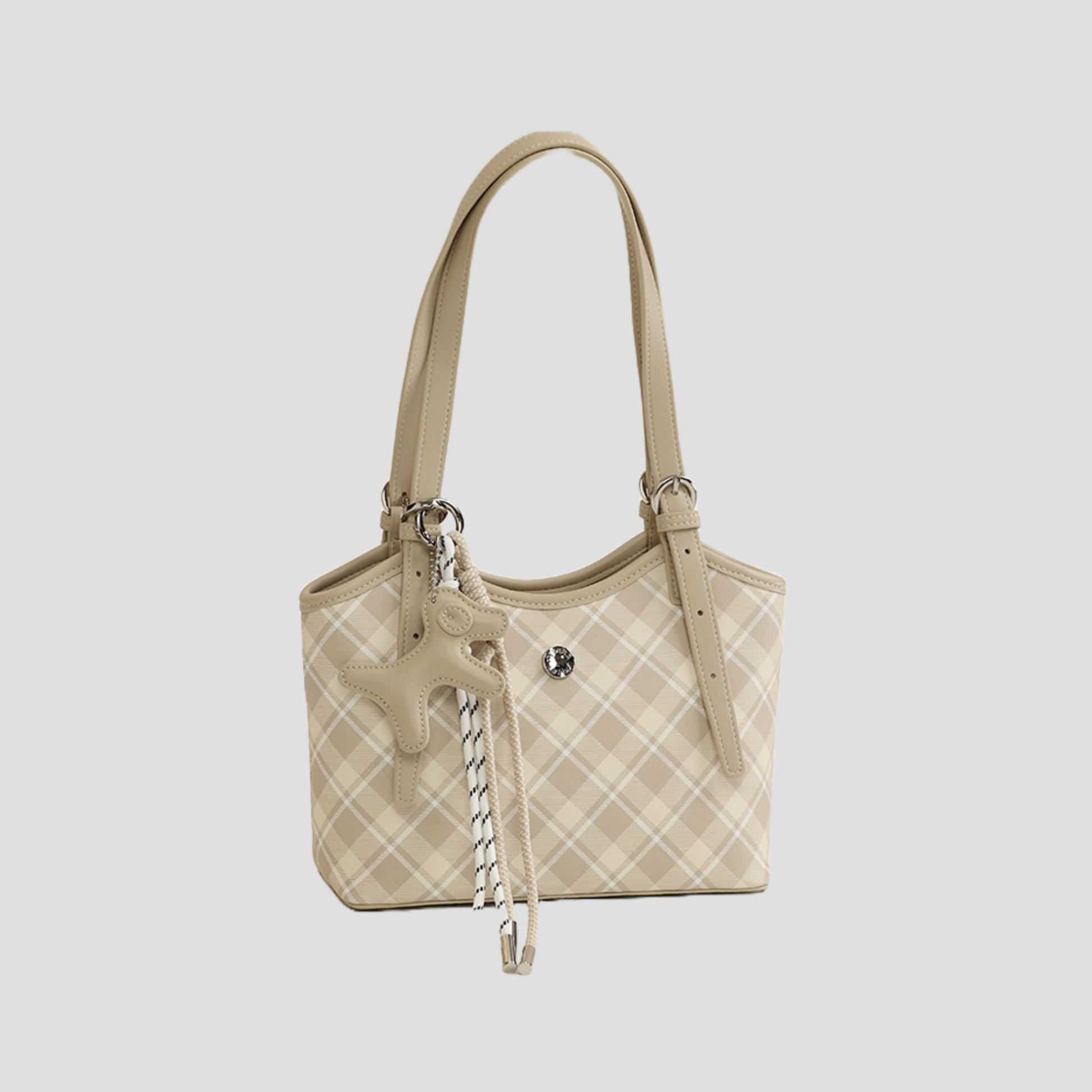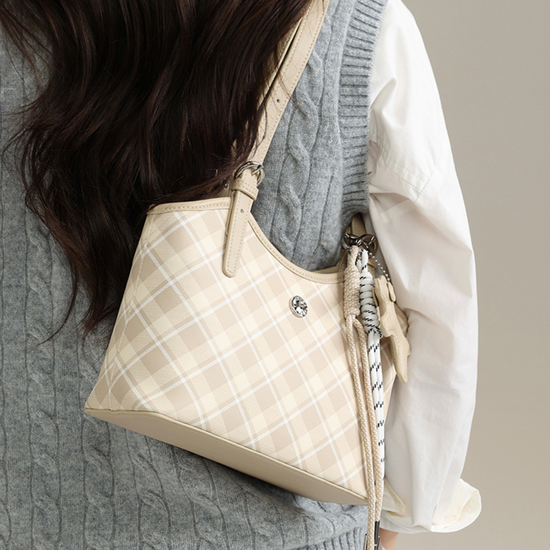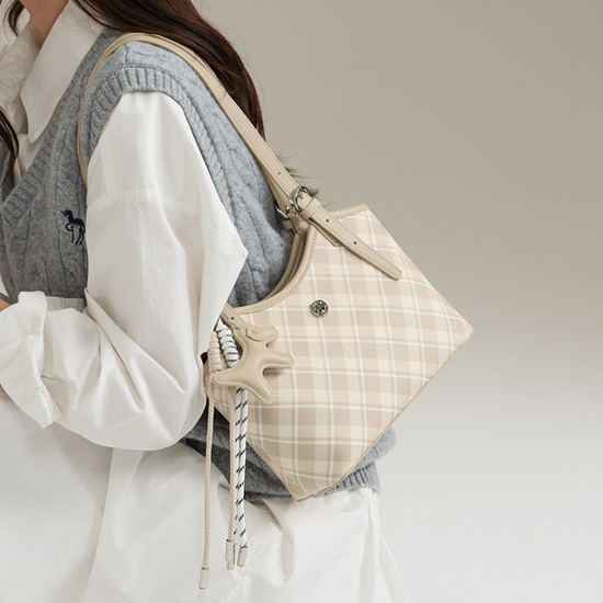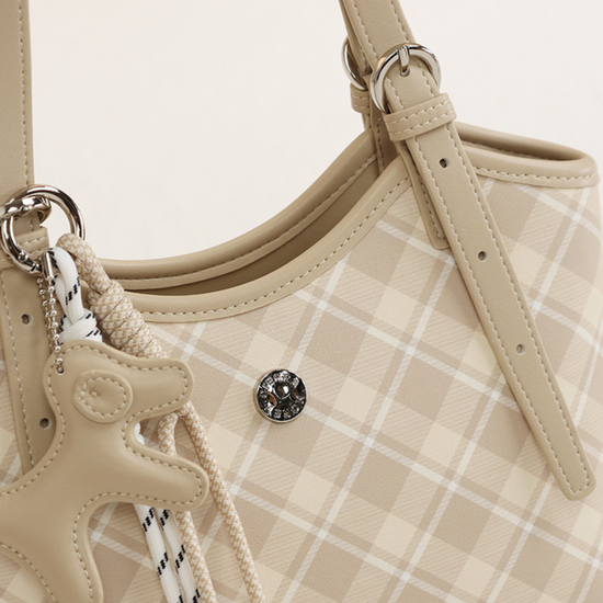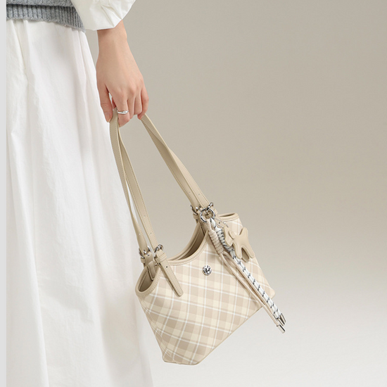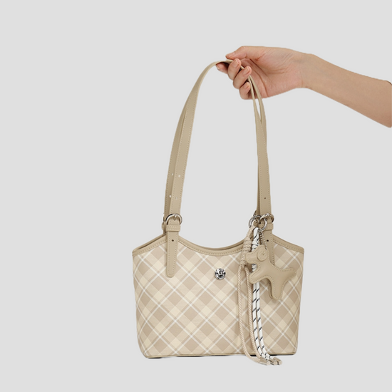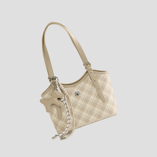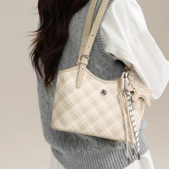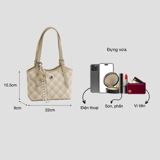 Túi Xách Nữ Kiểu Xô Sọc Caro Phối Charm